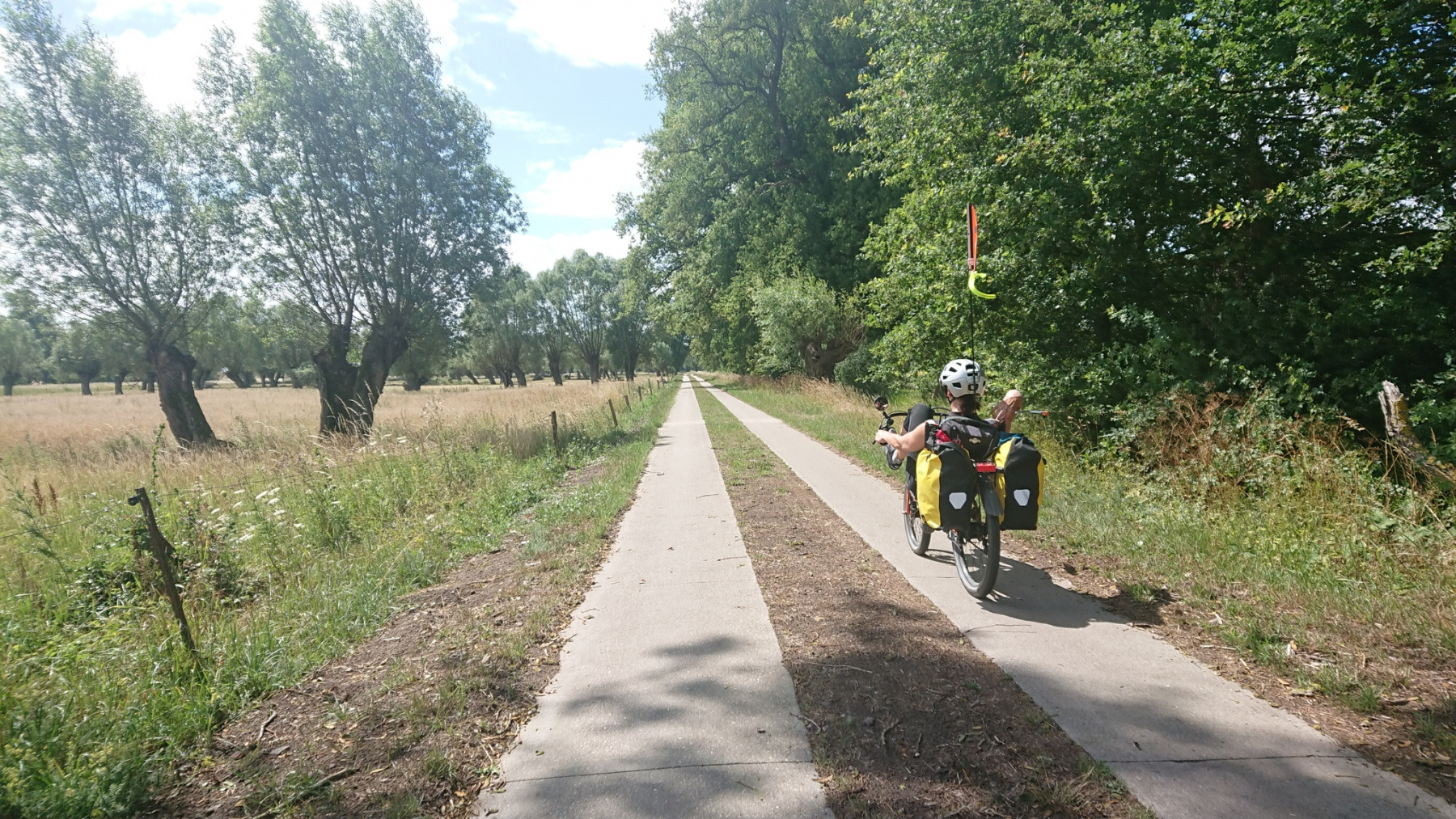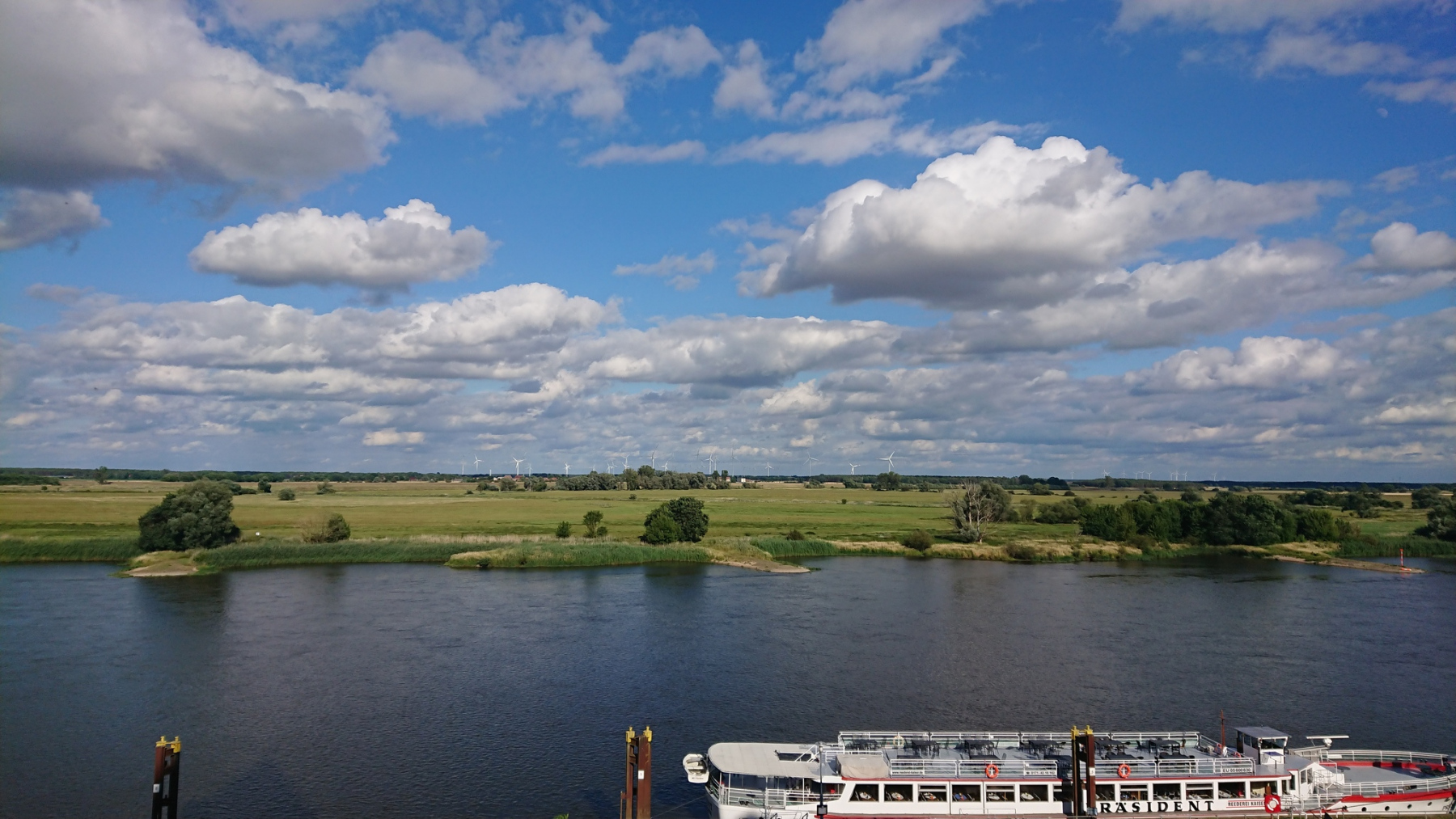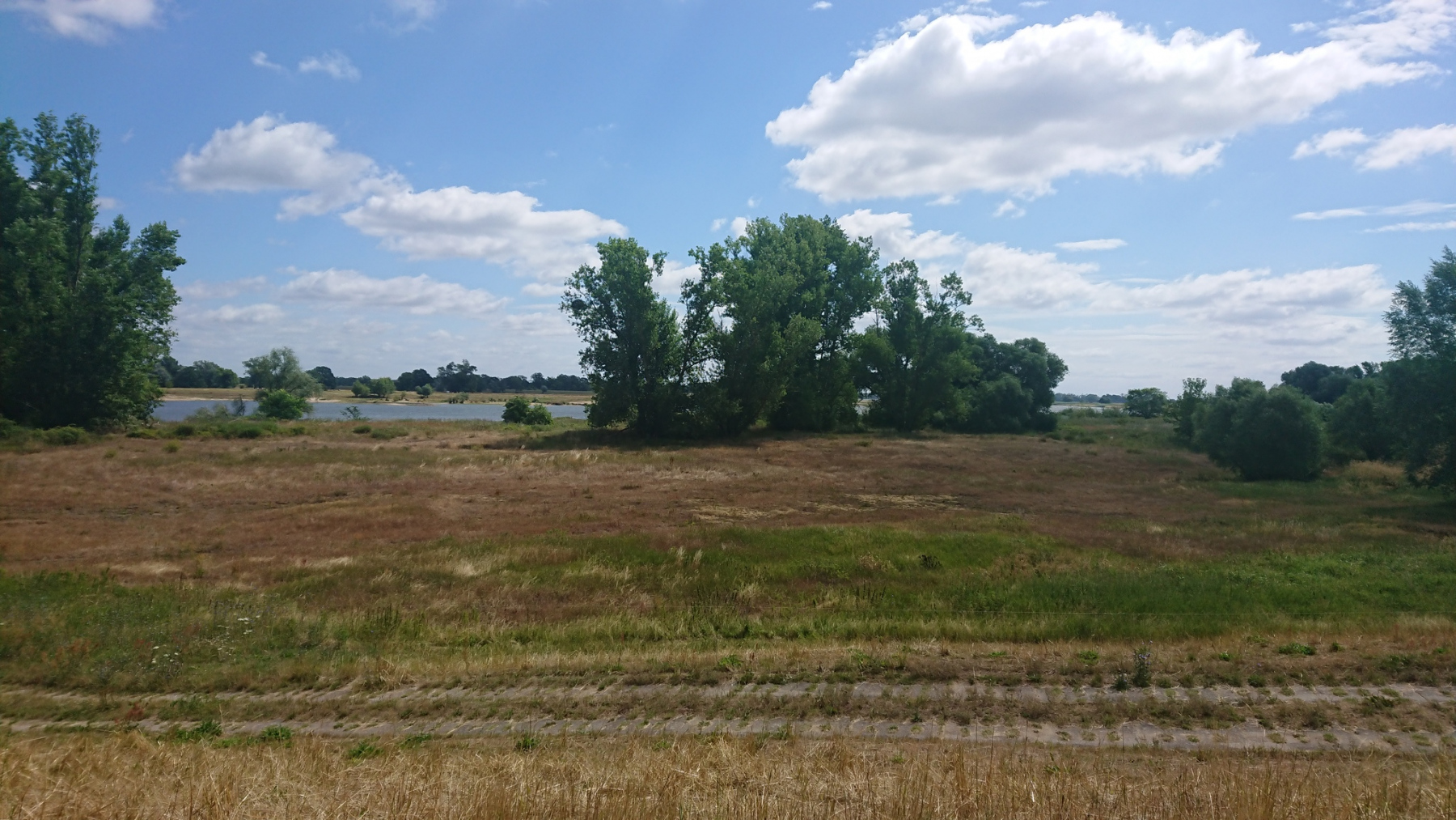 Vom Deich aus ist die Elbe aber nur selten zu sehen. Wenn wir mal auf dem Deich fahren können, dann sieht man meist nur das Deichvorland. Wo genau die Elbe ist, ist nicht zu sehen. Meistens fahren wir aber am Deichfuß.