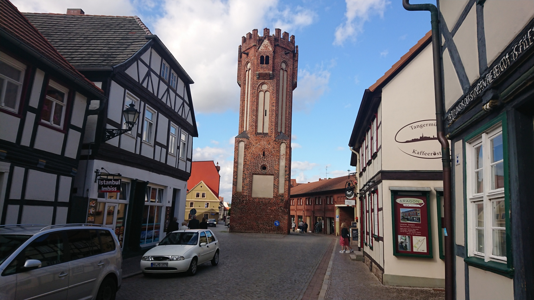 Nachdem wir uns frisch gemacht haben, machen wir uns auf, die Stadt zu erkunden. Tangermünde hat einen hostorischen Stadtkern und eine alte Burg.