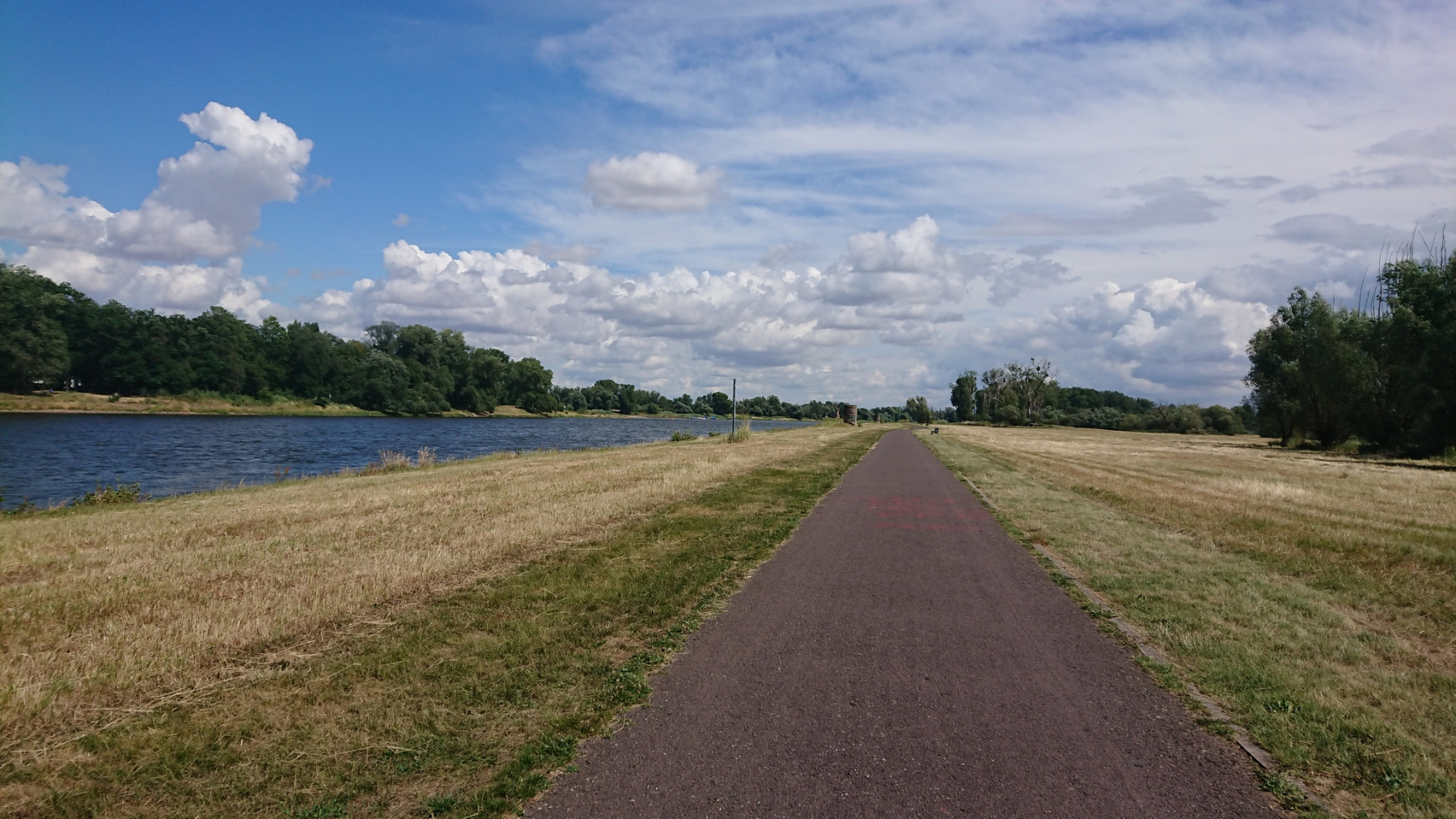 An der Elbe geht es nun wieder Richtung Süden. Hin und wieder verstehen wir die Wegführung des Elberadwegs nicht, insbesondere dann, wenn wir für wenige Meter von der Straße durch ein Wohngebiet geführt werden, nur um danach wieder an der gleichen Hauptstraße zu landen. Natürlich müssen wir dann zweimal die Hauptstraße überqueren.