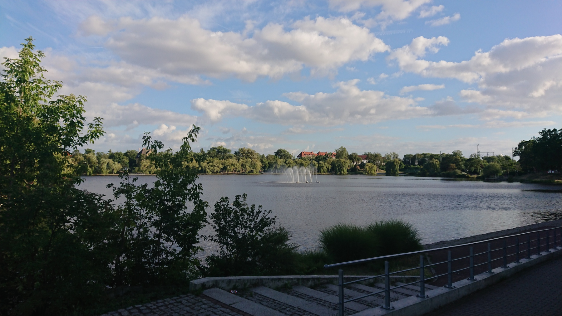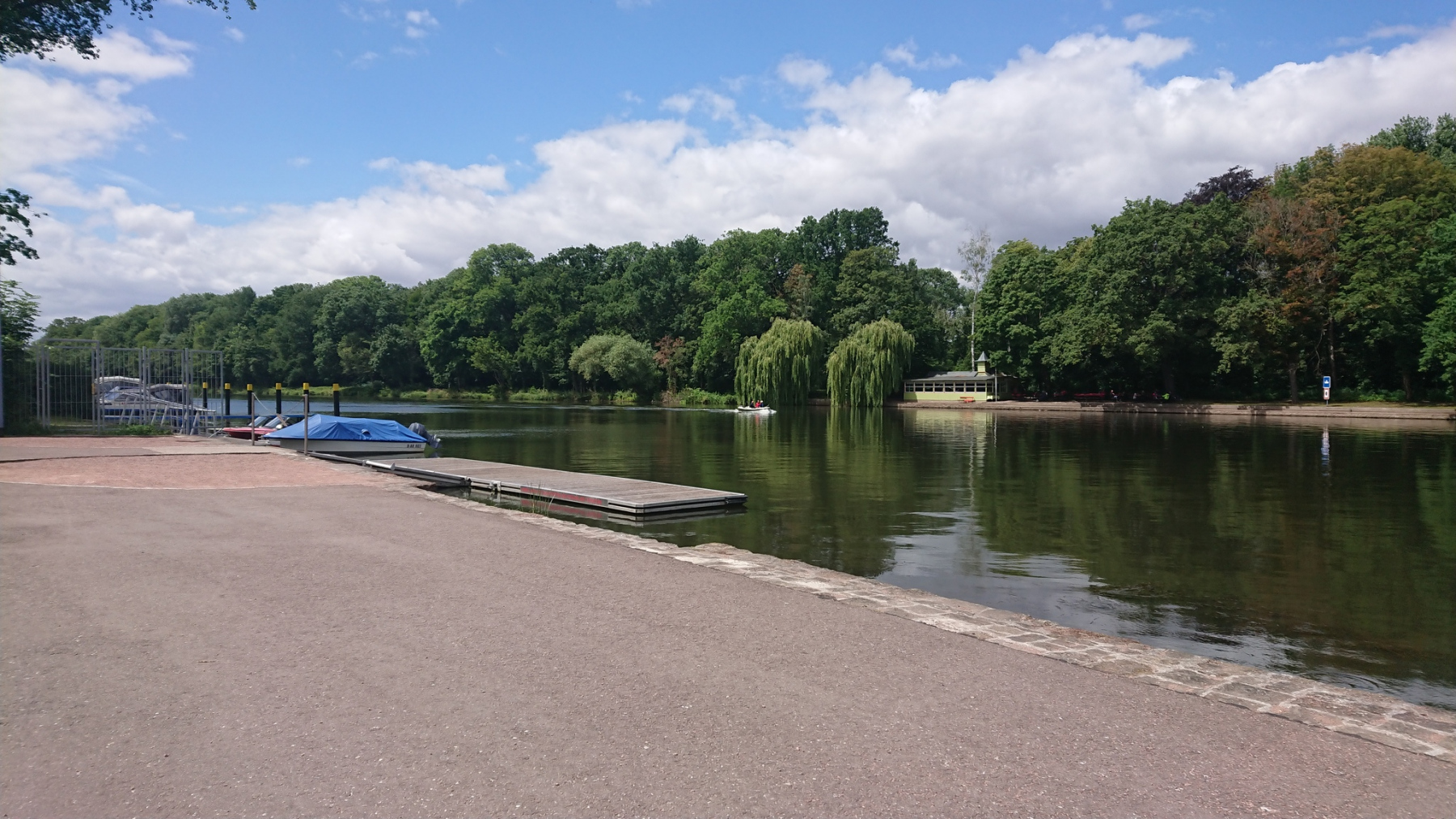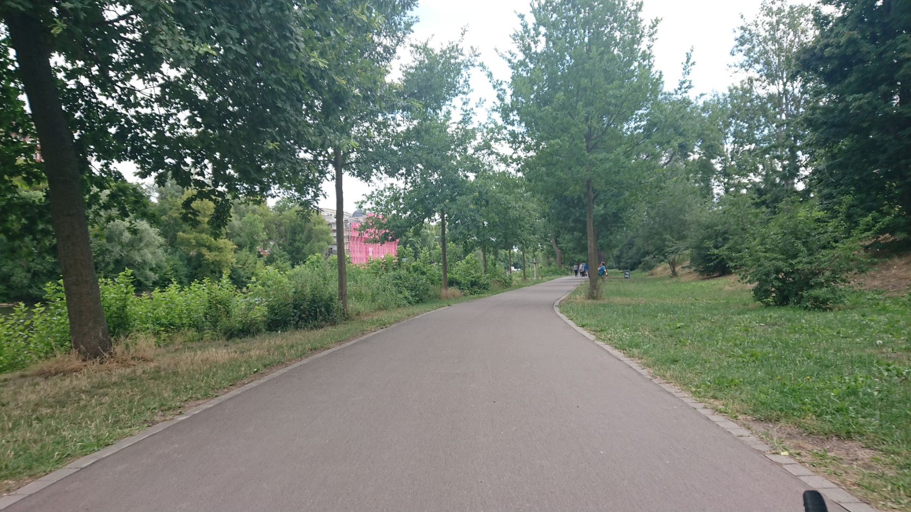 Wieder wechseln wir sie Saaleseite. Und dann werden wir umgeleitet. Der Saaleradweg ist gesperrt und wir folgen der Umleitung. Die ist zwar gut beschildert, aber der Weg führt durch Parks und die Wege sind in einem schlechten Zustand, dass auch hier wieder meist nur zwischen 10 und 15 km/h gefahren werden kann. Hinzu kommen noch etliche Querstraßen, die wir kreuzen müssen. Insgesamt brauchen wir für die Umleitung von etwas mehr als 2km rund 10 Minuten – gefühlt aber deutlich länger.