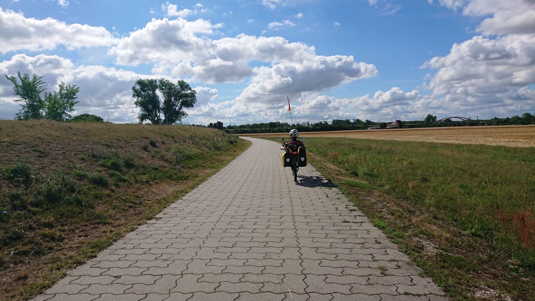 Die Unterkunft in Merseburg bot uns kein Früstück an, das war schon bei Buchung klar. Wir suchten daher im Internet nach einem Cafe oder Backerei, bei der wir ein Frühstück bekommen könnten. Wir wurden nicht wirklich fündig. So stellten wir uns das Früstück beim nahen Supermakrt selbst zusammen und aßen in der Ferienwohnung. Danach noch schnell abwaschen und die Sachen zusammenpacken und dann konnte es losgehen. Abfahrt heute etwas früher: schon um 9:30 sind wir wieder unterwegs, wird doch die Strecke heute 116km erreichen.