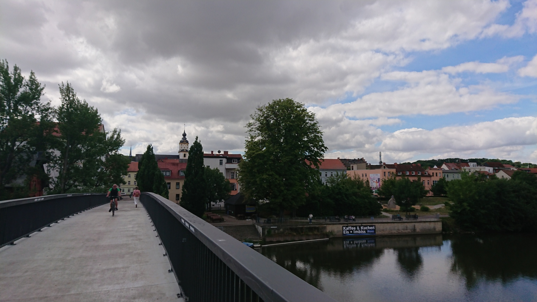Wie oft wir heute von einer Seite der Saale auf die andere gewechselt sind ? Ich habe es nicht gezählt. Aber es sind viele Male. Die schönste Brücke am Saaleradweg ist vermutlich die Kunitzer Hausbrücke: