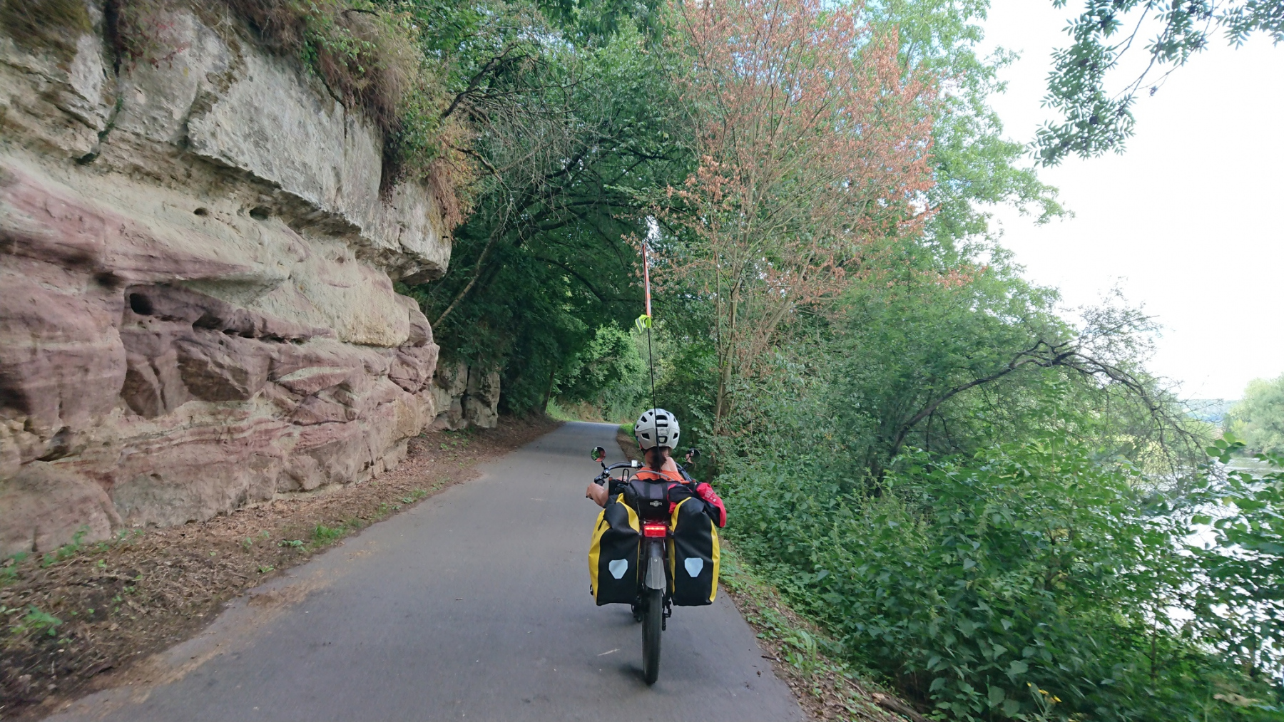 Durch Jena geht es auf Fahrradstraßen entlang der Saale recht schnell. Es ist mächtig Radverkehr in Jena. Aber dank der breiten Fahrradstraßen ist das kein Problem, auch die Beschilderung ist gut. Nur am Südrand von Jena im Bereich Neulobeda, eine Plattenbausiedlung, wie sie von der DDR auf der grünen Wiese errichtet wurde wird es anspruchsvoll. Hier geht es dann auf einmal auch richtig hoch. Neulobeda liegt gut 30 m oberhalb der Saale. Bei Oelknitz dann noch mal der gleiche Spass.