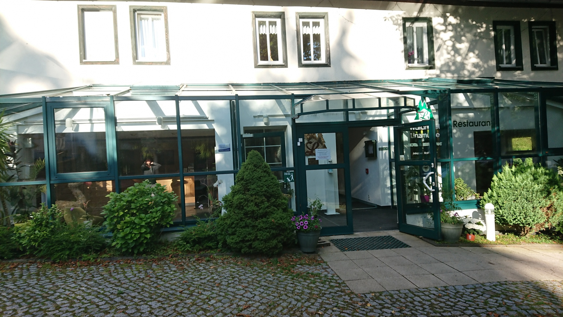Eigentlich wollten wir in Kahla übernachten, aber alle Anfragen wurden negativ beantwortet. So blieb uns nur, nachdem wir uns in Kahla noch mit Proviant und Gerränken eingedeckt hatten, zum Hotel Linzmühle in einem Seitental der Saale zu fahren.