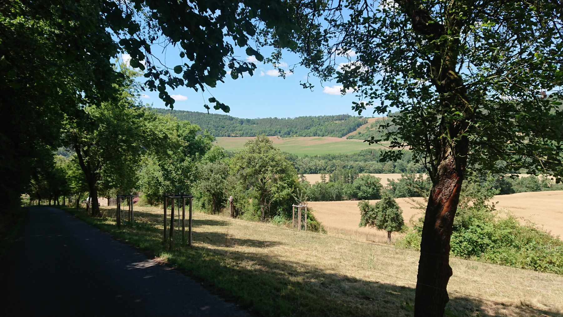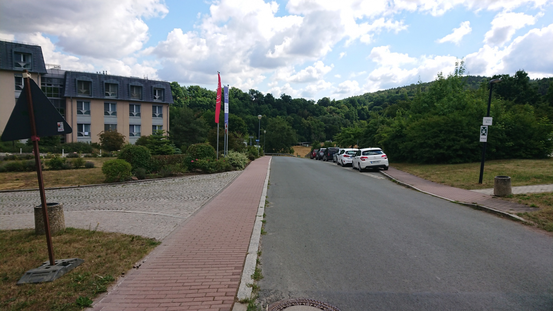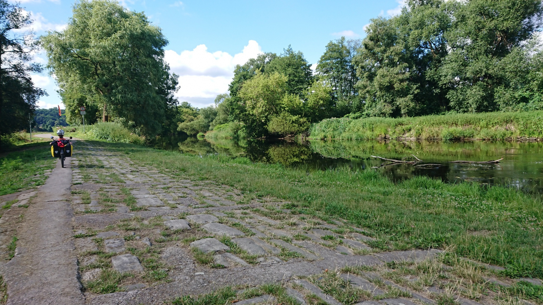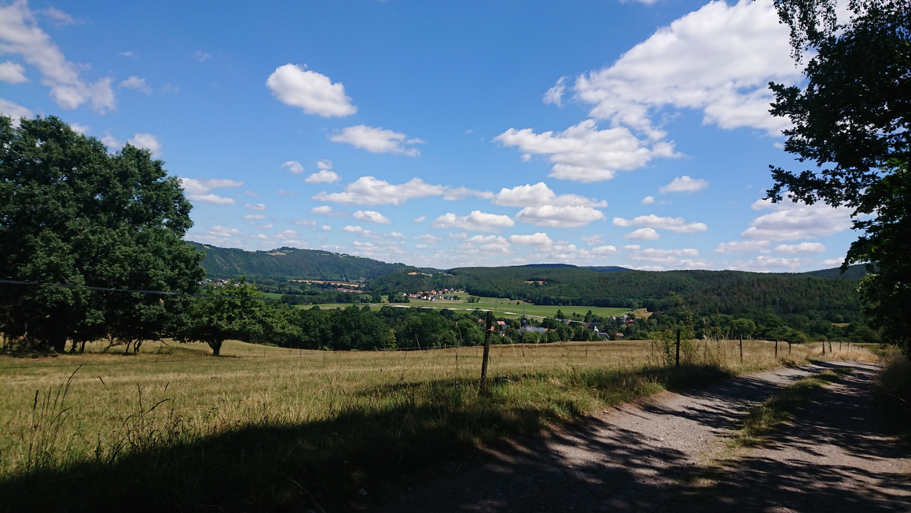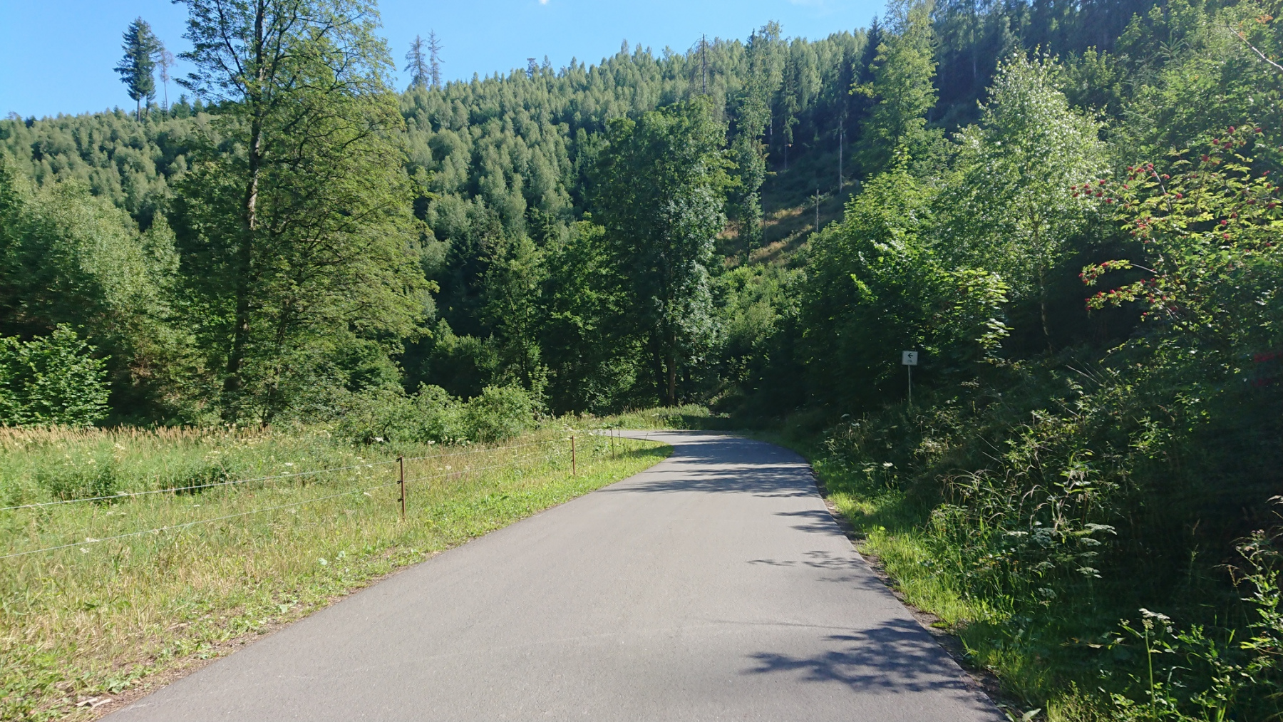 Nach einem guten Früstück machen wir uns wieder auf den Saaleradweg. Um den wieder unter die Räder nehmen zu können, müssen wir wieder durch das Tal zurück an die Saale. Diesmal können wir aber einfach dahinrollen. Die ersten knapp 4km geht es bergab zurück an die Saale. Wie viele Höhenmeter wir heute machen werden, ist uns zu dem Zeitpunkt noch nicht klar. Aber der Tag wird einer der schönsten aber auch einer der anstrengensten der Tour werden.
