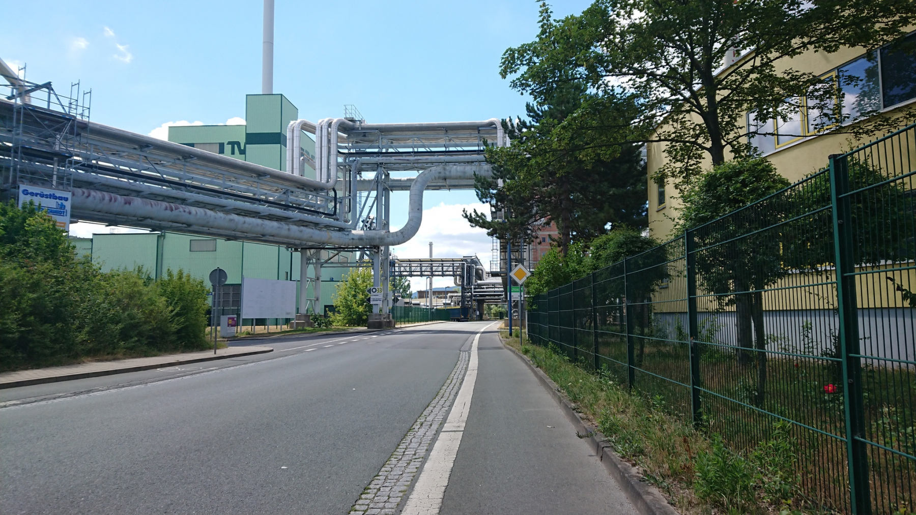 Bis Rudolfstadt ist es nun nur noch ein kleiner Weg. Der Weg führt hier mitten durch den recht großen Industriepark Schwarza. Um das immer noch in Betrieb befindliche Kraftwerk wurde recht viel Industrie angesiedelt.
