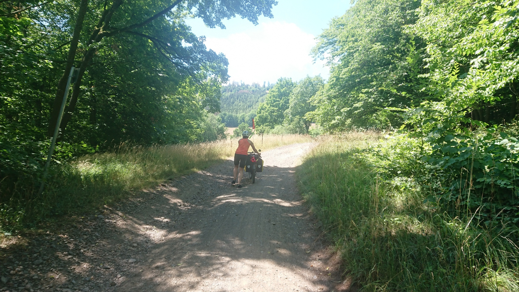 Als hätten wie von diesem Auf und Ab nun nicht genug, mußten wir doch gleich hinter Breternitz noch einmal steil nach oben, und uns über unbefestigte Wege aufwärts oder abwärtz kämpfen. Spass ? Das hat es uns nicht gemacht. Dieser Abschnitt zwischen Reschwitz und Eichicht ist für bepackte Radwanderer nur einschränkt zu empfehlen.