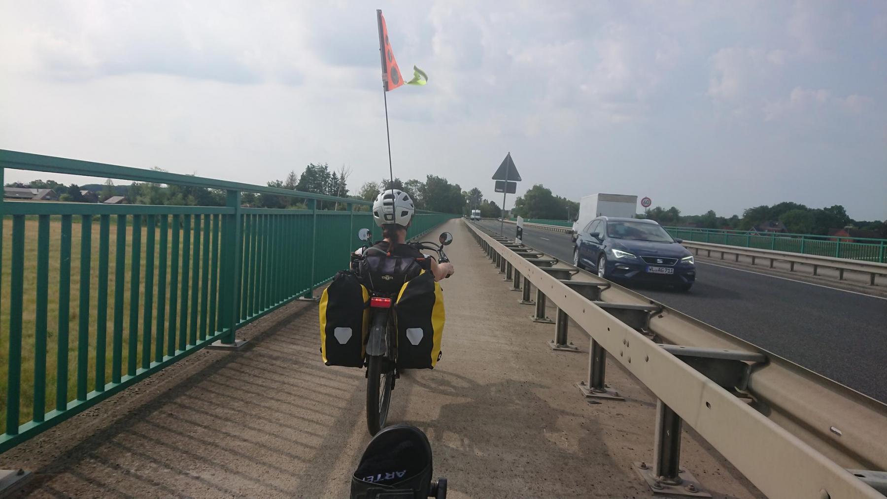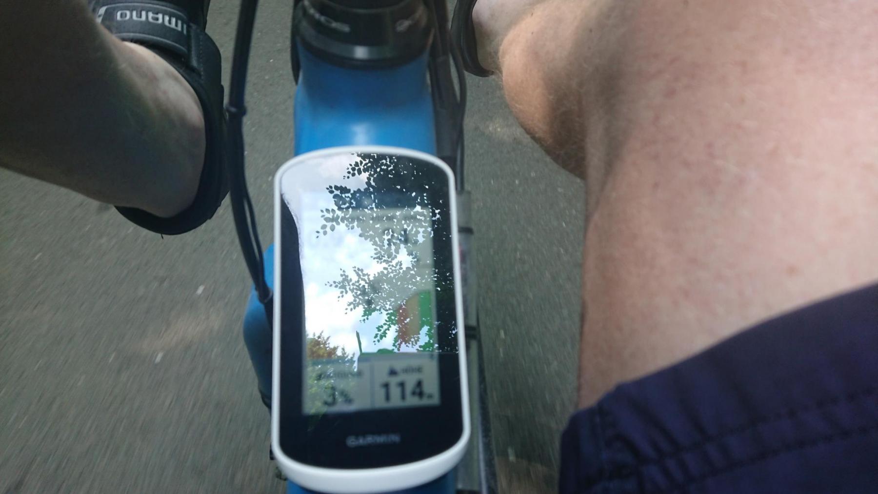 Und dann kann es losgehen. Kurz vor der Fahrt habe ich noch ein neues Navi (Garmin Edge Explorer) bekommen. Die Nutzung ist leicht anders als mit dem alten Navi und so ist es nicht verwunderlich, dass ich das Navi nach rund 25 km komplett neu starte, damit ich endlich auch die Informationen auf dem Display sehen kann, die ich gerne hätte. Wir starten bei strahlendem Sonnenschein, aber für den späten Nachmittag sind heftige Gewitter angesagt.