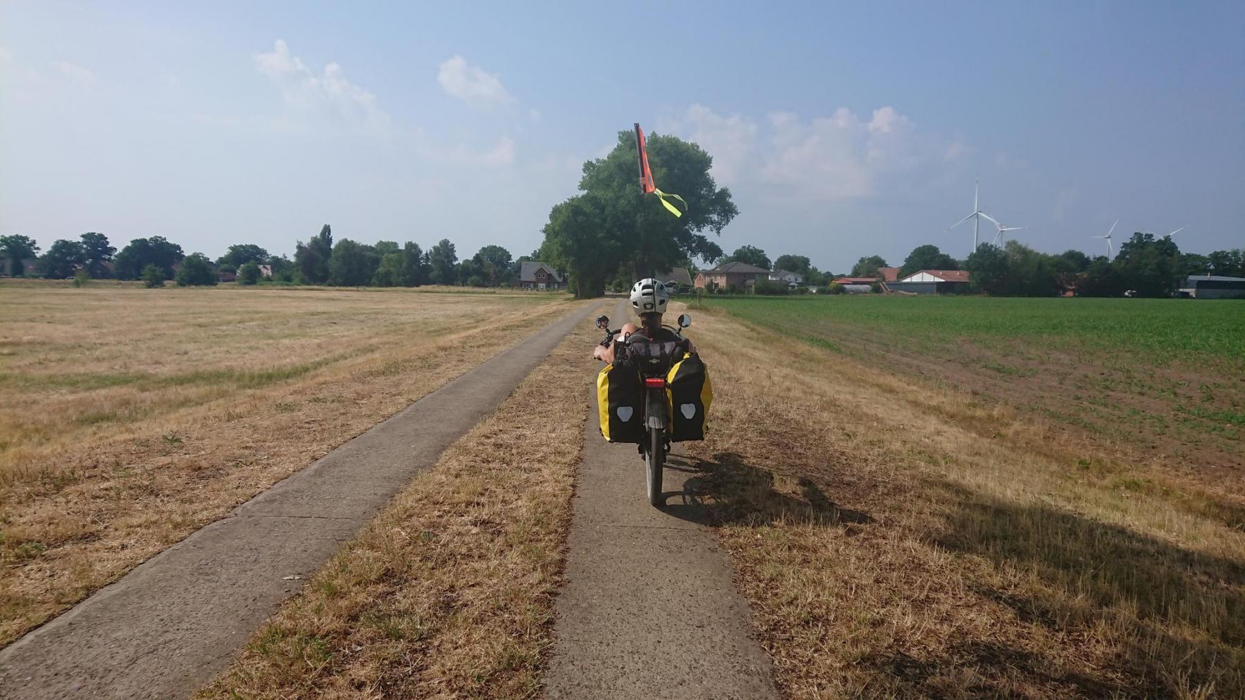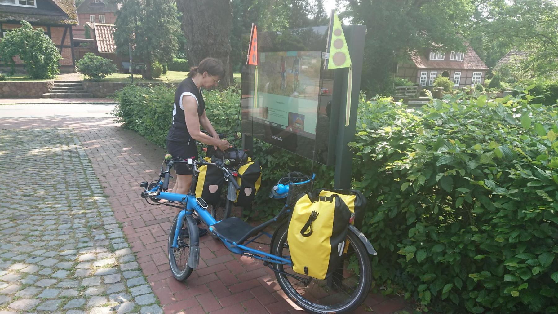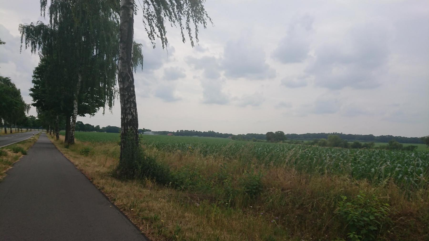 Der Himmel leuchtet nicht mehr in strahlendem Blau – dichte graue Wolken hängen am Himmel aber noch ist es trocken – ob es so bleibt ? Wir werden sehen. Vor uns liegen noch etwa 35 km; Über Walsrode fahren wir nach Hodenhagen. Die Straßen sind meist gut – abschnittsweise haben wir auch mal Gravel unter den Reifen: