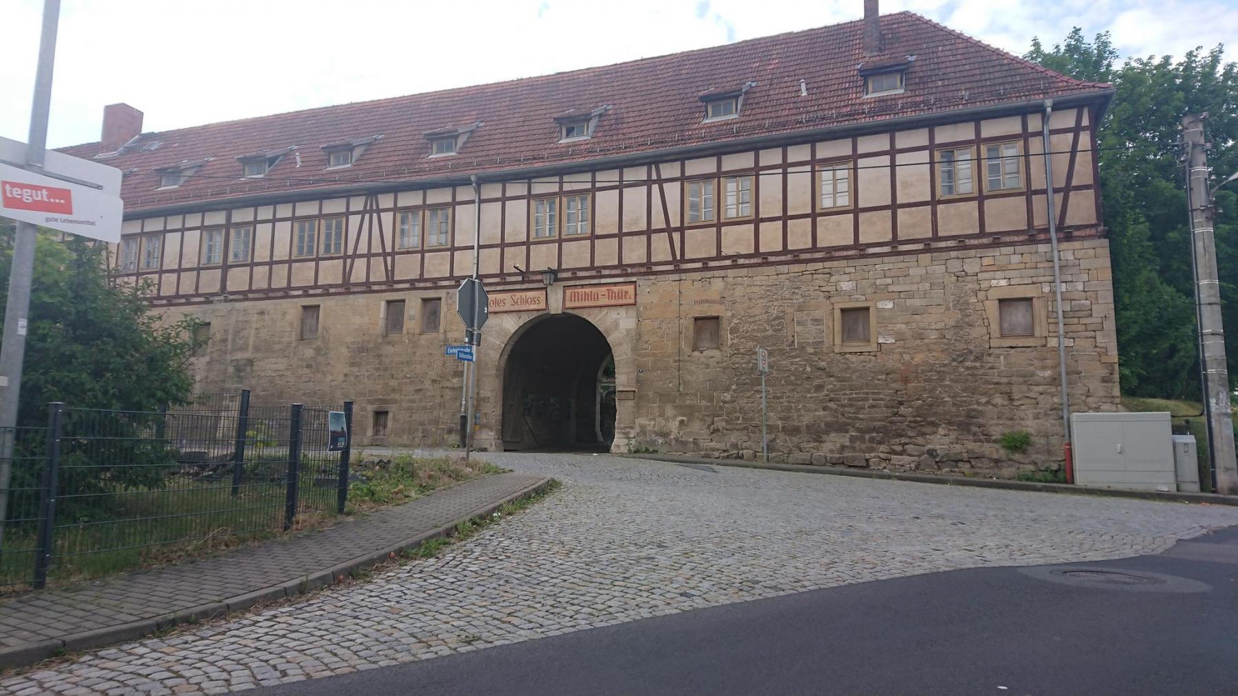 Wir folgen nun dem Unstrut-Werra-Radweg (UWR), der die Unstrut mit der Werra verbindet. In Mühlhausen wollen wir gerne bei einem Bäcker belegte Brötchen kaufen, aber das gestaltet sich unmöglich, denn heute am Sonntag gibt es das nicht. Wir ziehen also erfolglos wieder ab.