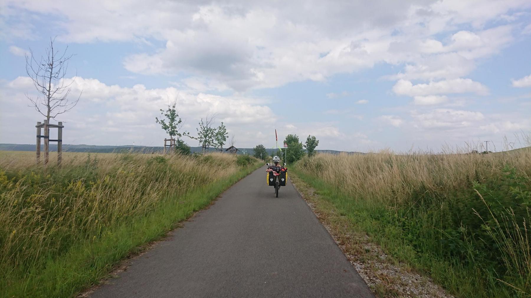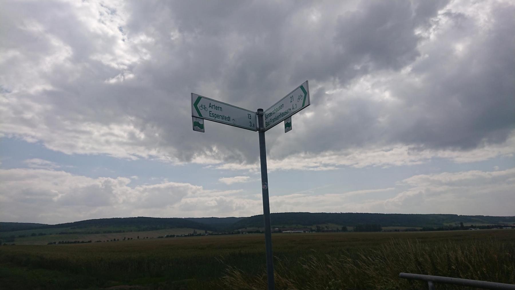 Kurz hinter Mühlhausen folgen wir einer alten Bahnstrecke, der wir mit kleinen Unterbrechungen über Schlotheim, Ebeleben, Sonderhausen, Bad Frankenhausen bis nach Artern folgen werden.