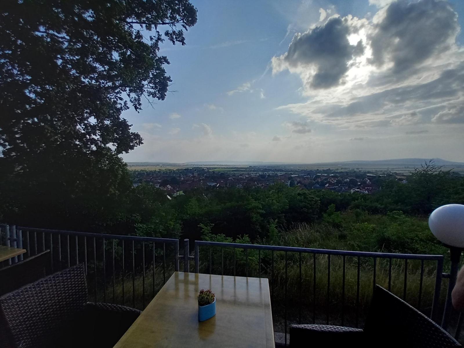 Abendessen gibt es heute im Hotel – lecker, danach ein Rundgang – in das Stadtzentrum nach Artern gehen wir nicht mehr hinunter. Wir genießen die Sonne und die Aussicht über das weite Tal der Unstrut.