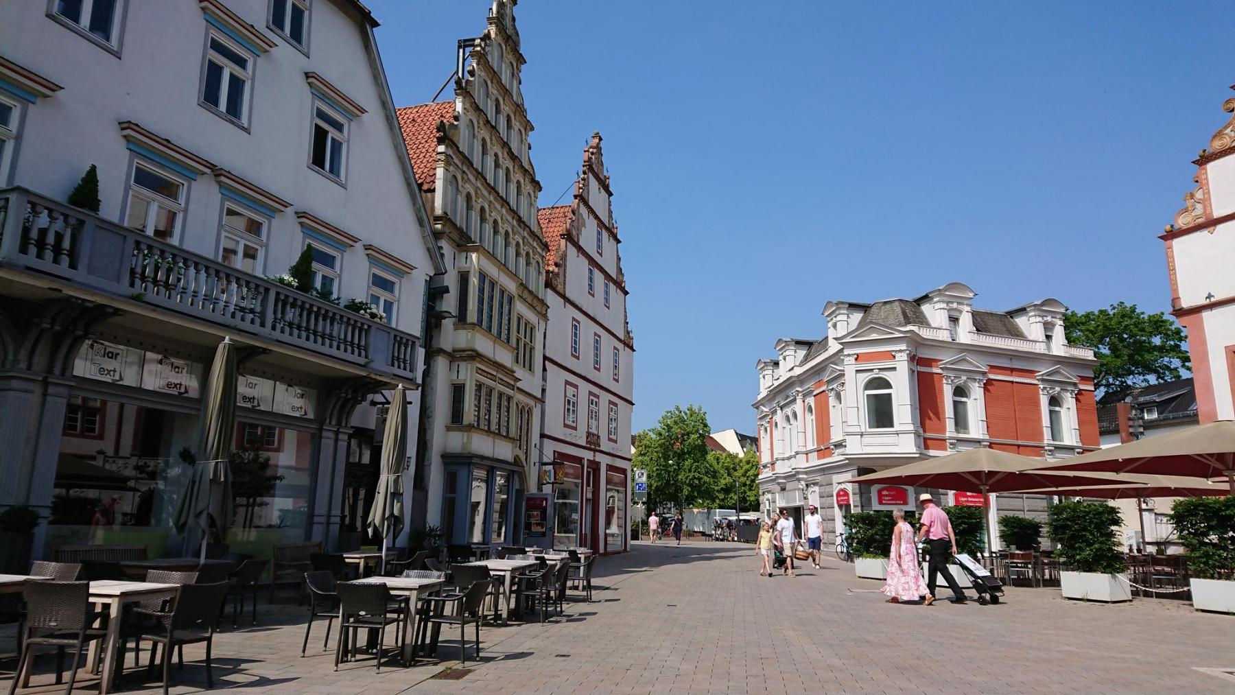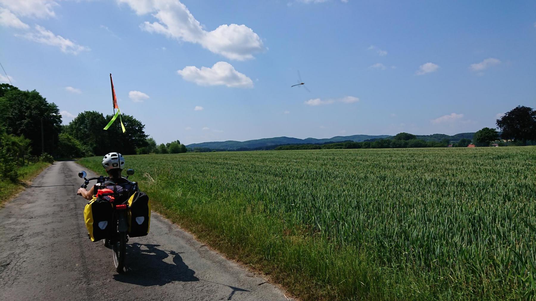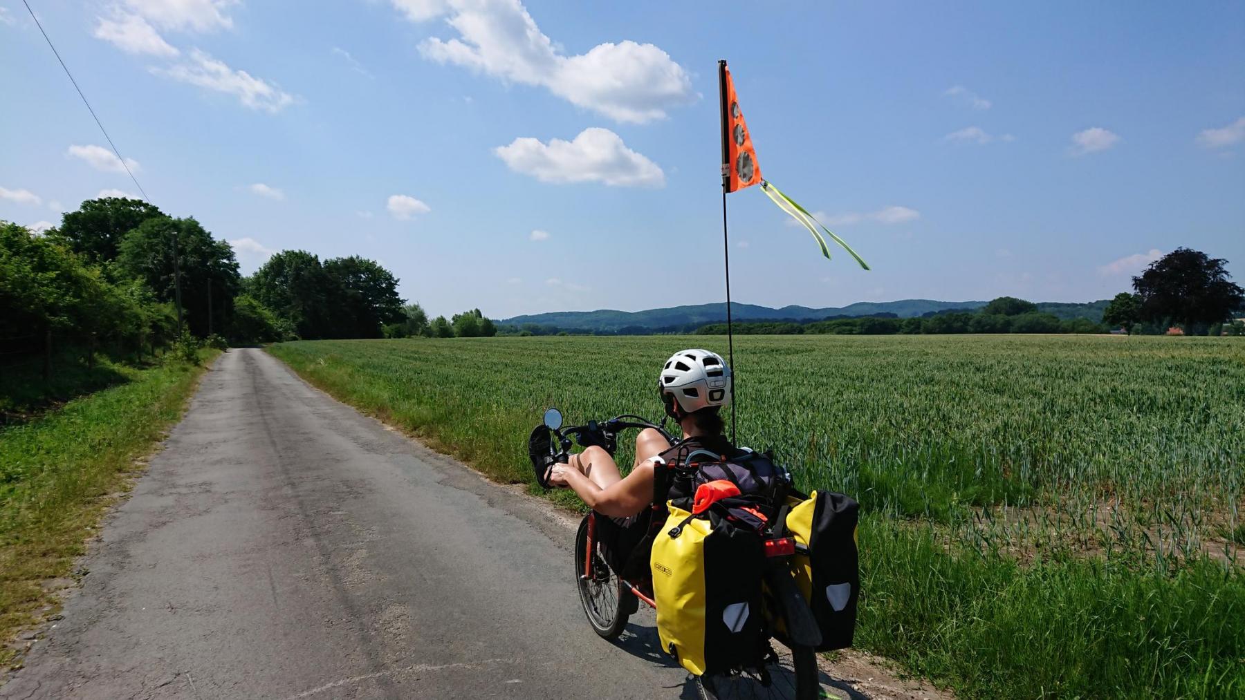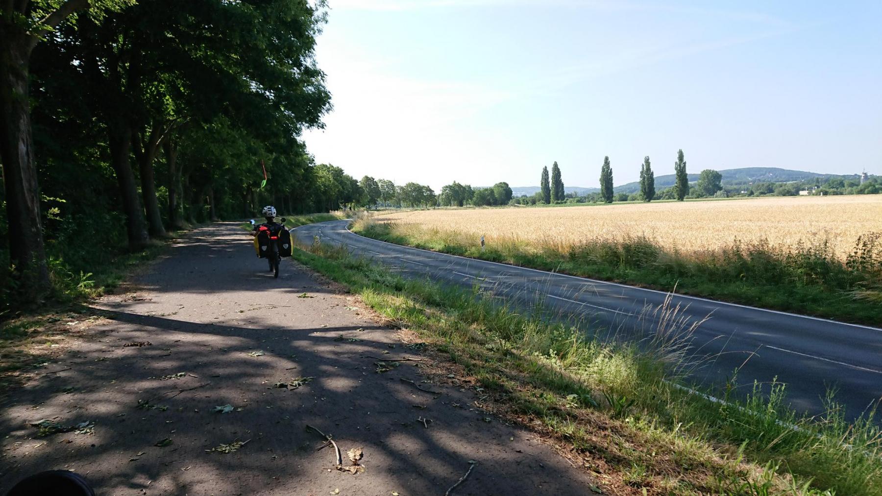 Bei strahlendem Sonnenschein verlassen wir Porta Westfalica. Von Regen keine Spur, und so soll es auch bleiben – stattdessen soll es richtig warm werden. Mehr als 30 °C sind für heute angesagt.