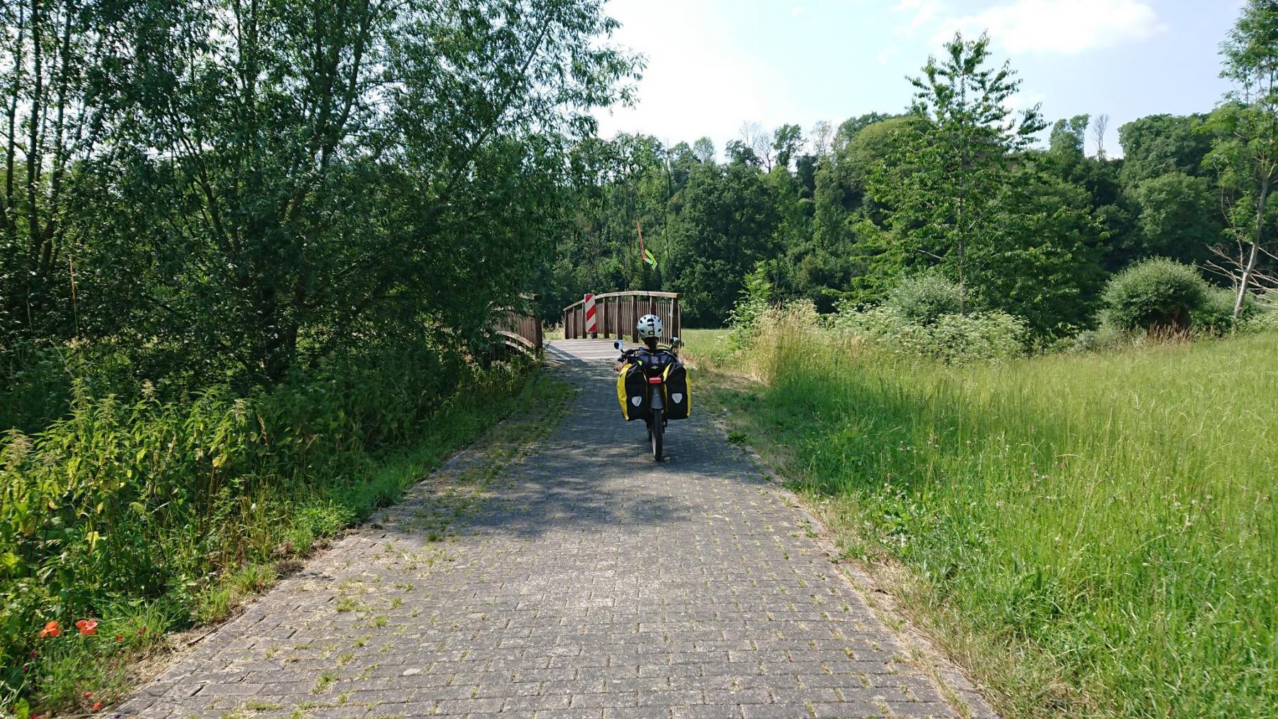 Manche Abschnitte des Radweges sind auch mit feinem Schotter belegt – zwar nicht ganz so toll aber immer noch gut zu fahren. Zum Tannenhof in Brenken geht es dann doch noch mal ein gutes Stück nach oben. Die Wärme hat uns langsam müde gemacht und so müssen wir zum Ende des Tages eine Schiebeeinlage einbauen.
