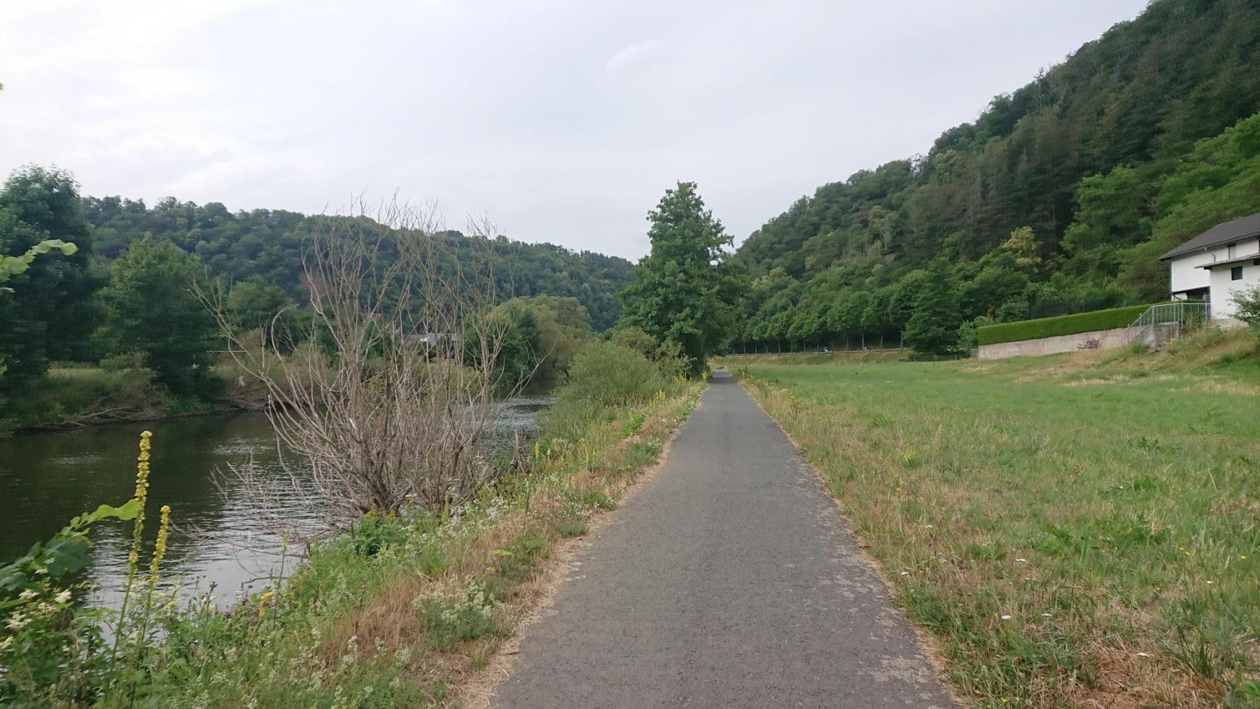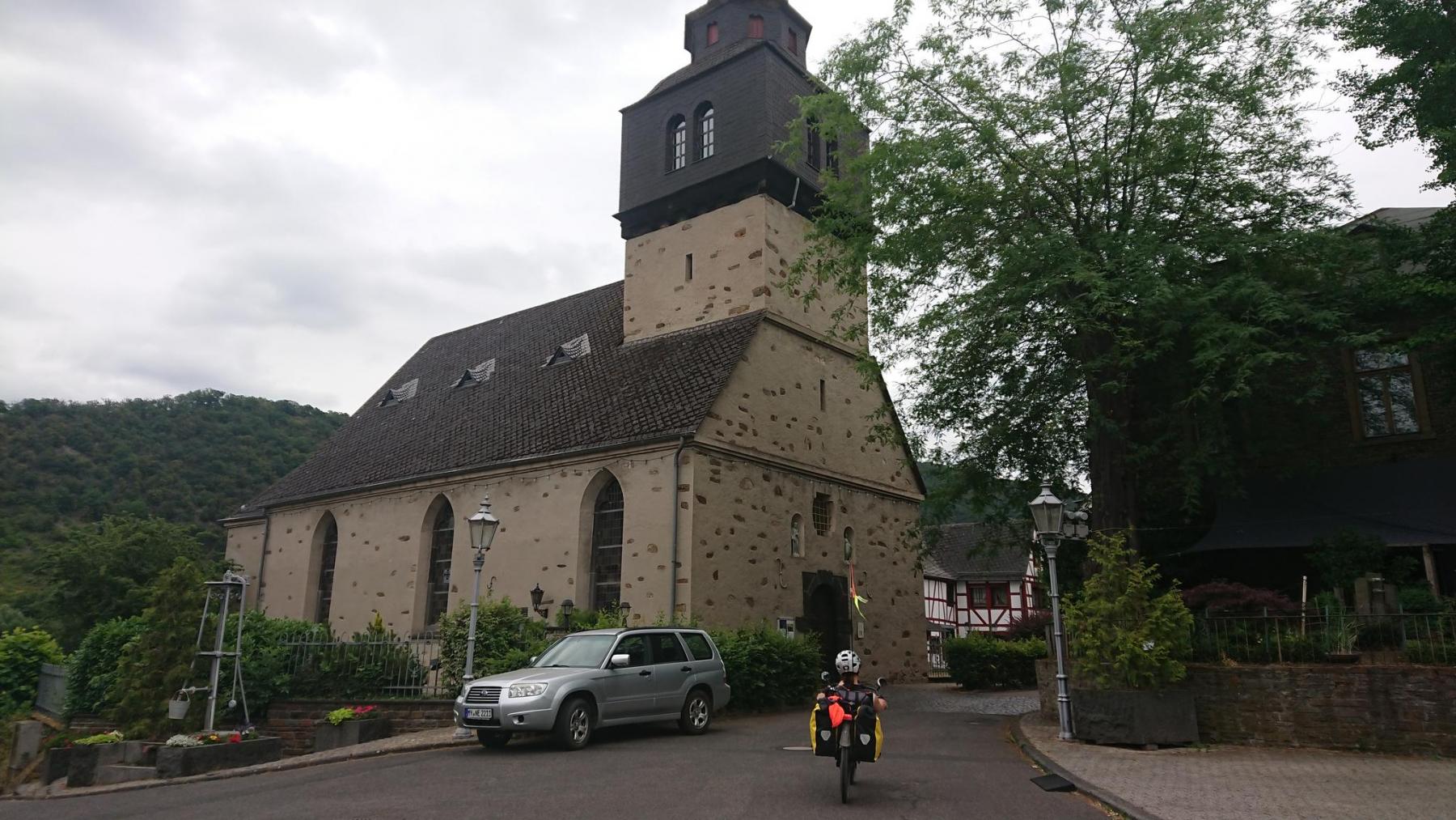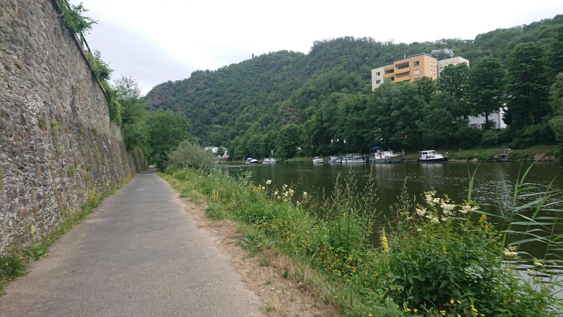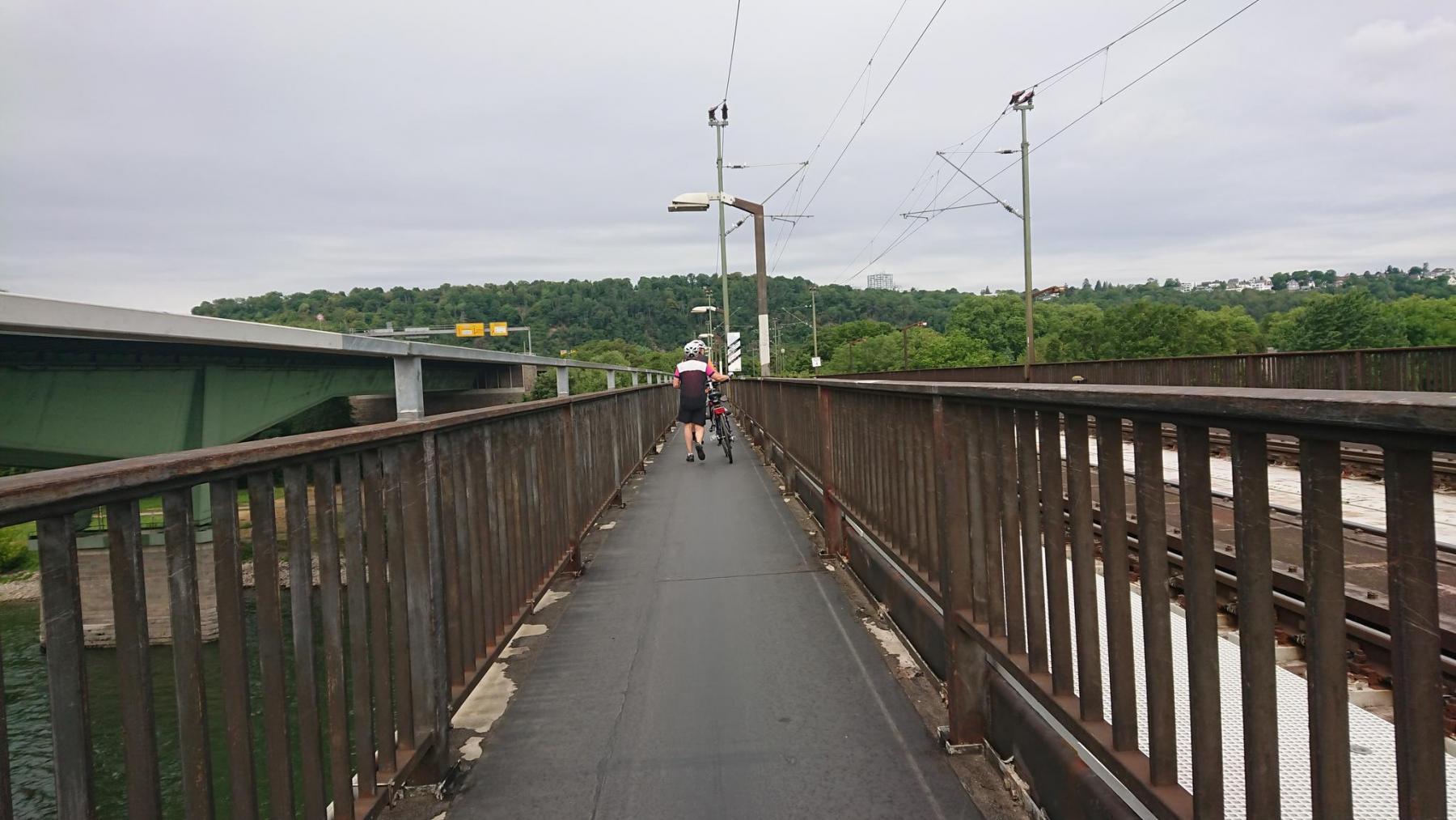 Mit 8-9 % geht es hinauf und der Bauch ist auch noch voll. Danach geht es wie auf einer Berg- und Talbahn bis nach Nassau – runter und rauf, runter und rauf. Auf den Abfahrten über 40km/h stellenweise über 50km/h, an den Anstiegen schaffen wir grad mal noch so 6-8 km/h. Auf dieser Seite der Lahn ist halt nicht mehr Platz. Ab Nassau wird er besser – schnell ist Bad Ems erreicht.