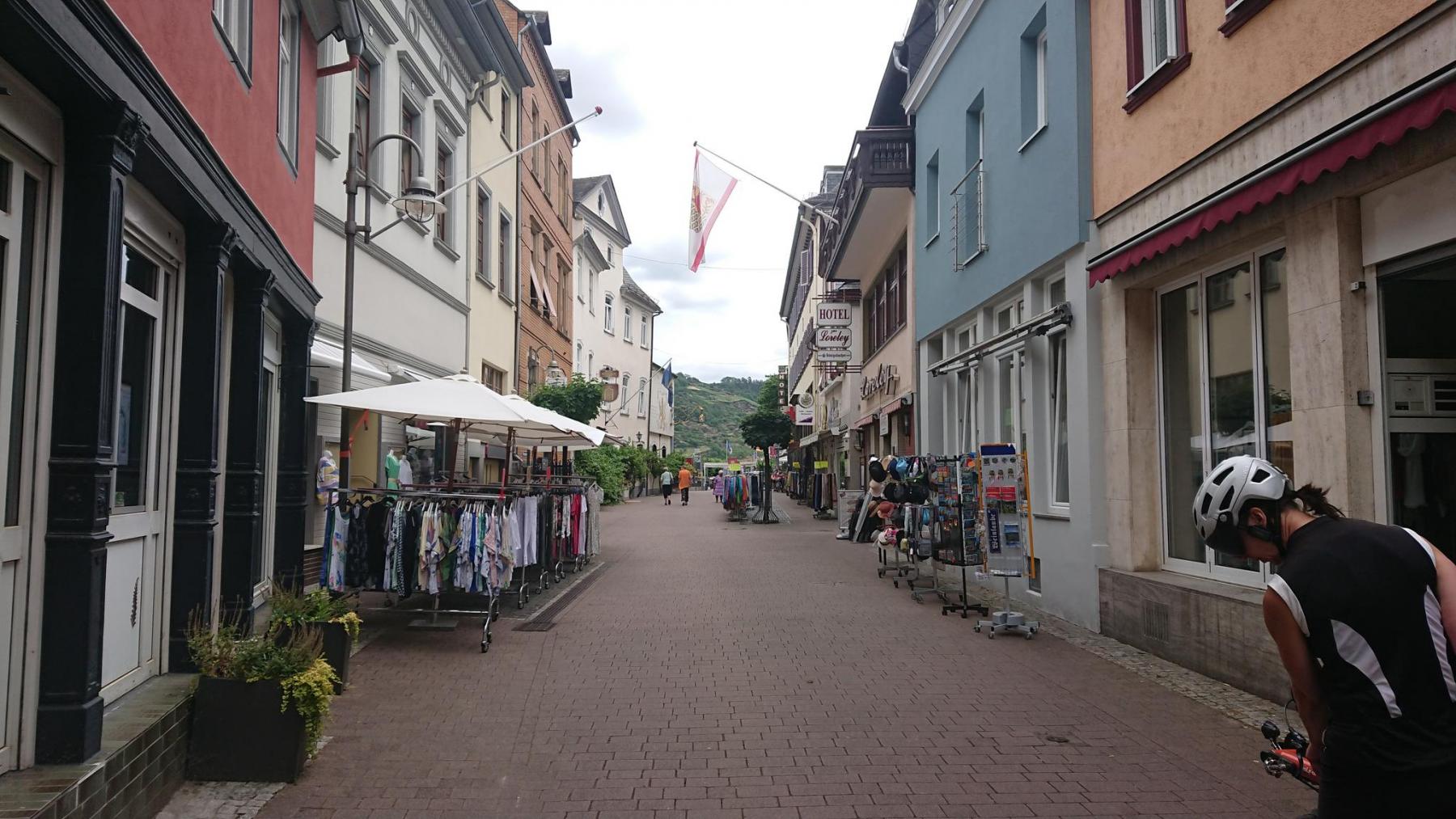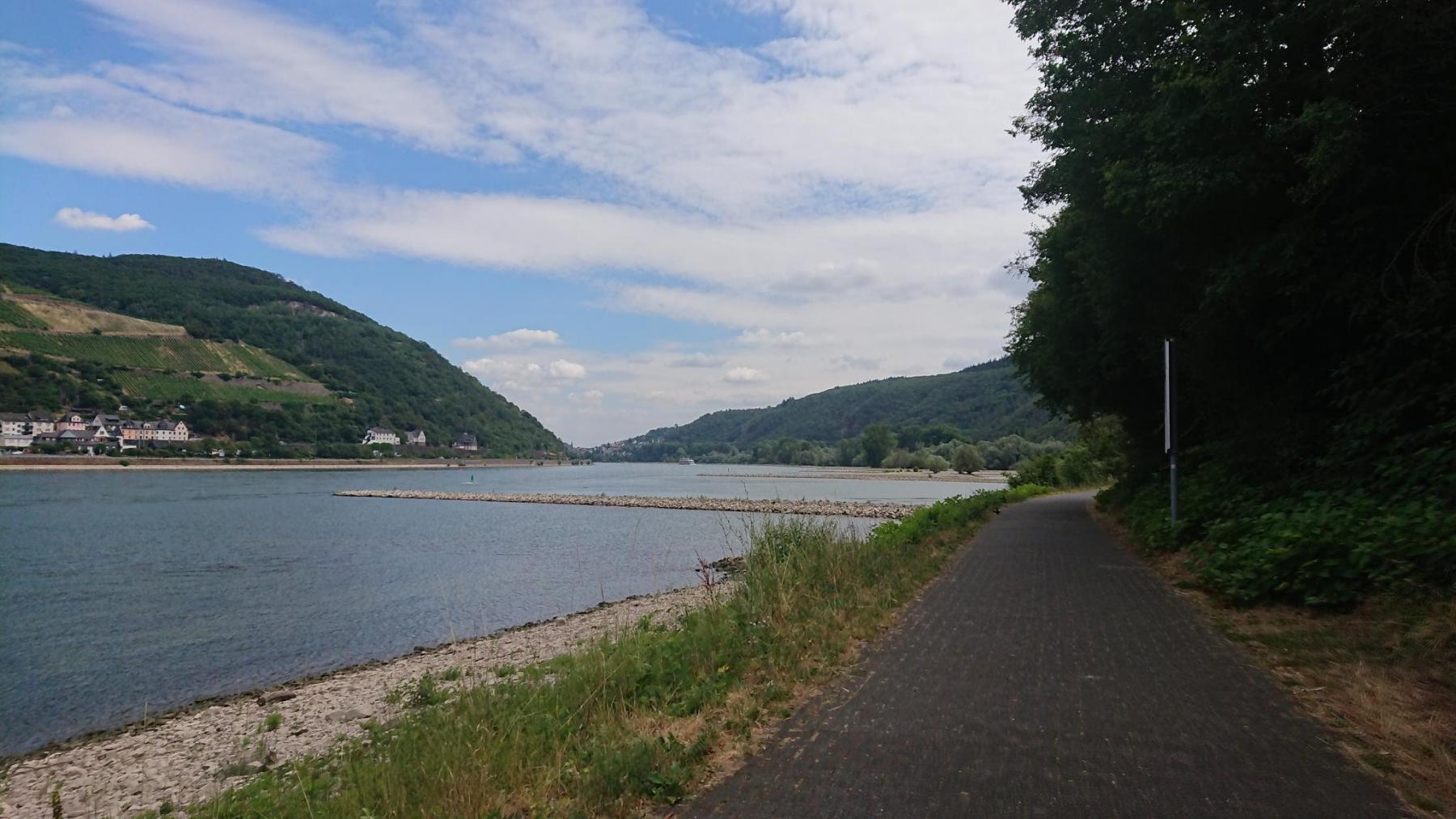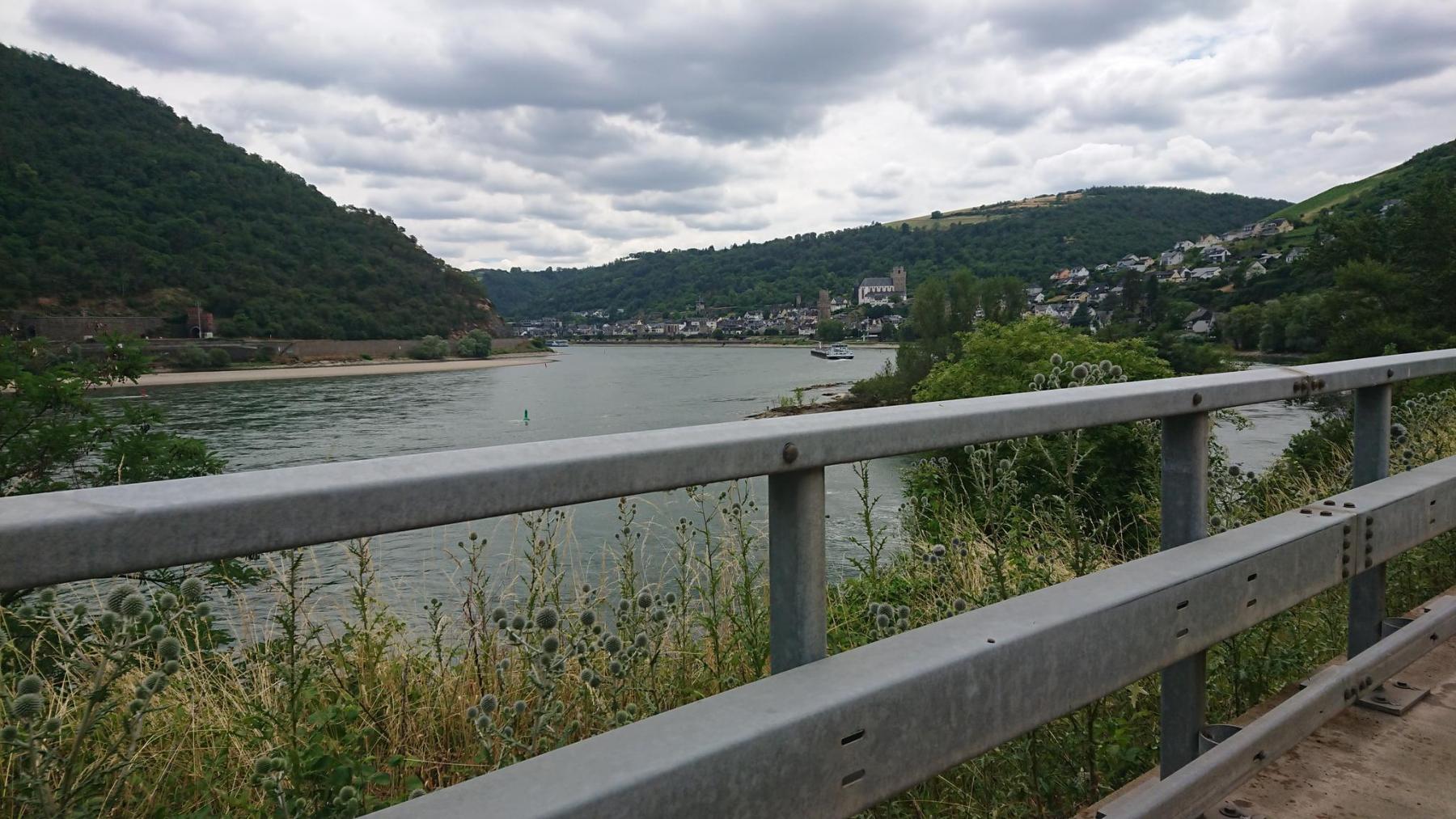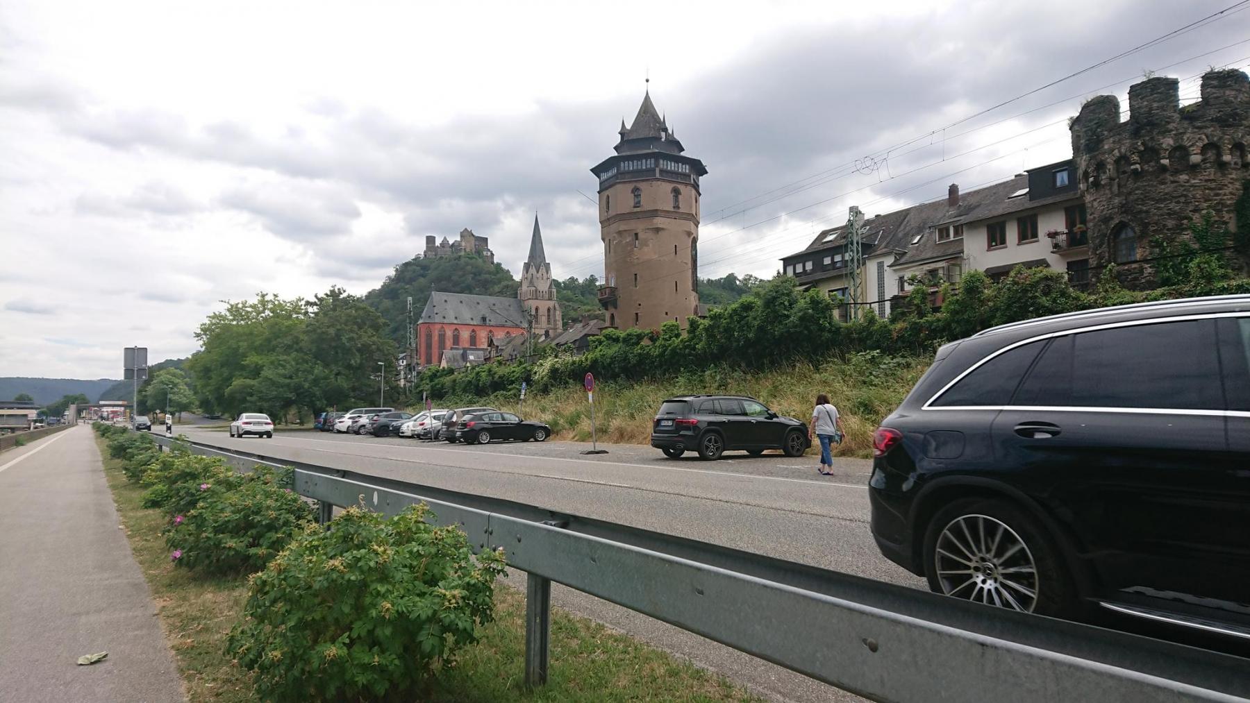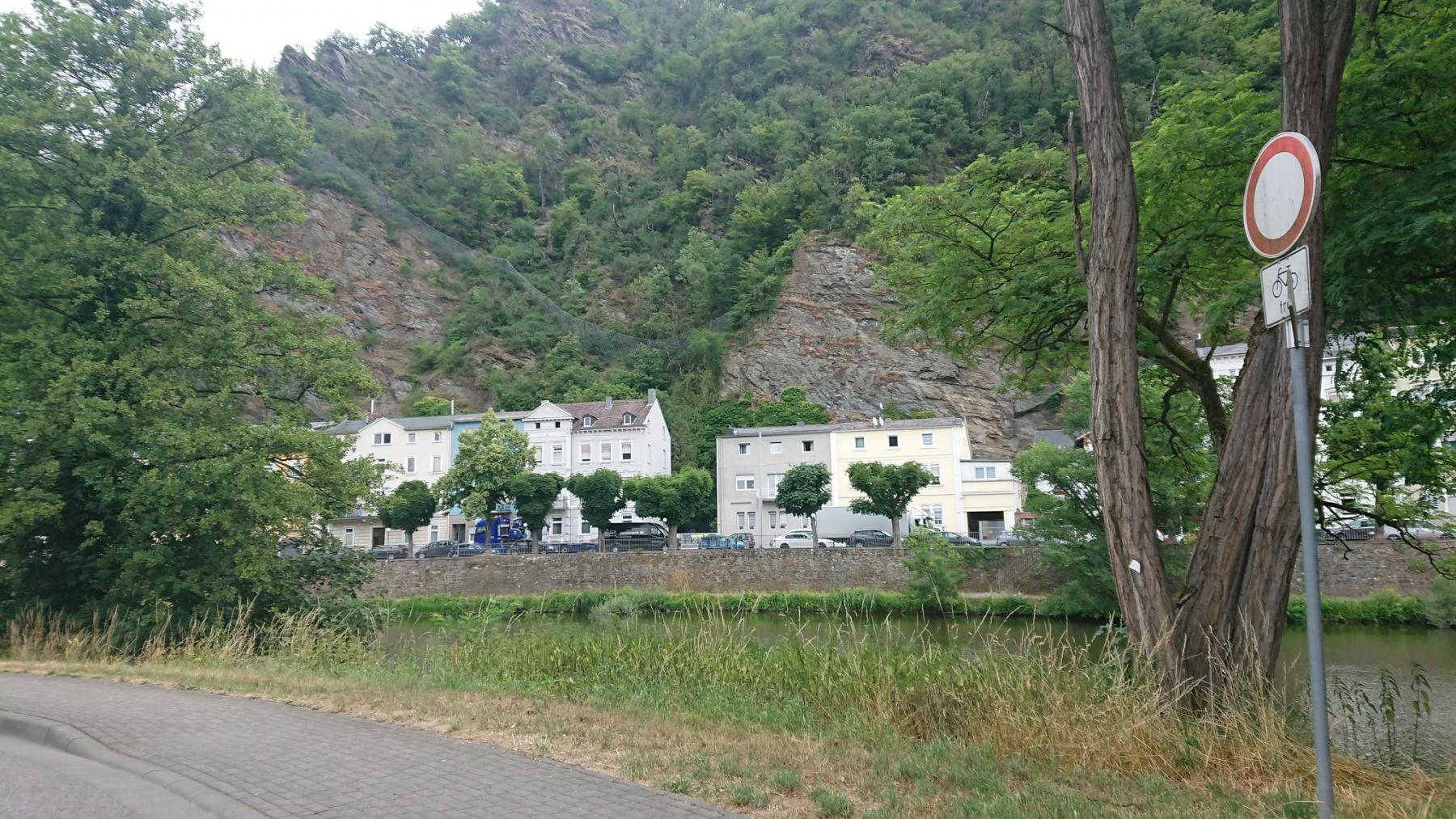 Dominiert wird Bad Ems vom Kurhotel und viele der Häuse stammen wohl noch aus der Kaiserzeit, als sich der Adel in Bad Ems zur Erholung traf. Wir lassen Bad Ems schnell hinter uns. Bis zum Rhein sind es nur noch gut 10 km. Wir queren den Rhein auf der Südbrücke von Koblenz – Koblenz und das deutsche Eck müssen wir ein andern Mal besuchen, denn unser Weg führt uns Rheinaufwärts. Von Koblenz sind es etwas mehr als 30 km bis St.Goar. Hier wollen wir zu Mittag essen. Der Ort ist voll mit Touristen. In der kleinen Fußgängerzone finden wir in einer Seitengasse ein asiatisches Restaurant. Es war echt lecker dort. Und als wir nach dem Essen wieder auf die Straße kommen, ist die Stadt wie ausgestorben. Alle Gäste sind weg.