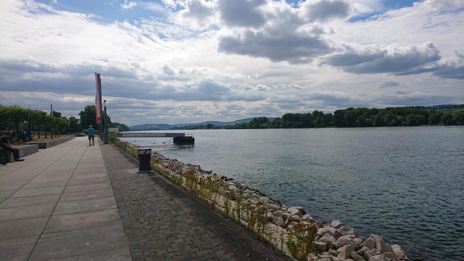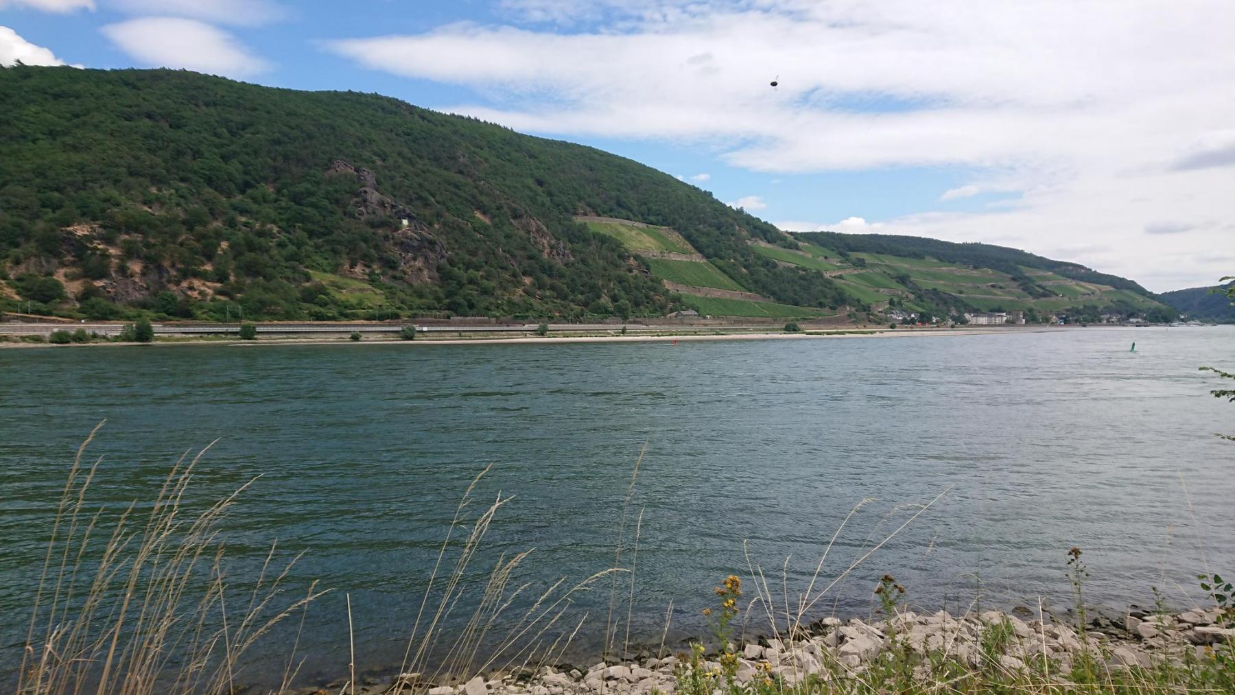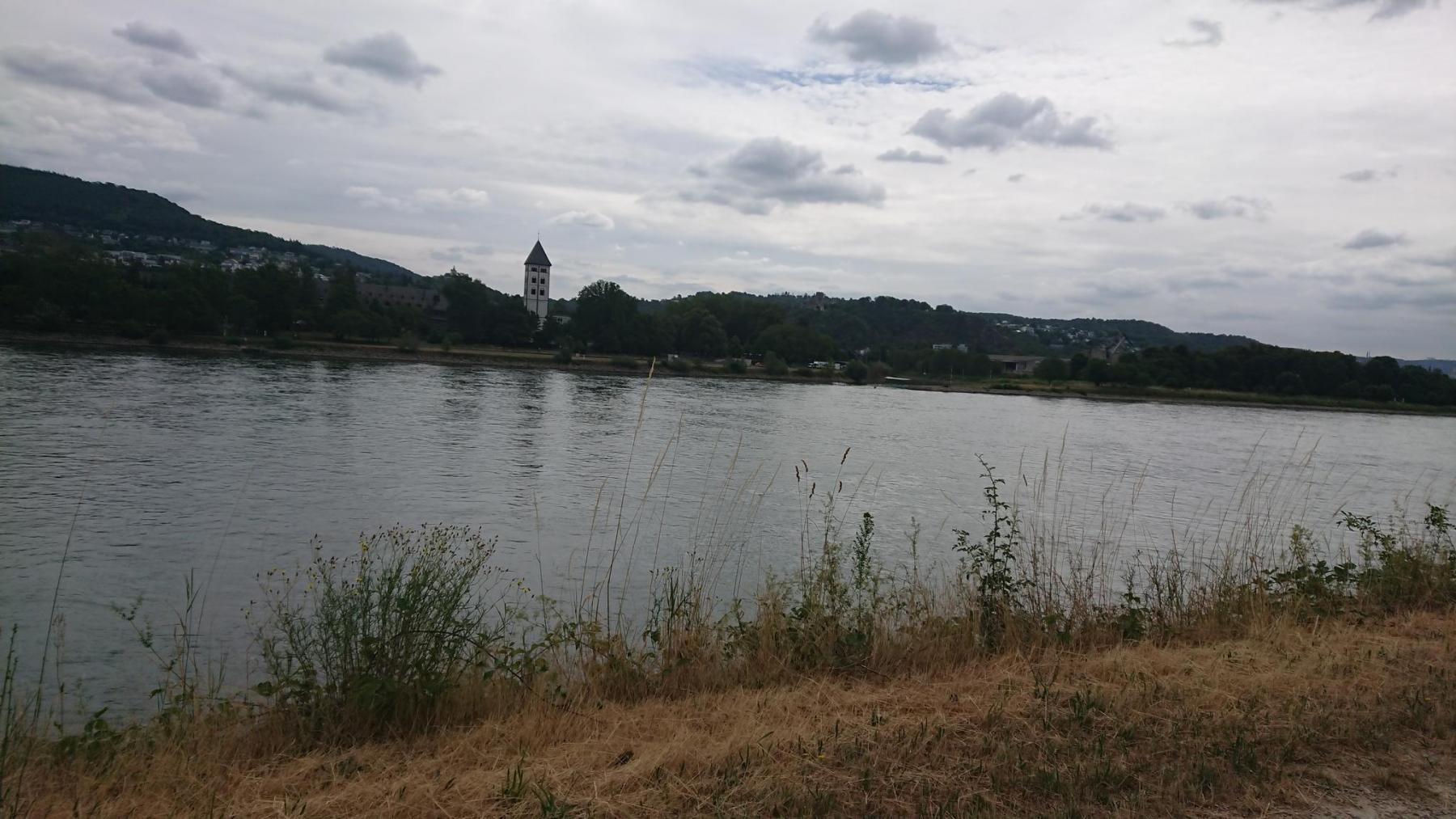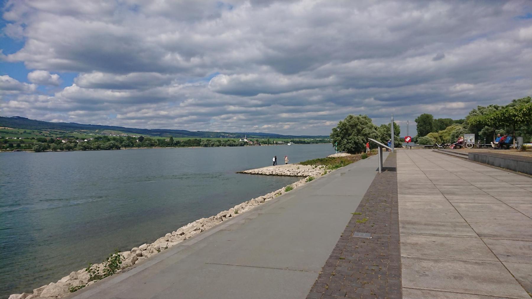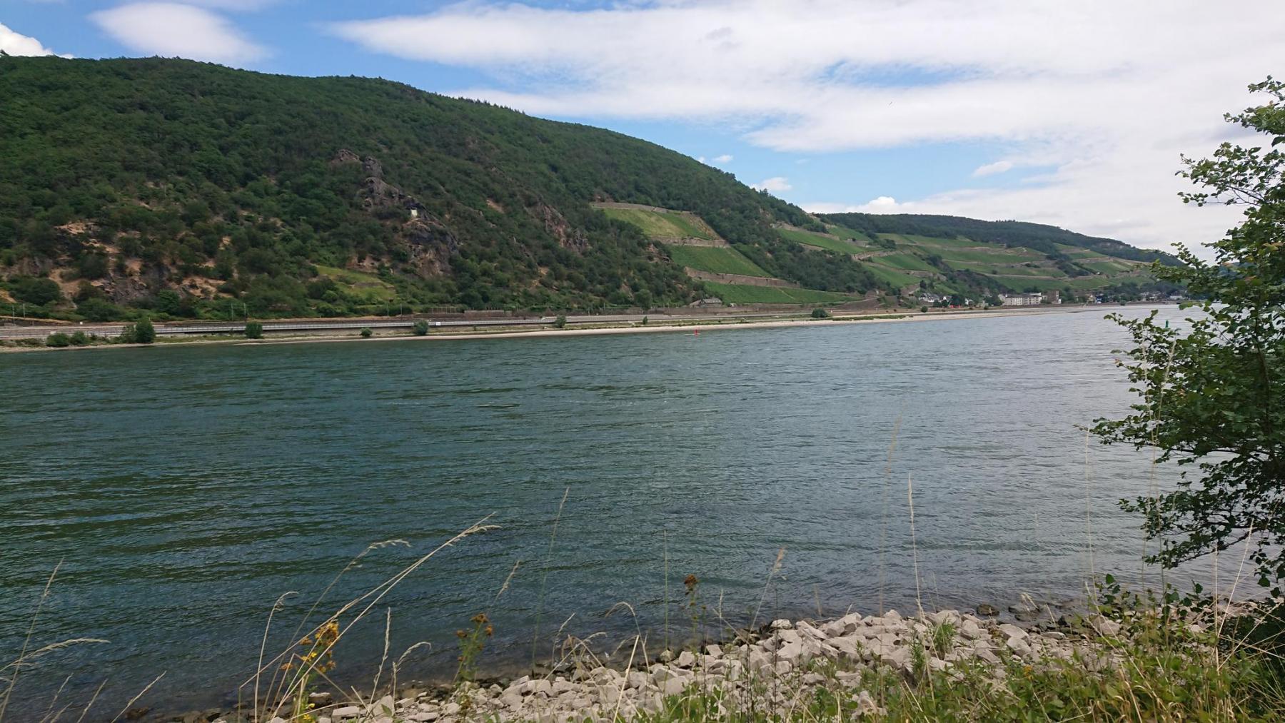 Am Abend machen wir noch einen ausgedehnten Spaziergang am Rhein. Statt Bierwagen oder Eiswagen gibt es hier am Rhein Weinstände. Na Ja, fast jeder Berghang ist mit Wein bepflanzt.