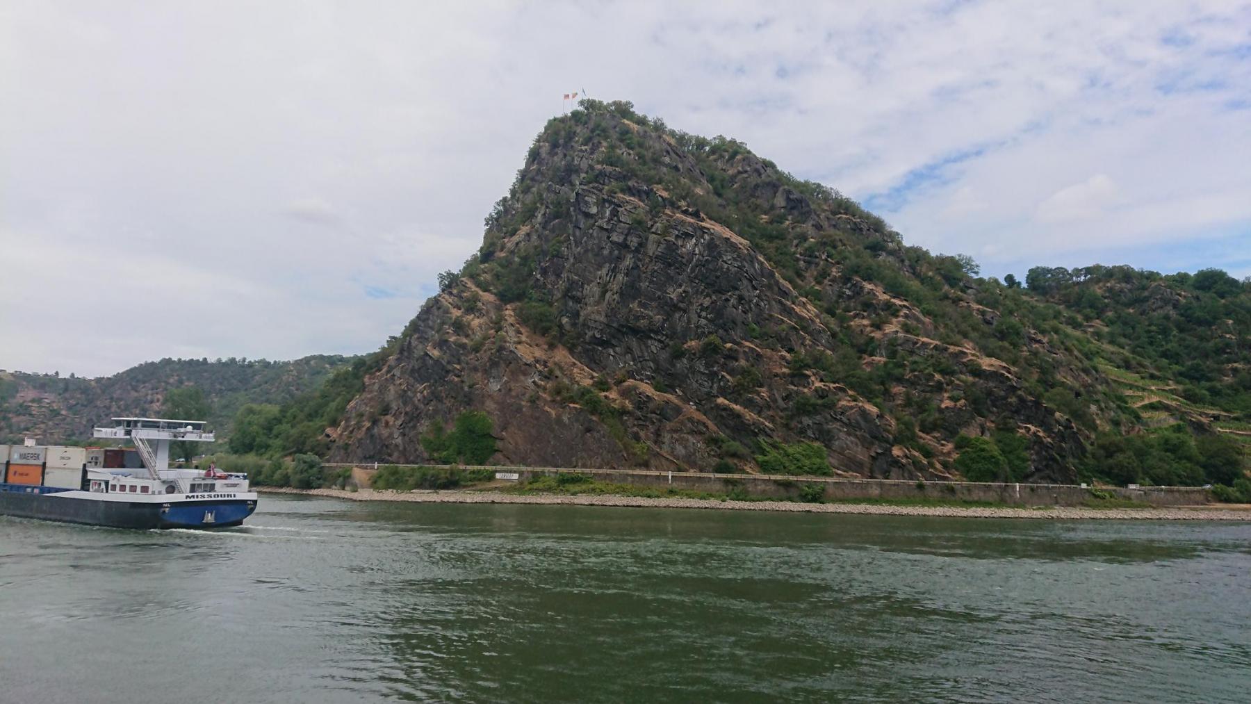 Unser Nächstes Ziel – Loreley. Der Rhein hat sich hier tief in das Gestein gefressen und die Schiffe auf dem Rhein müssen in einer engen Kurve um den Loreley-Felsen herum navigieren. Es gibt hier sogar eine Ampel für Schiffe auf dem Fluss.
