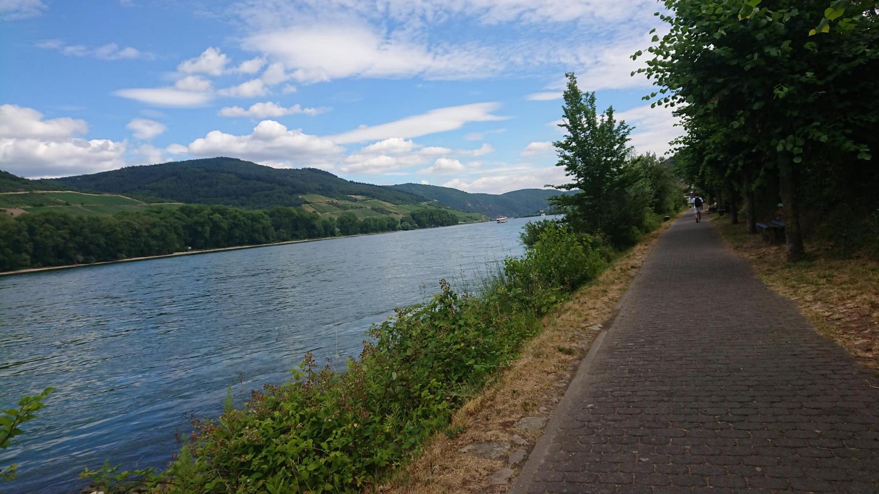 Auch hier auf dem Rheinradweg sind nur wenige Radreisende unterwegs. Seitdem wir von der Loreley weg sind, haben wir den Radweg am Rhein fast für uns alleine. Noch sind es etwas mehr als 30 km bis zu unserem Ziel in Oestrich-Winkel. Als die Sonne dann längere Zeit vom Himmel scheint, wird es schnell wieder über 30°C warm.