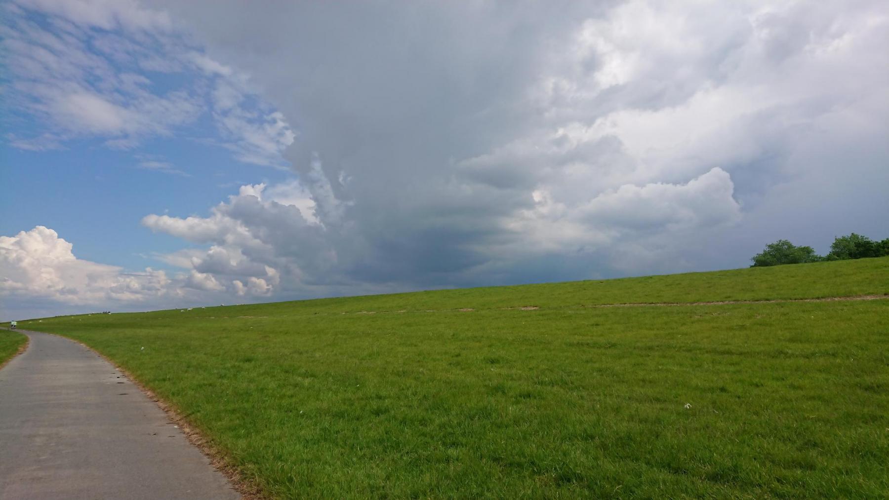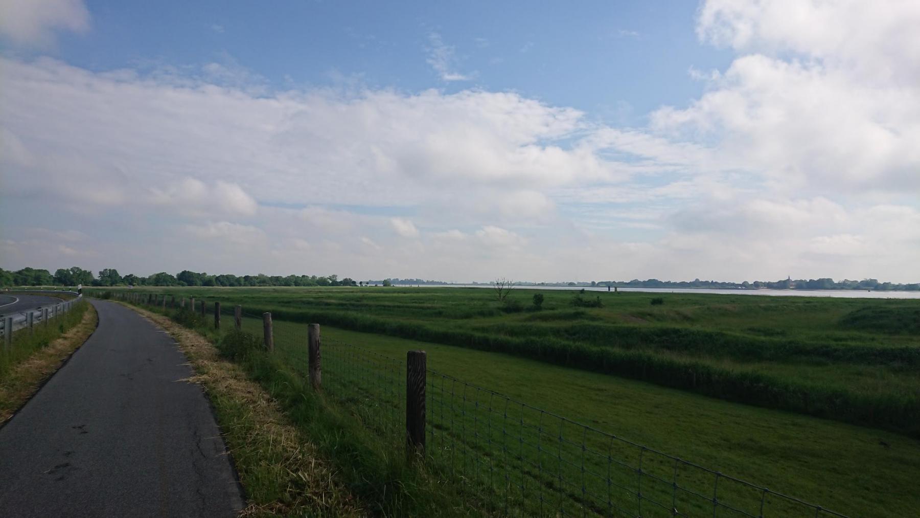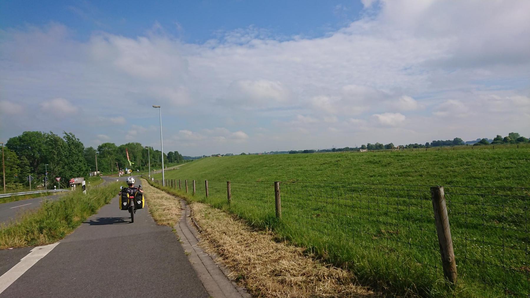 Ein Stück geht es dann an der Elbe entlang, am Himmel immer mal wieder dunkle Wolken, aber noch sind wir vom Regen verschont.