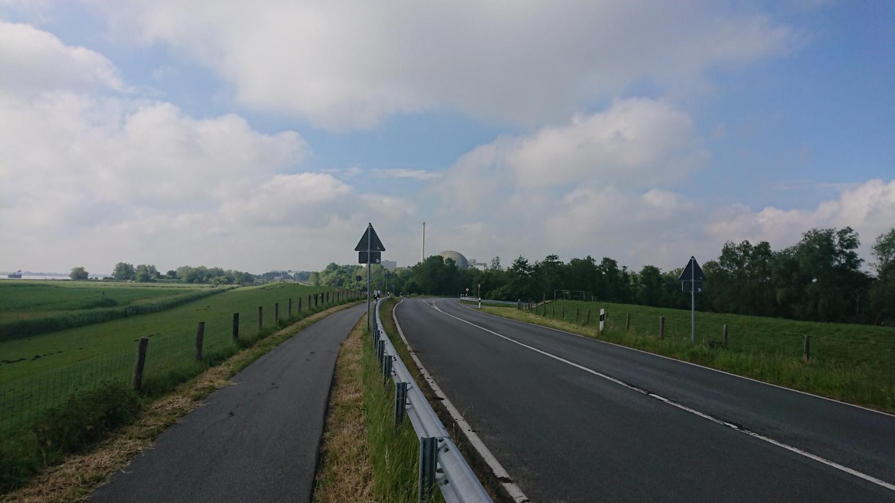 Wie gestern schon geschrieben ist das heutige Frühstück recht einfach. Für uns heißt es erstmal linksseitig der Weser nach Nordenhamm zu fahren. Es geht vorbei am KKU (Kernkraftwerk Unterweser).