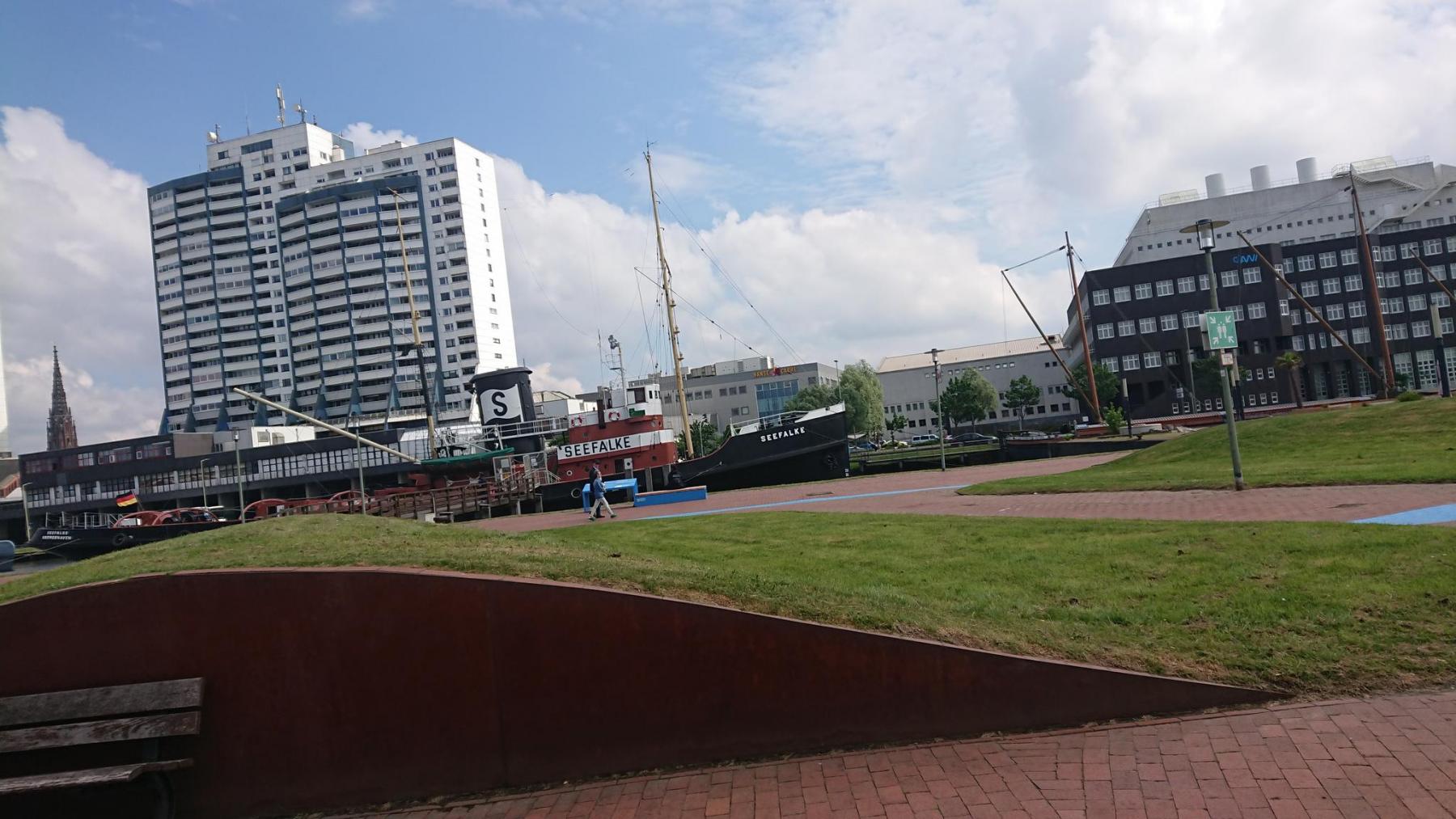 Da heute Feiertag ist, ist der Weg durch den Überseehafen von Bremerhaven heute nahezu auto- und 100% LKW-frei. Toll, so können wir auf der Fahrbahn fahren, ohne von LKW’s an den Rand gedrängt zu werden.