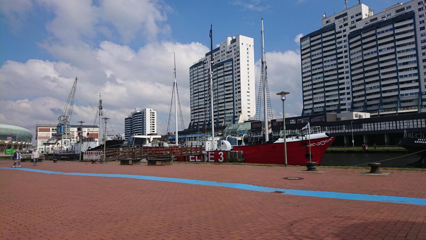 Die Weserfähre und den anschließenden Weserradweg sind wir auch schon auf der Herbsttour 2022 gefahren. In diesem Fall hätten wir den Vorschlag für die Route durch Bremerhaven nicht annehmen sollen, führt er uns doch durch den Hafen und das Schifffahrtsmuseum. Es sind zwar schöne alte Schiffe zu sehen,