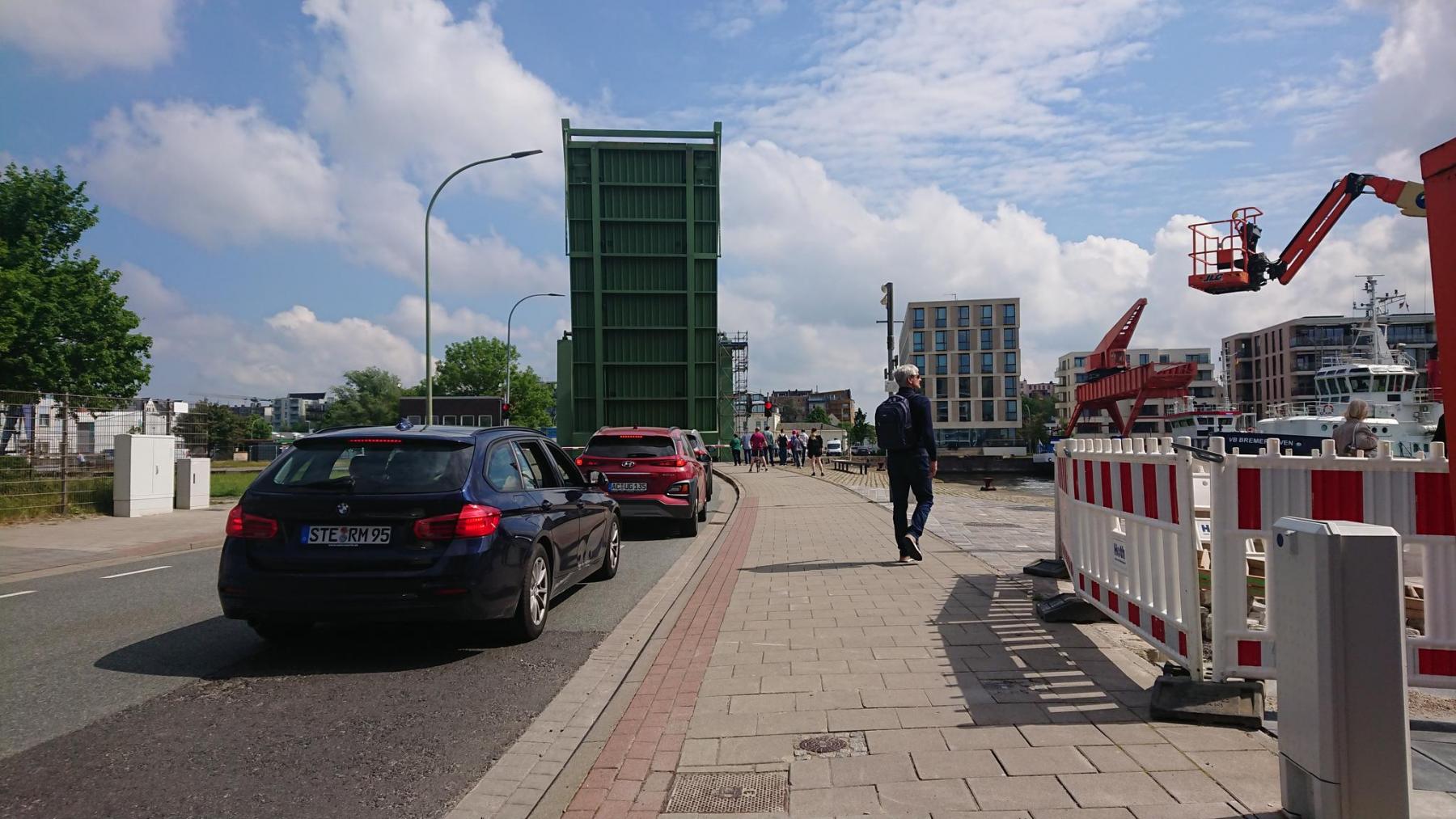 aber in Ermangelung von Radwegen kommen wir nur bedingt schnell voran, zudem ist eine der Hafenbrücken gerade hochgeklappt, was uns zu einer weiteren Staupause zwingt.
