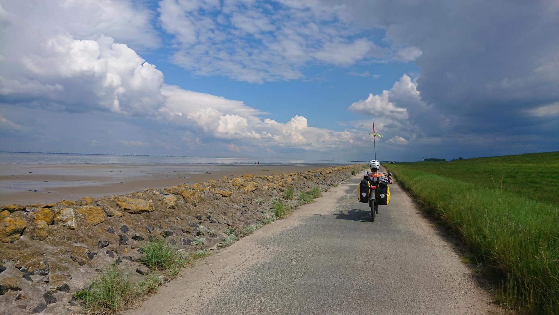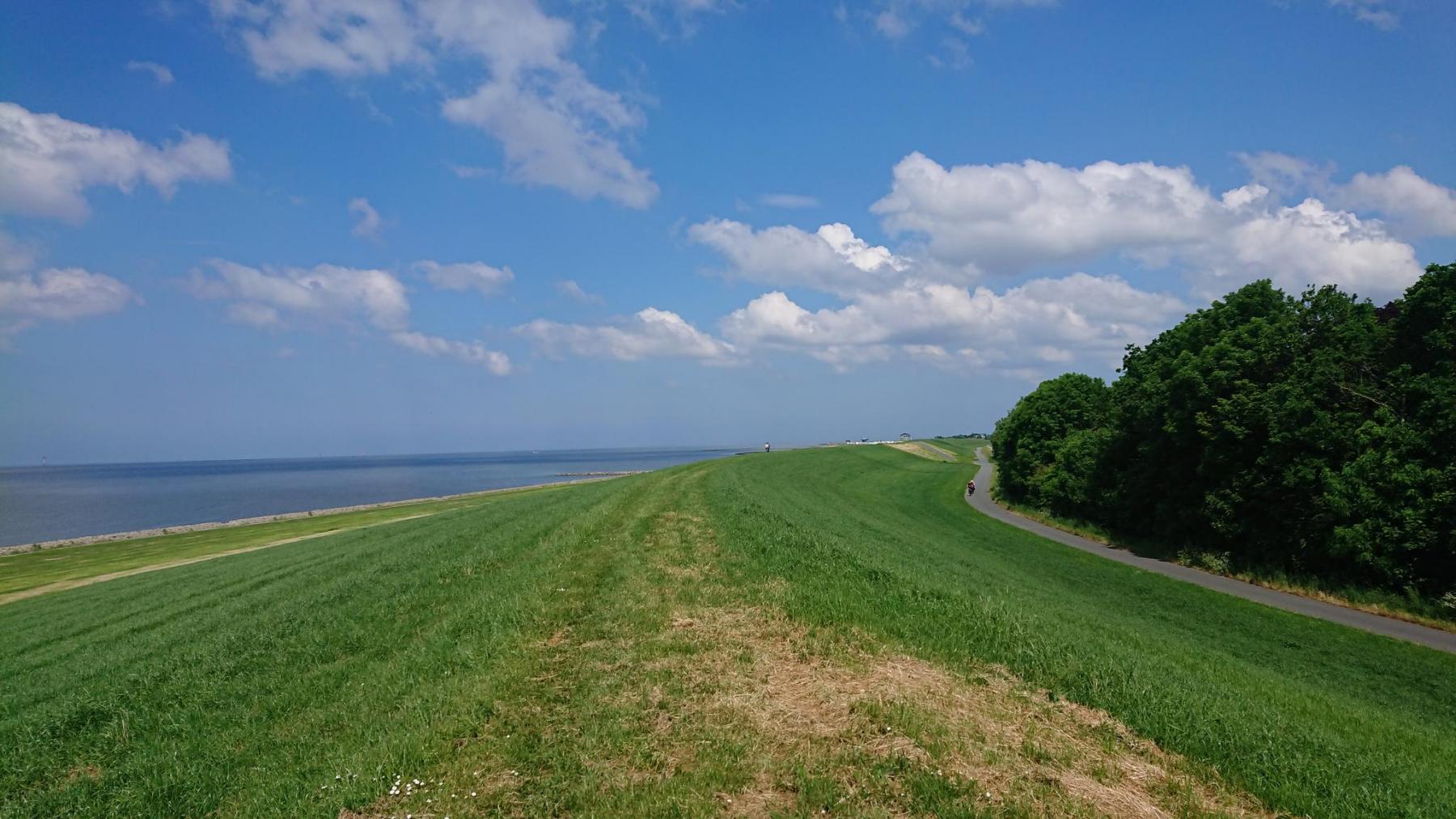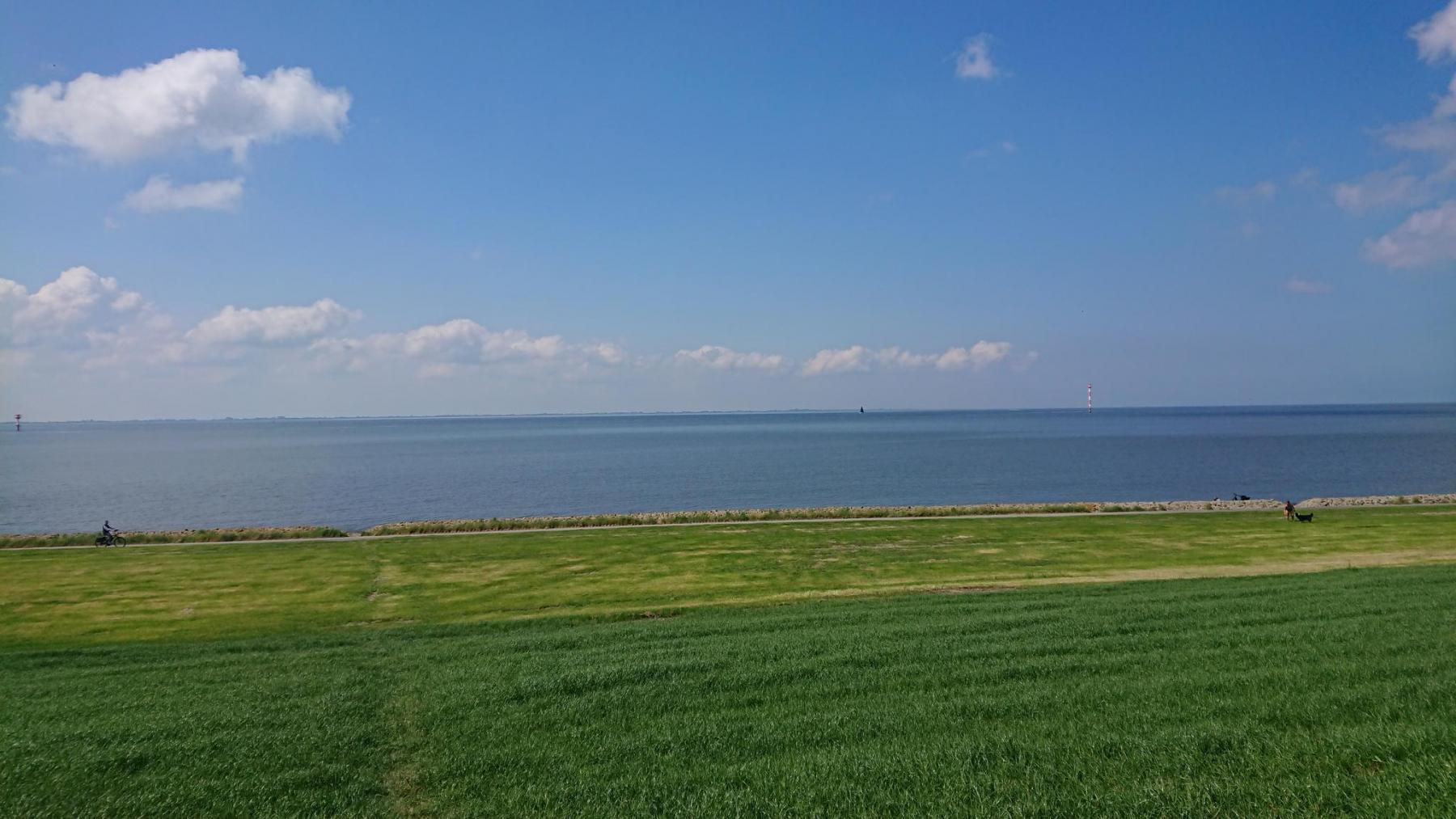Und dann haben wir Bremerhaven auch schon hinter uns, und vor uns liegt die Pause am Deich und der freie Blick auf Weser und Nordsee.