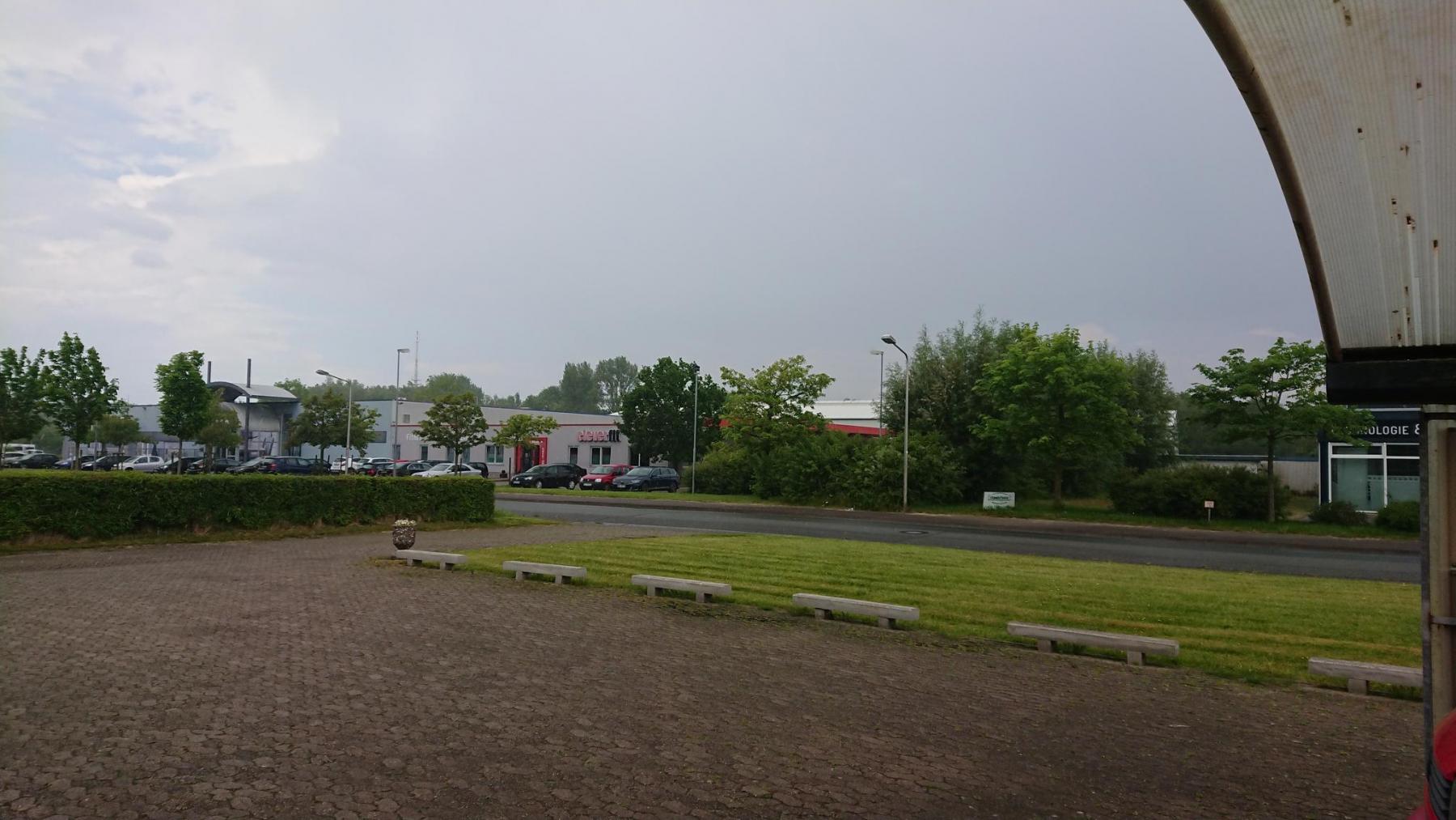 Kurz vor Cuxhaven zieht sich der Himmel zu, wir verlassen diesmal die Weser-Radweg in Berensch und fahren nicht bis zur Kugelbake. Unterwegs dann ein Anruf auf dem Handy, unsere Gastgeberin informiert uns, dass sie nicht da ist und wie wir über den Schlüsslesafe hineinkommen können. Danke. Am Rande von Cuxhaven dann der erste Schauer. Wir finden rechtzeitig Unterschlupf bei einem Motorrad-Händler im Industriegebiet.
