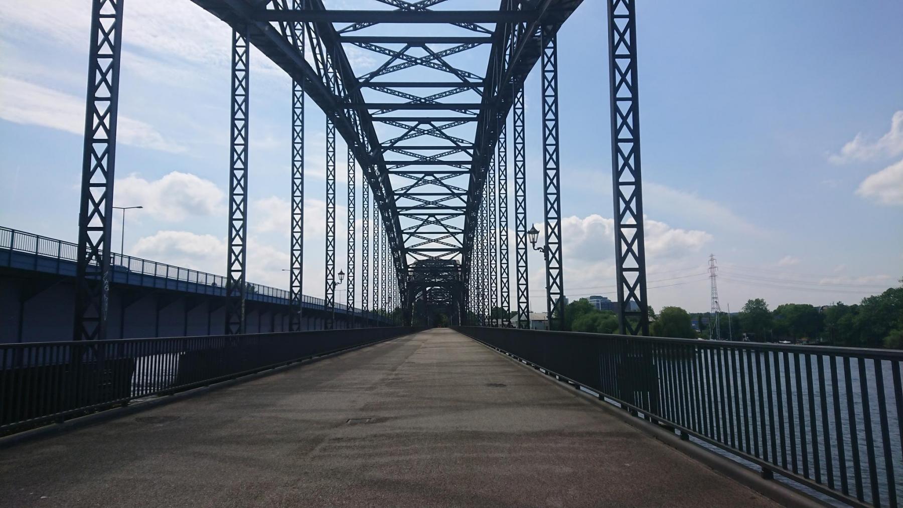 Wir kommen nur langsam durch den Hafen, der Wind steht uns immer noch entgegen – und Lust haben wir schon gar nicht mehr. Knapp 80 km haben wir erreicht, als wie die alte Elbbrücke der Süderrelbe erreichen.