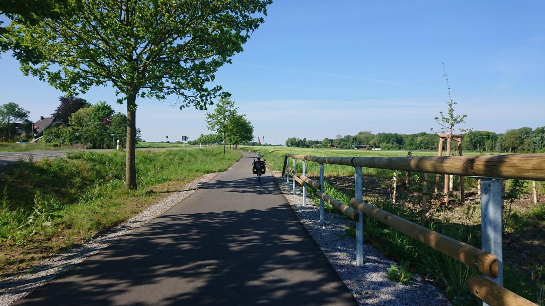 Die Fahrt an der Werse ist schön, keine Autos, ein guter wenn auch sandiger Weg. Wir folgen dem Lauf für rund 5km und gehen dann zurück auf die Landstraße, die hier einen guten Radweg hat.