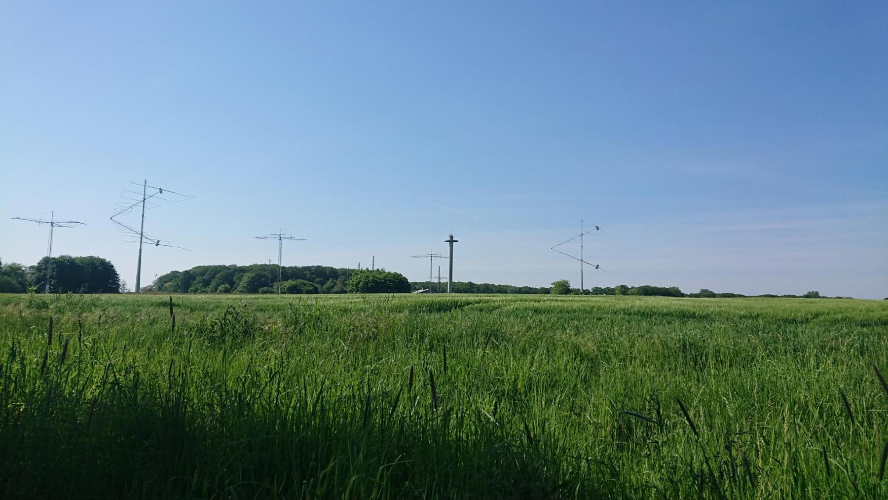 In der Ferne ragen Funkmasten auf. Wie sich später herausstellt gehören die zur Funksendestelle Albersloh der Luftwaffe.