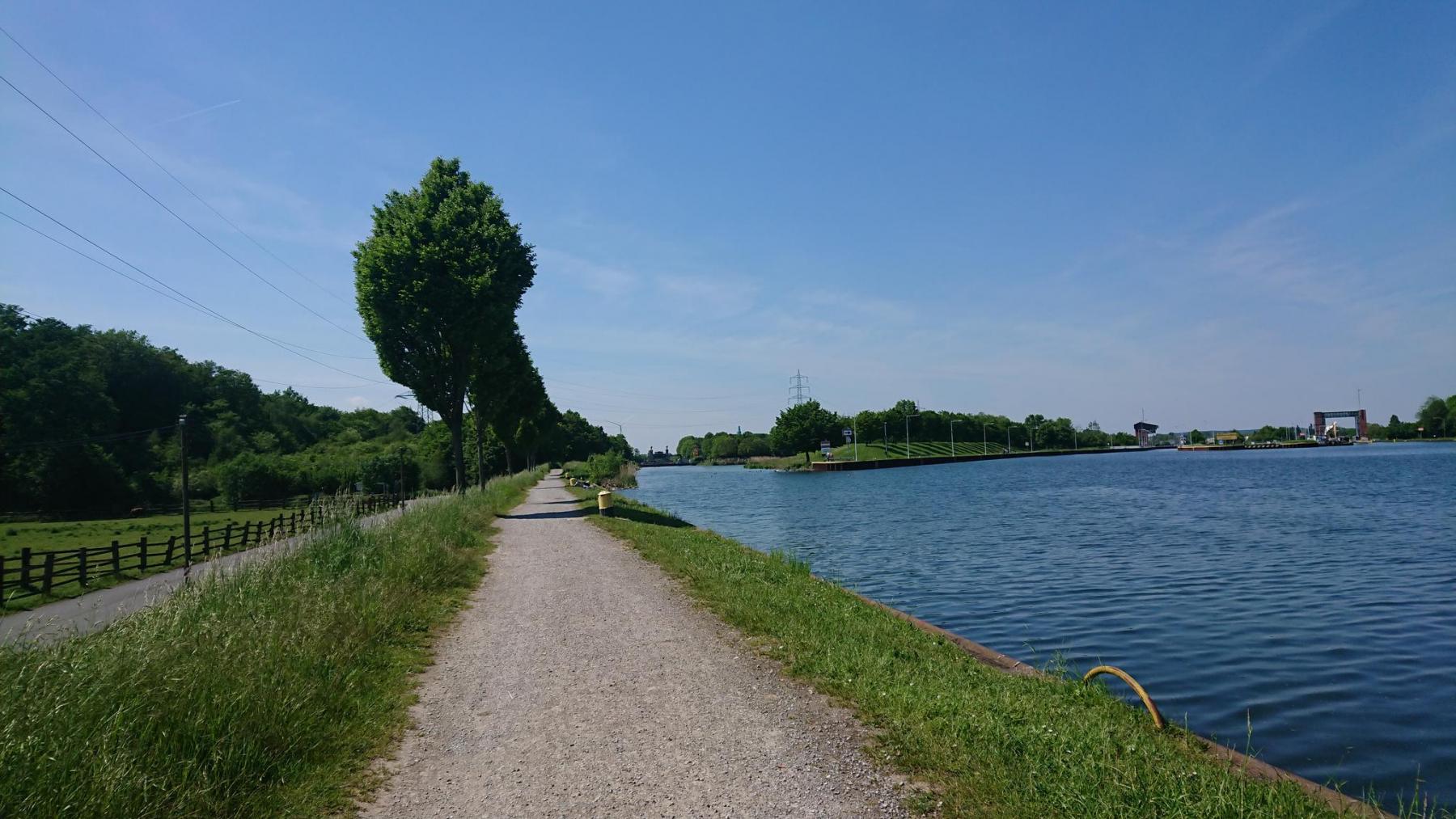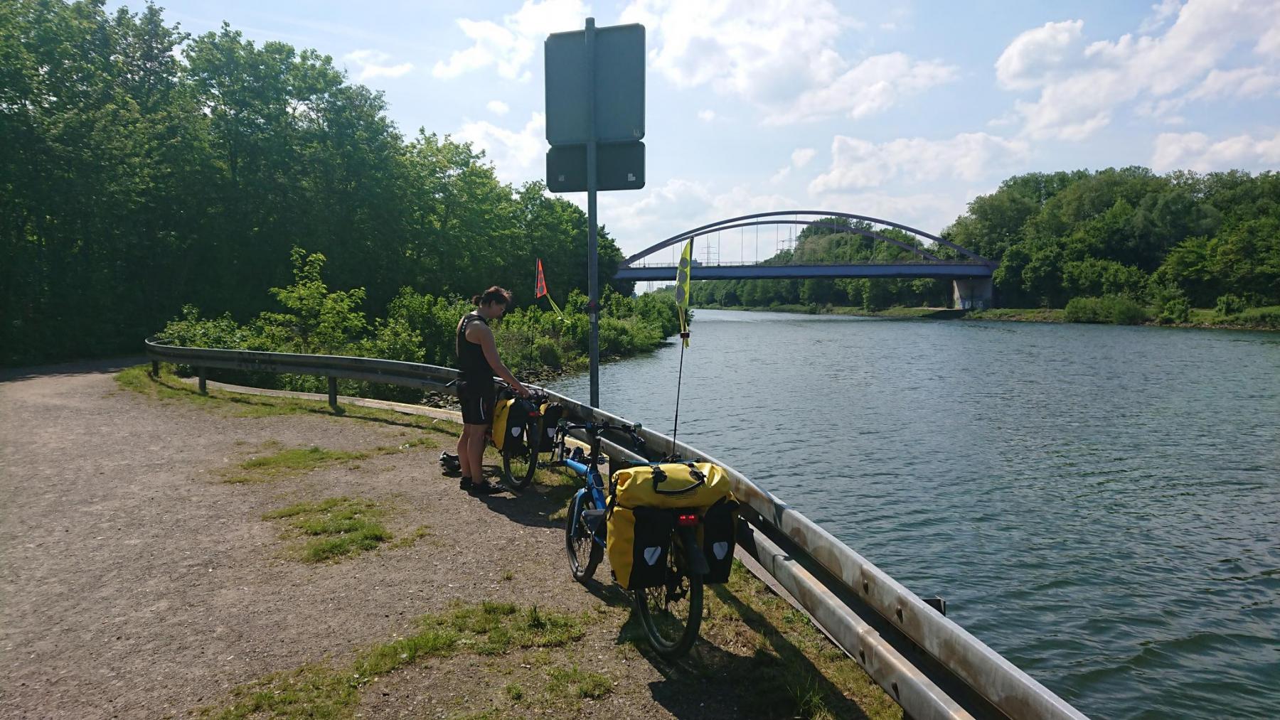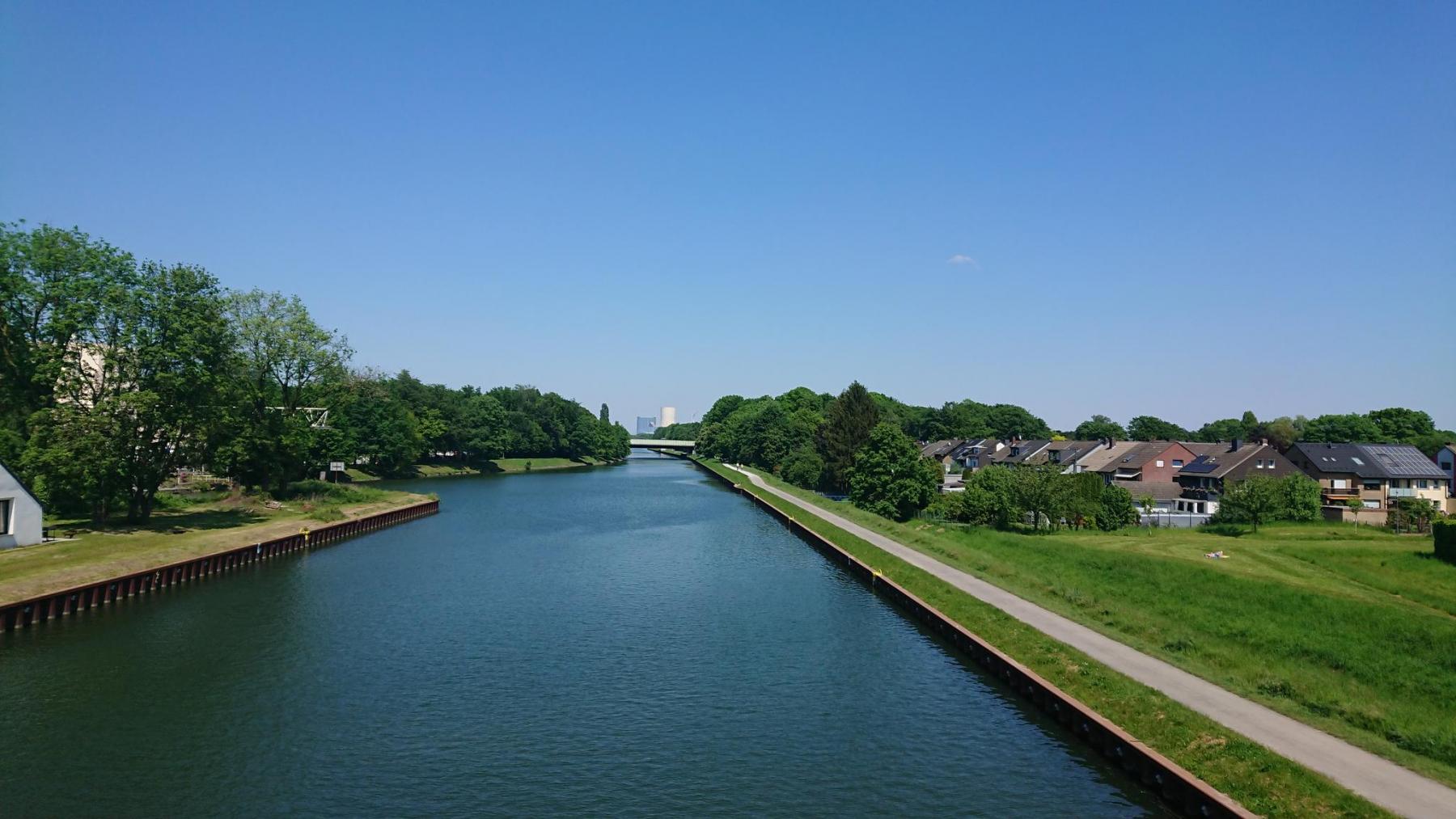 Fast bis Gelsenkirchen können wir am Kanal entlagnfahren und in Gelsenkirchen können wir auf eine alte Bahntrasse wechseln.