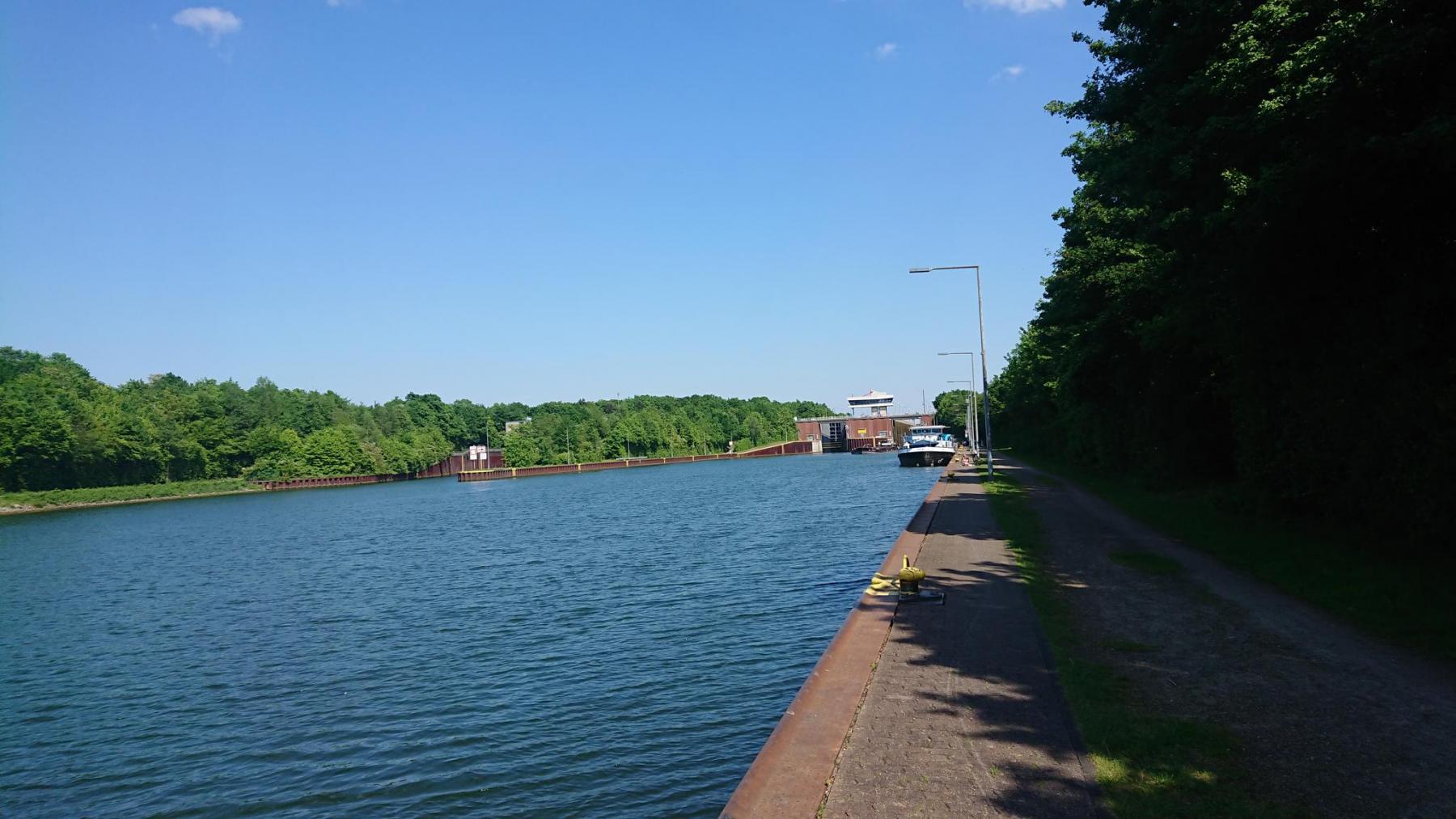 Gemütliches Radeln entlang des Kanals – Abschnittsweise auch mit leichtem Rückenwind. Ein kleiner Abstecher zum alten Schiffshebewerk in Henrichenburg. Aber da wir der Anlage keinen Besuch abstatten wollen können wir leider von Außen nicht viel sehen.