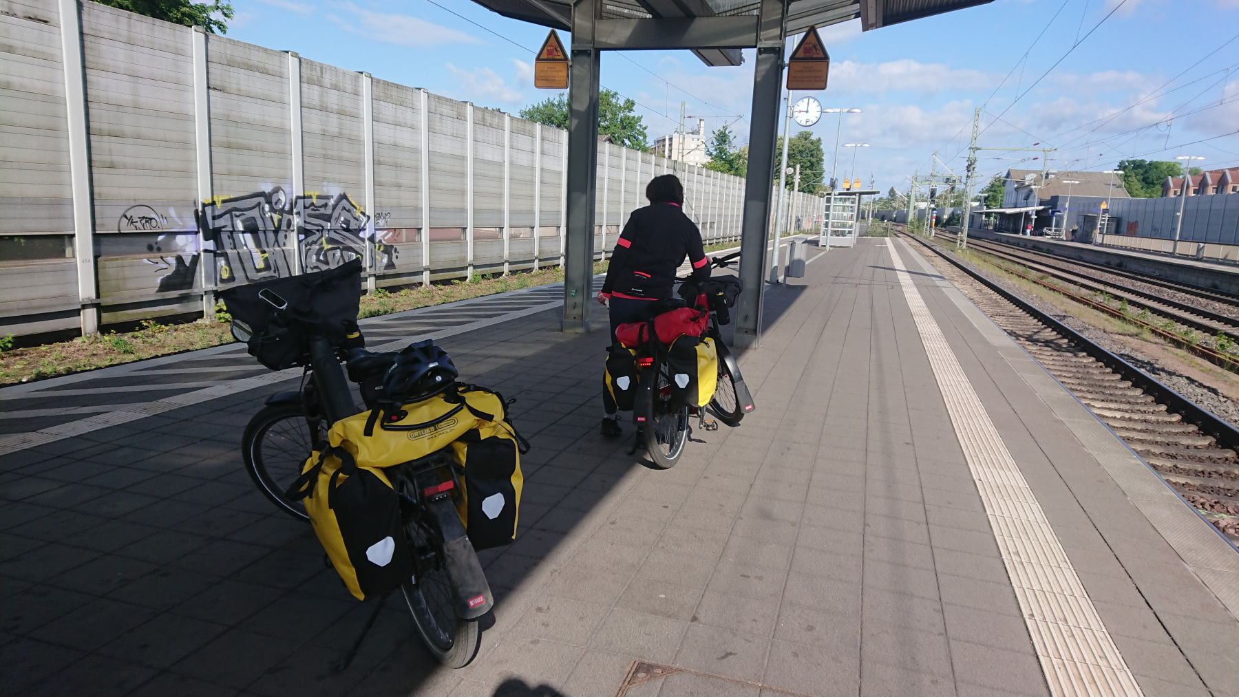 Eine knappe Stunde benötigen wir für die rund 20km bis zum Bahnhof, sind früh genug da und warten.