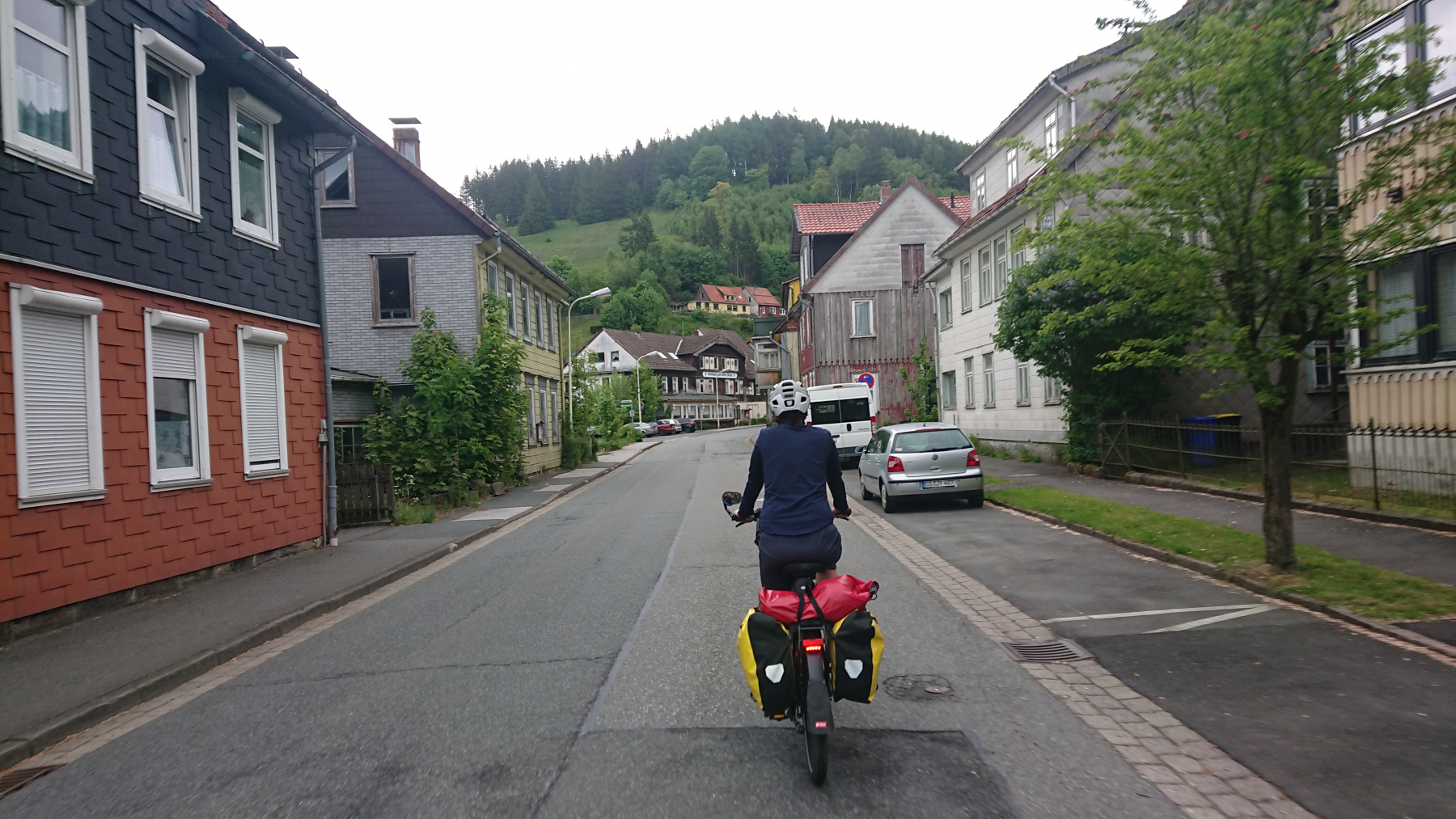 Unsere Unterkunft ist die Pension Brückner in Wildemann. Das Zimmer ist okay und sauber, wenn auch schon ein wenig älter. Leider können wir die zum Zimmer gehörende Terrasse nicht mehr nutzen, denn kurz nachdem wir angekommen sind, beginnt es zu regnen.