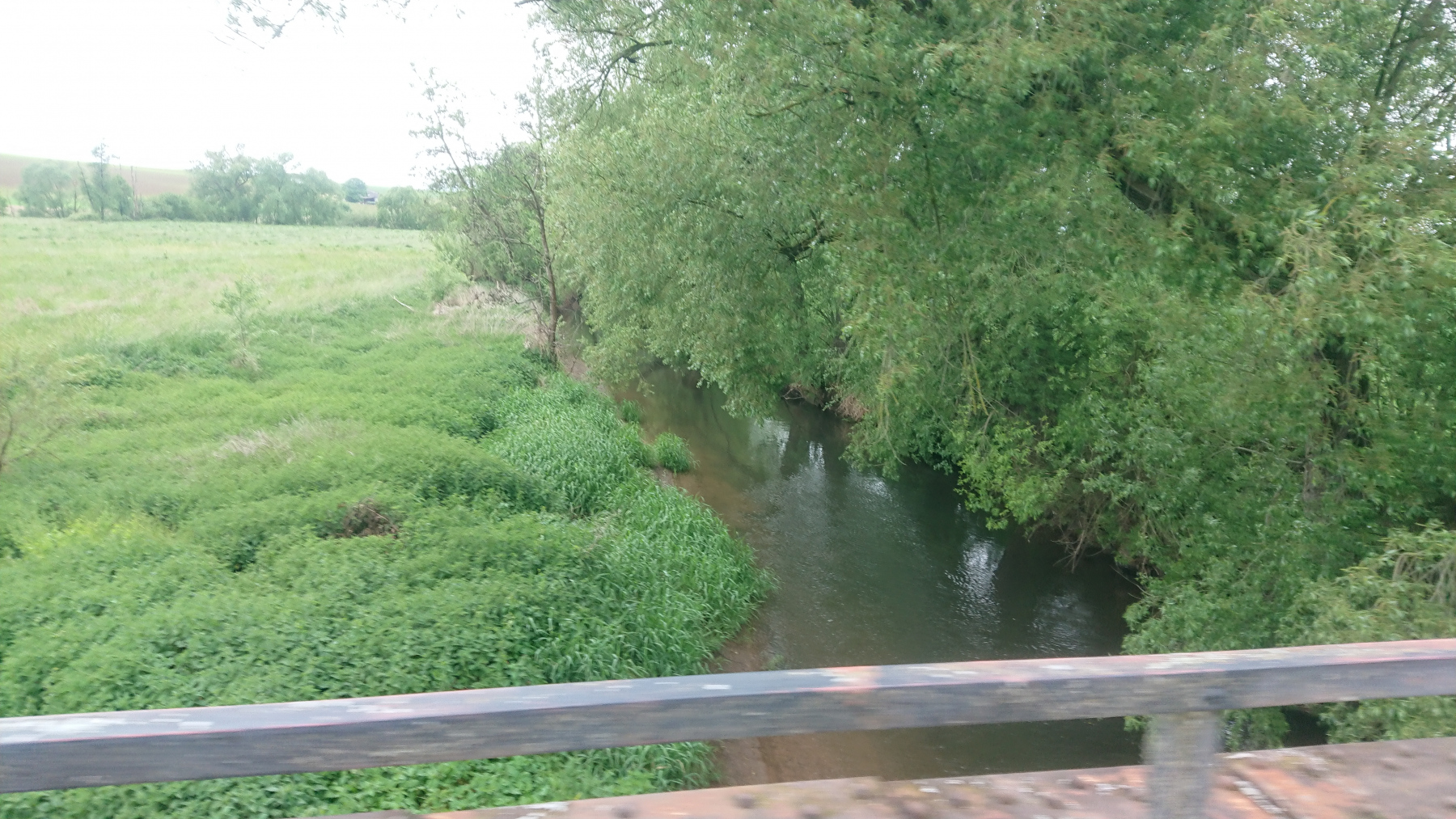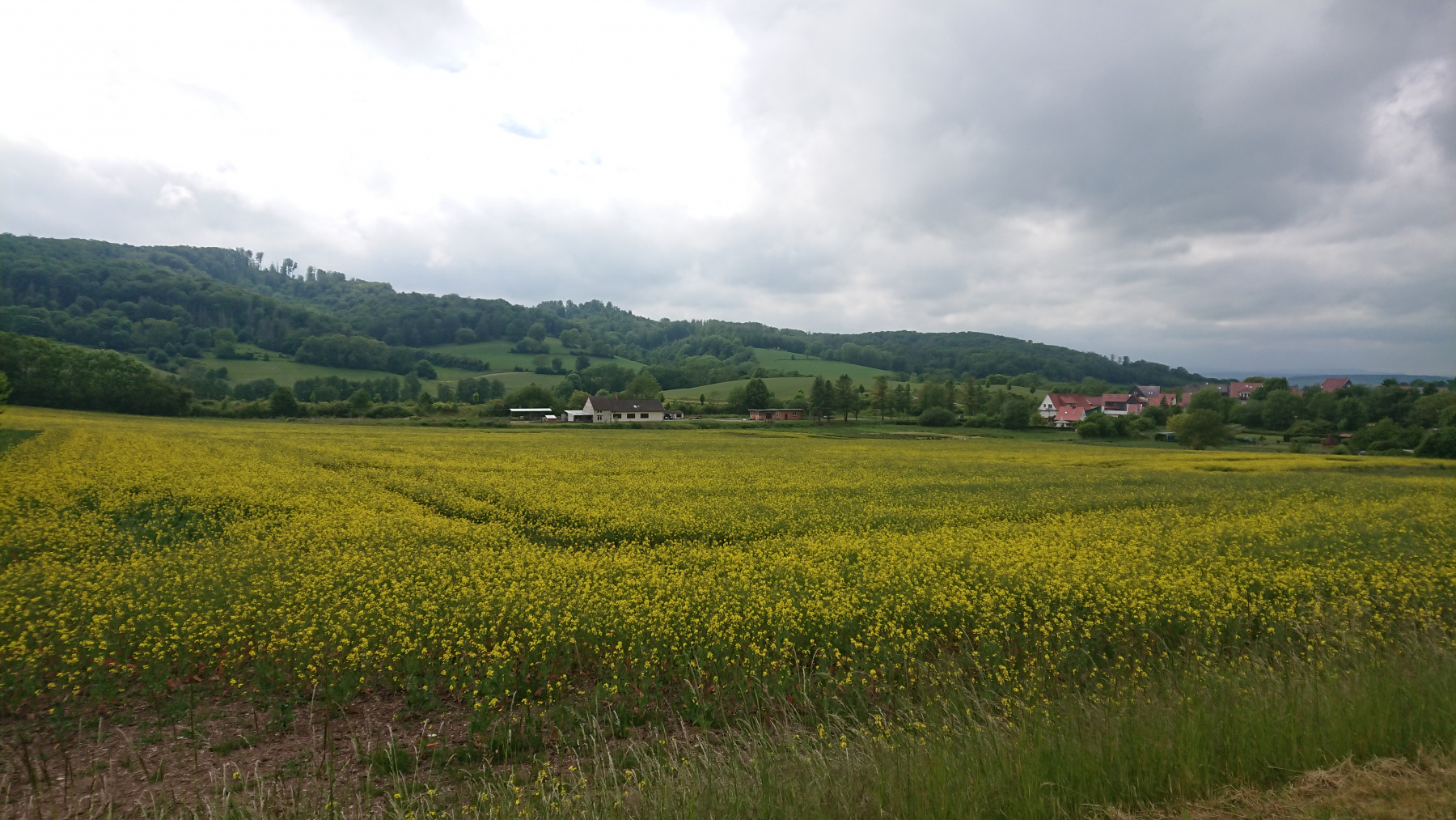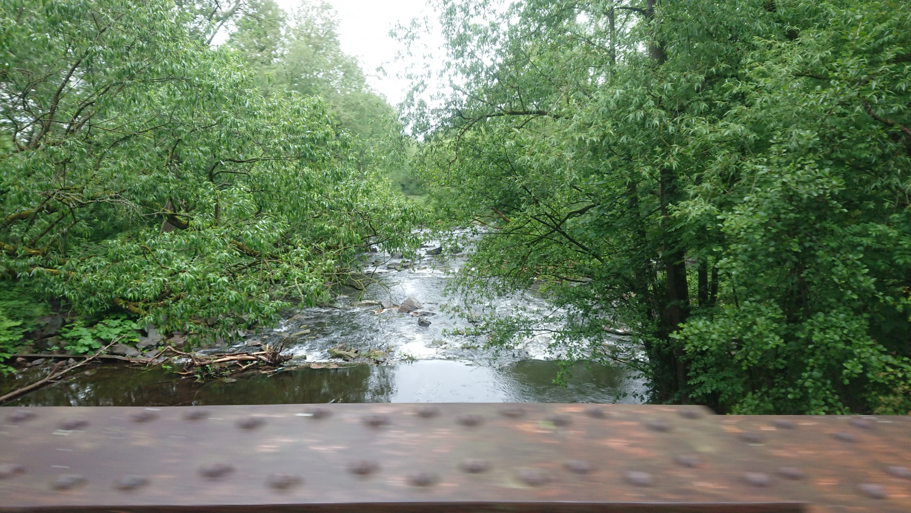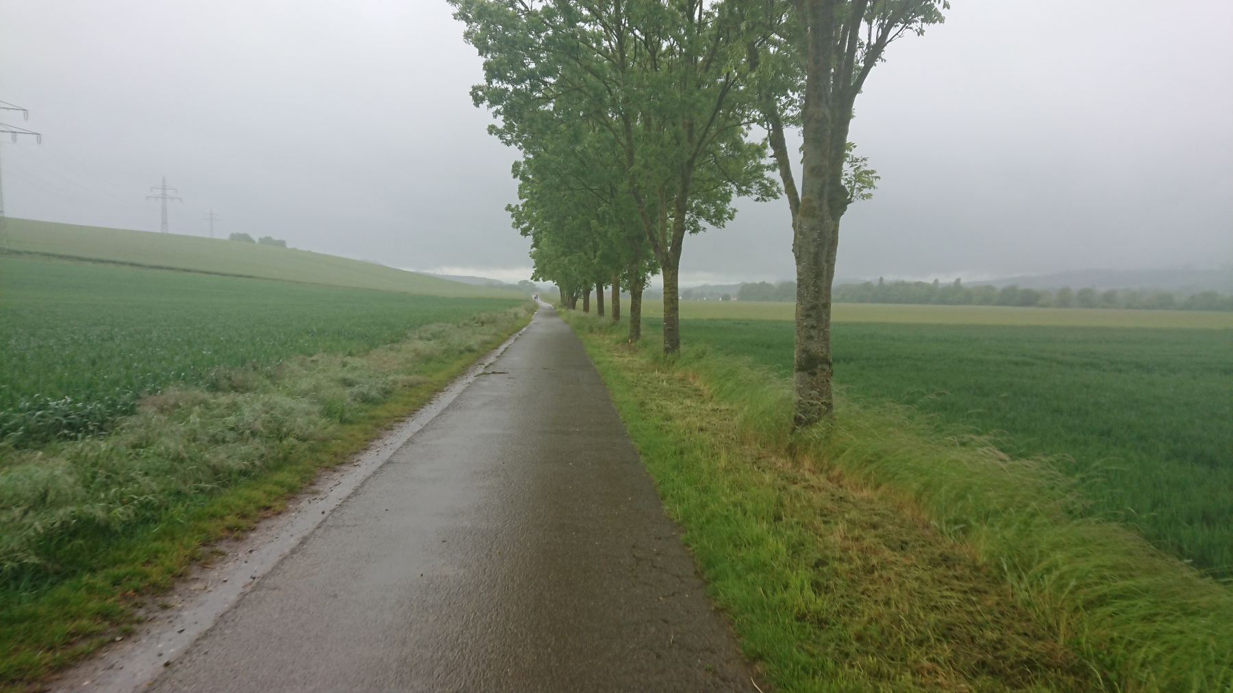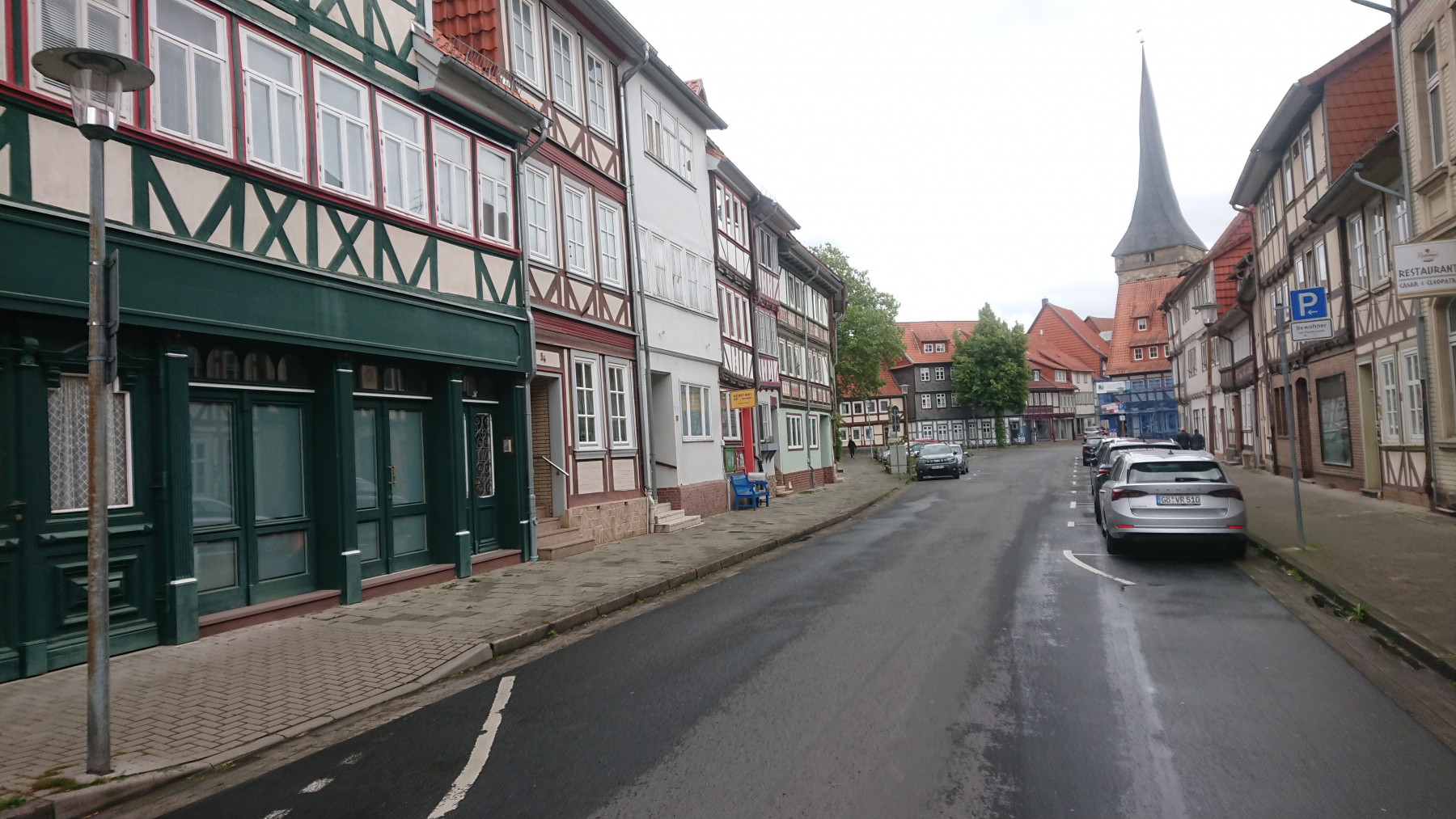 Durch Bad Grund und Windhausen fahren wir wieder aus dem Harz hinaus. Bergab bei Regen ist auch nicht grad toll. Man kann das Gefälle nicht in Geschwindigkeit umsetzen, sieht nur wenig, ständig läuft einem Wasser in die Augen und bremsen sollte man mit viel Gefühl.
