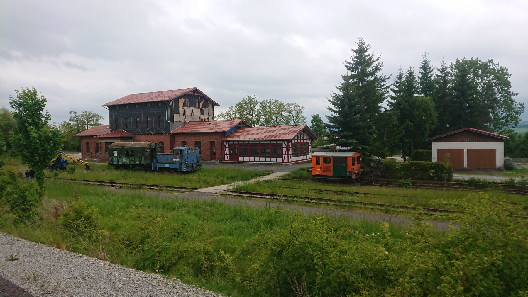Bei der Einfahrt nach Dingelstädt kommen wir am alten Bahnhof vorbei. Dort werden wir dann morgen in den Kanonenbahnradweg einbiegen.
