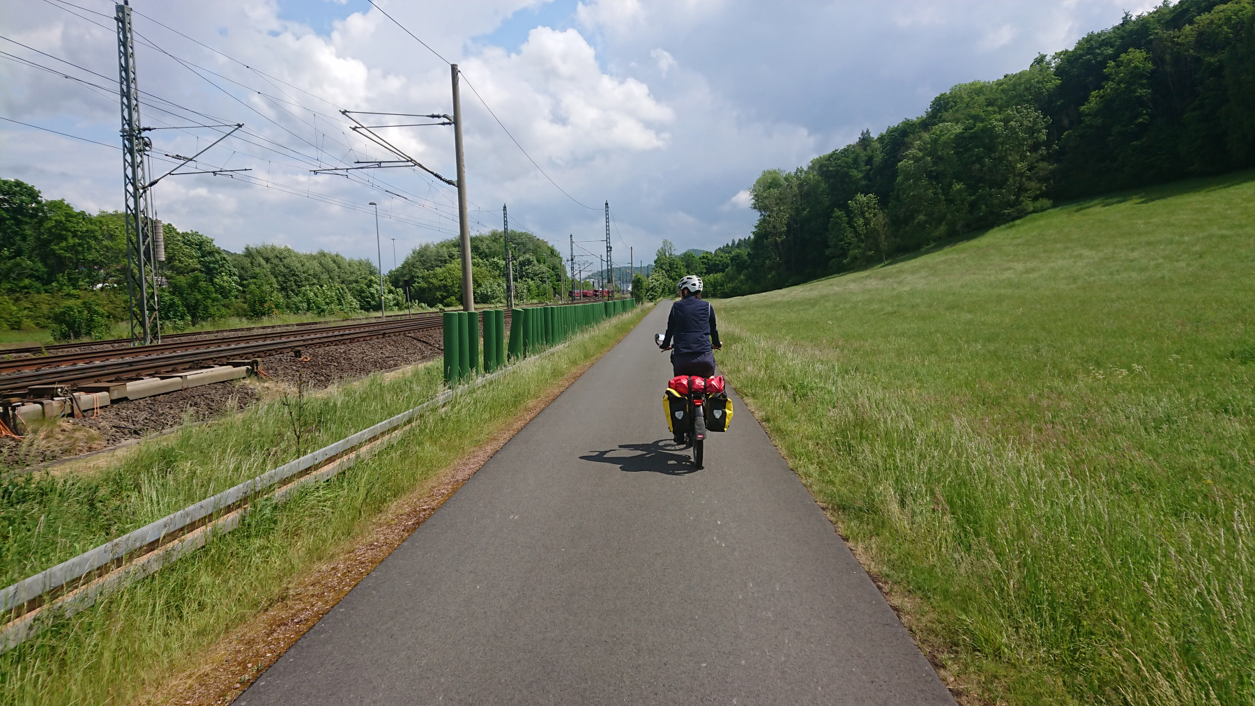 Und dann kommt bei Lengfeld unter dem Stein noch das Viadukt. Leider darf man das Tal nicht auf dem Viadukt überfahren sondern muss vorher von der Bahntrasse runter ins Tal und dann auf der anderen Seite wieder hinauf auf die Trasse.