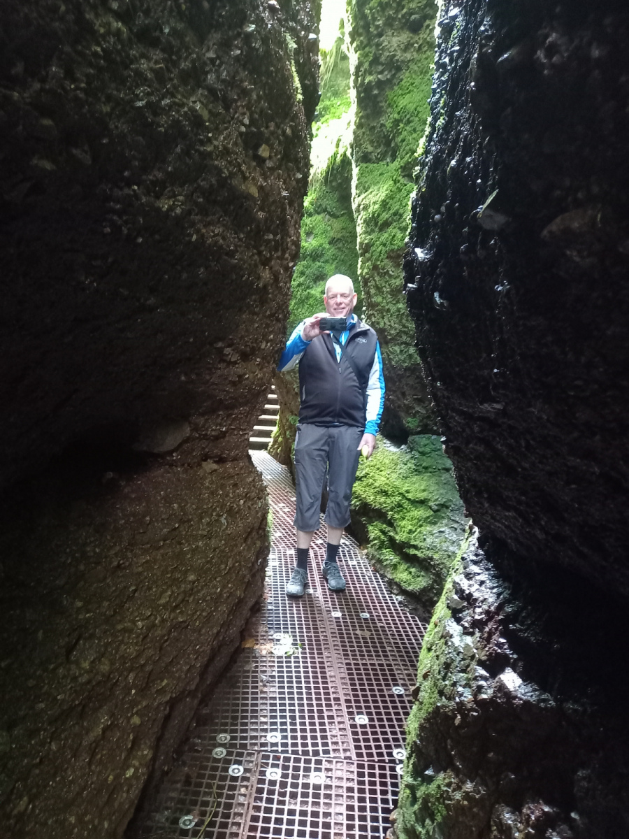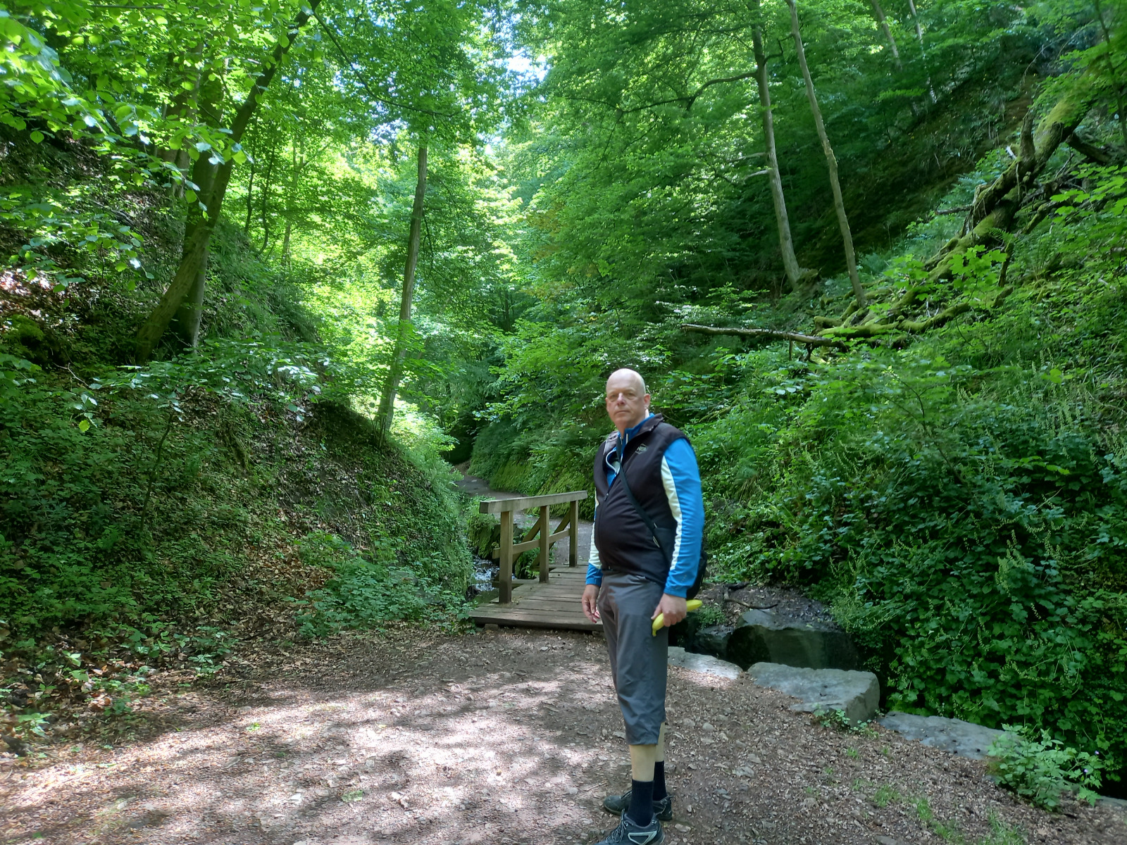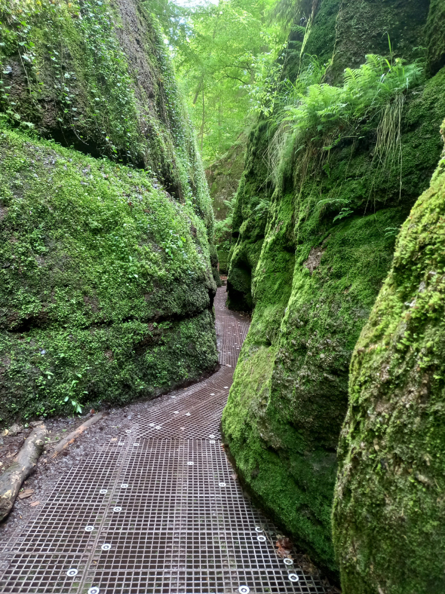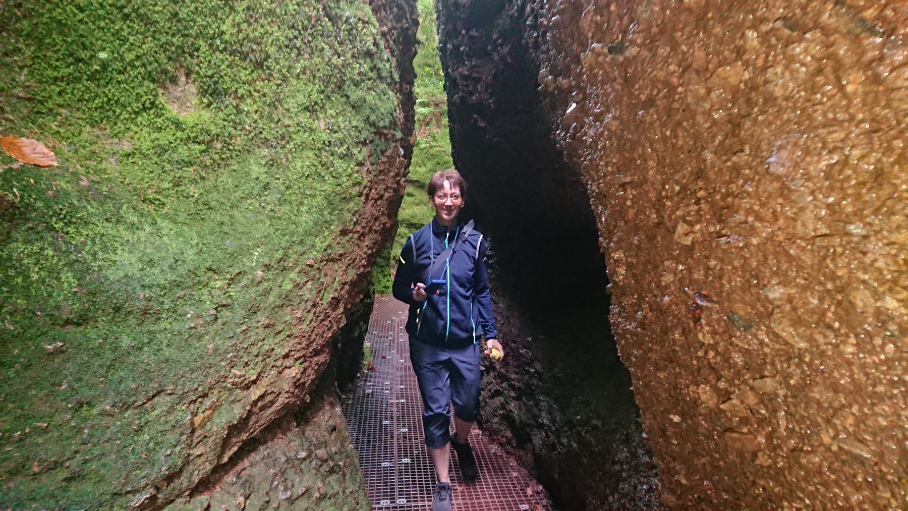 Eisenach ist schnell erreicht, wir durchqueren die Stadt und fahren rauf zur Drachenschlucht, die wir zunächst verpassen. Auf der B19 ist derart viel Verkehr und es gibt keinen Radweg, so dass die Strecke auch einem Selbstmord gleichkommt. Irgendwann kehren wir um, finden den Eingang zur Schlucht, stellen die Räder ab und gehen zu Fuß weiter.