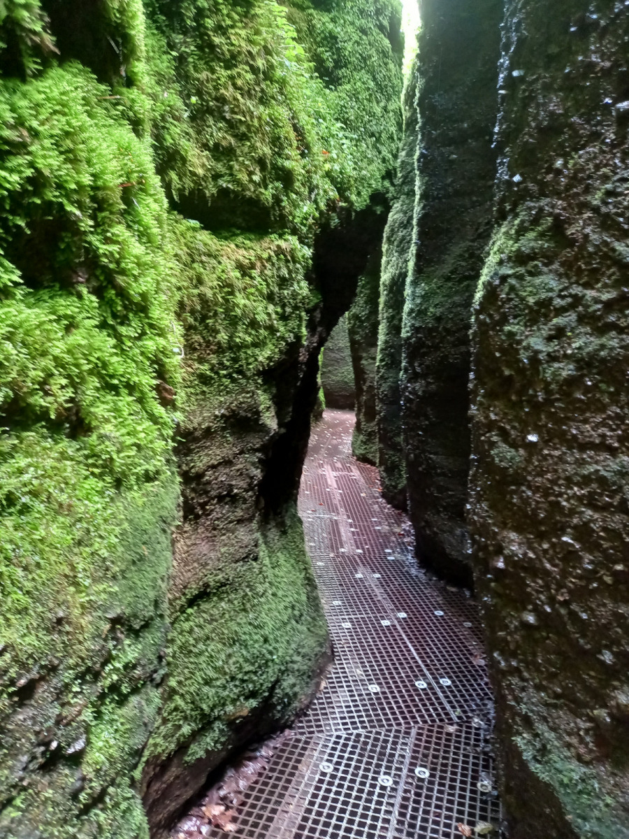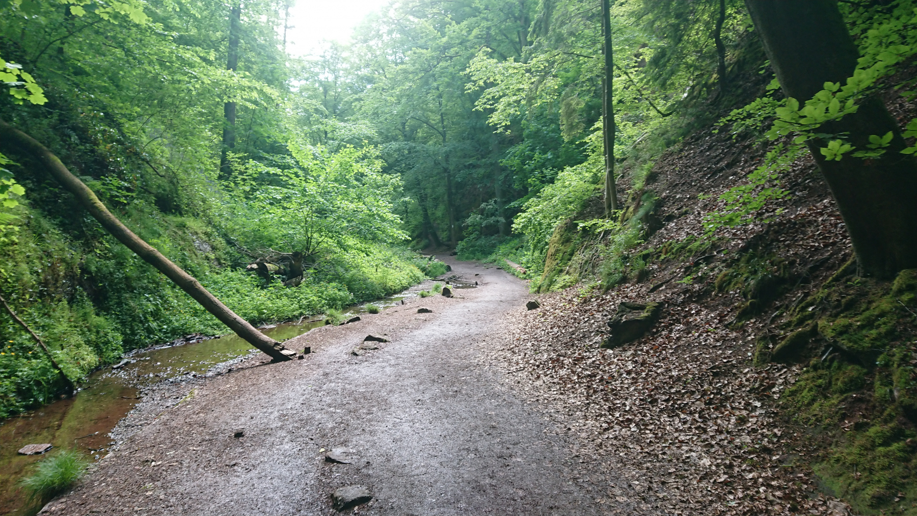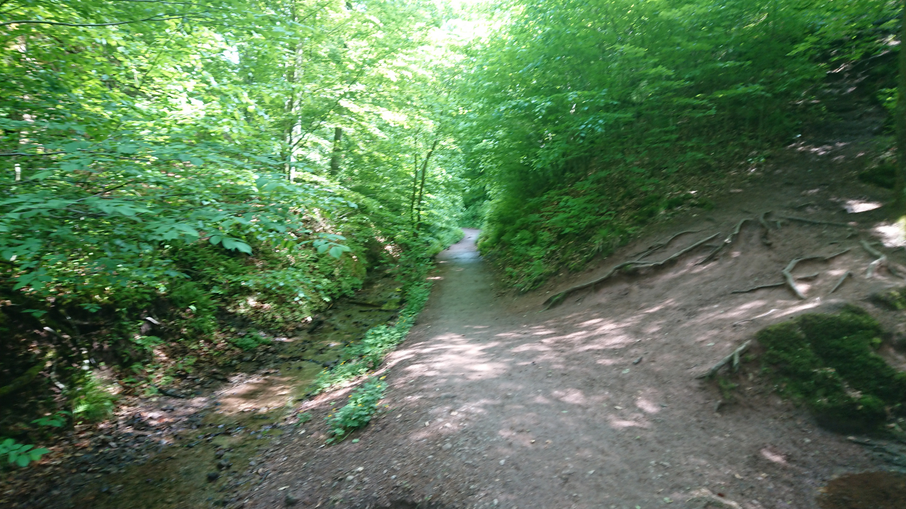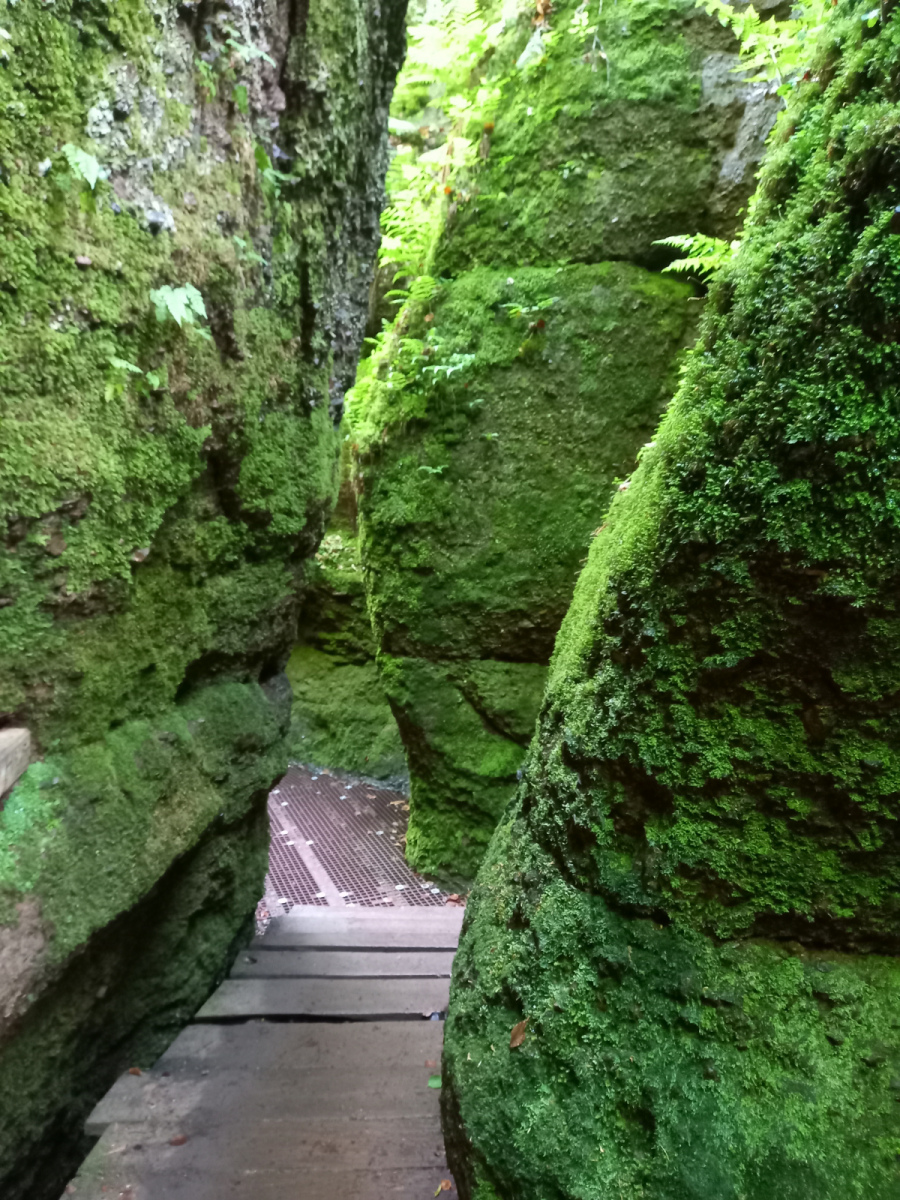 Eisenach ist schnell erreicht, wir durchqueren die Stadt und fahren rauf zur Drachenschlucht, die wir zunächst verpassen. Auf der B19 ist derart viel Verkehr und es gibt keinen Radweg, so dass die Strecke auch einem Selbstmord gleichkommt. Irgendwann kehren wir um, finden den Eingang zur Schlucht, stellen die Räder ab und gehen zu Fuß weiter.