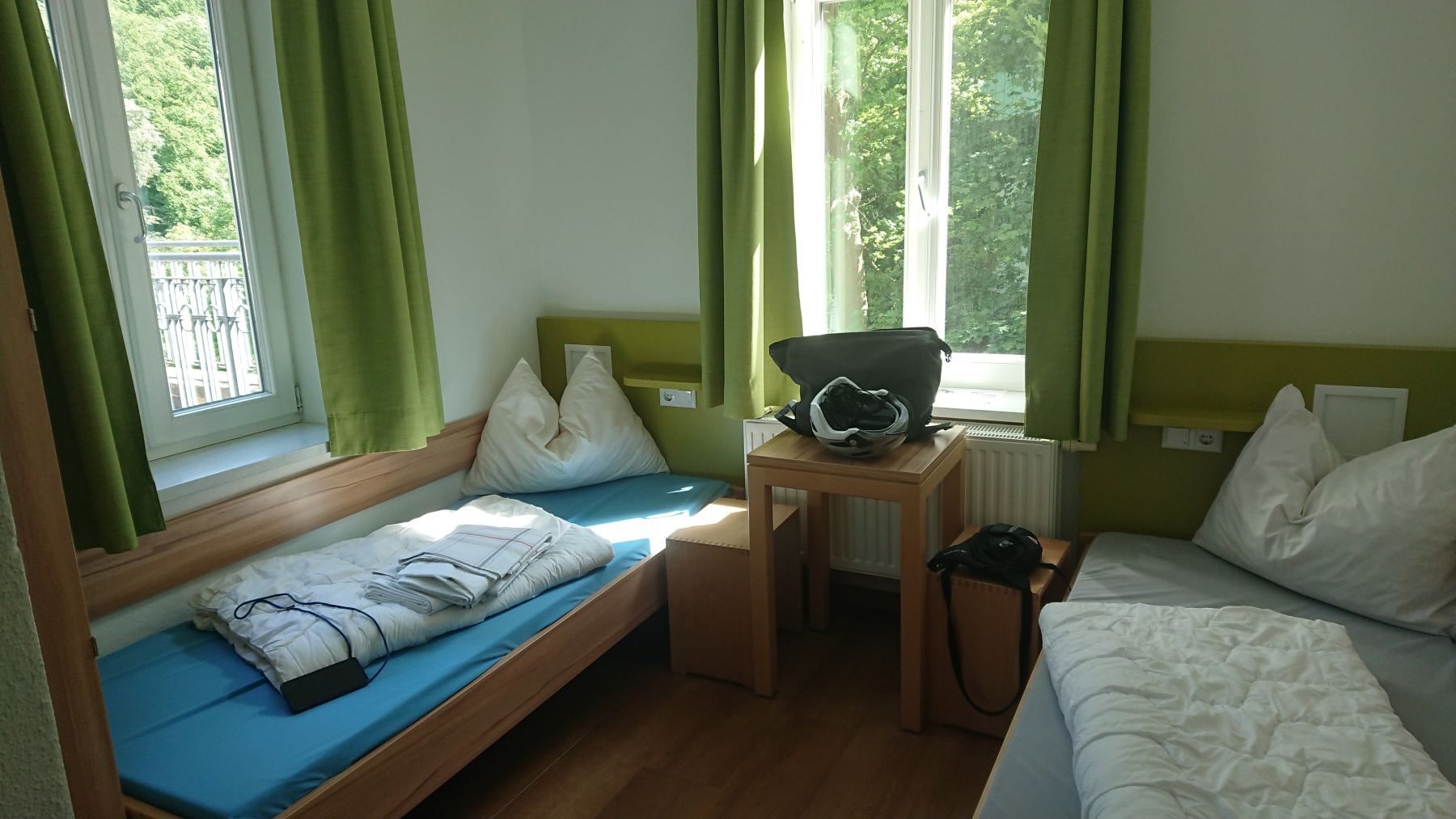 Für uns heißt es daher zurück zur Jugendherberge. Leider die wohl schlechteste Unterkunft auf dieser Tour. Das Haus ist alt, das Zimmer klein aber zumindest sauber, Aufenthaltsräume de fakto nicht vorhanden, das WLAN schlecht und immer wieder unterbrochen – und der Preis hoch. Wir haben ein Abendessen mitgebucht, was sich als lieblos aufgetischte Nudeln mit einer geschmacksneutralen Tomatensoße entpuppt. Das können andere Jungendherbergen deutlich besser (Köln 2024).