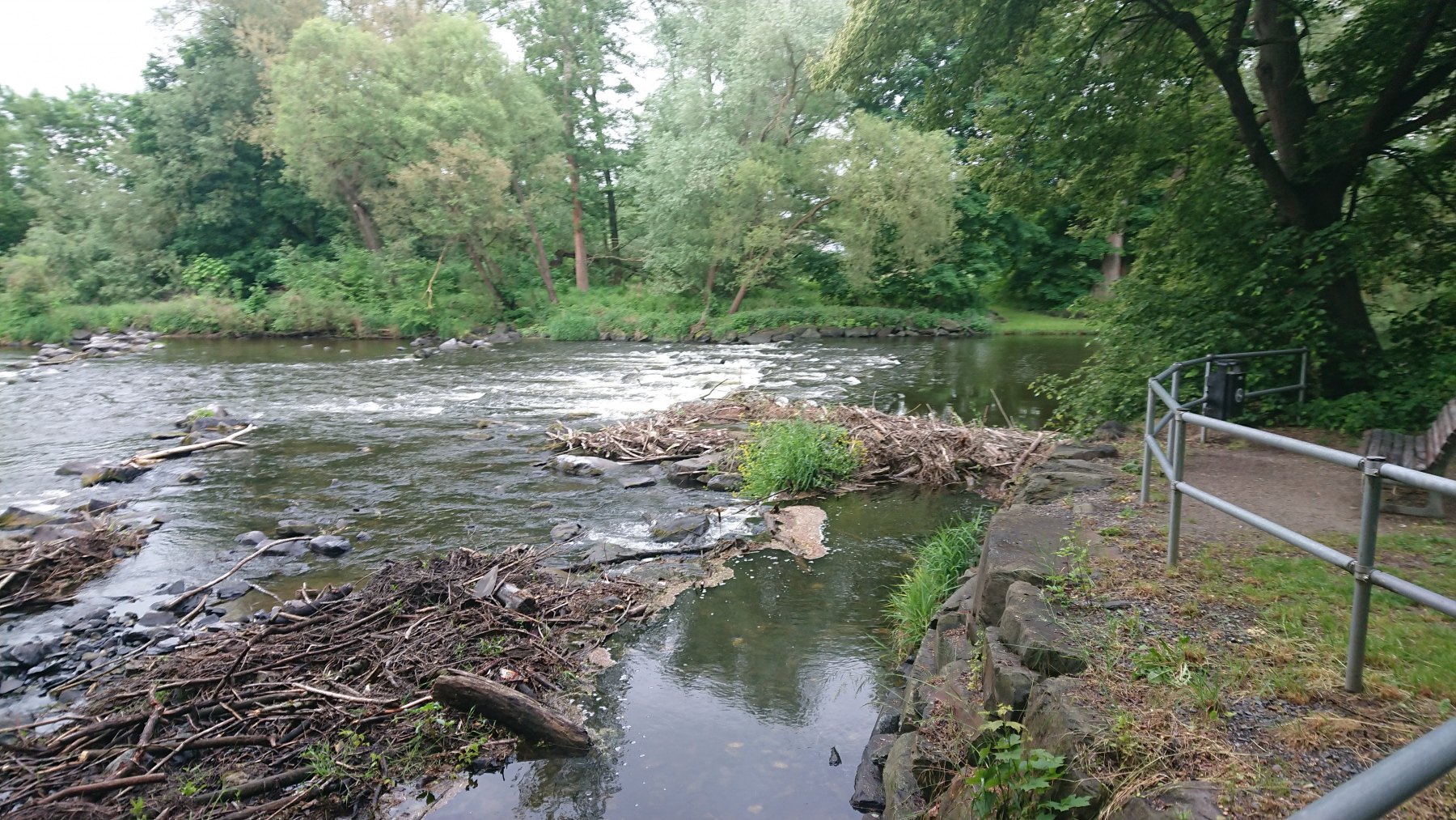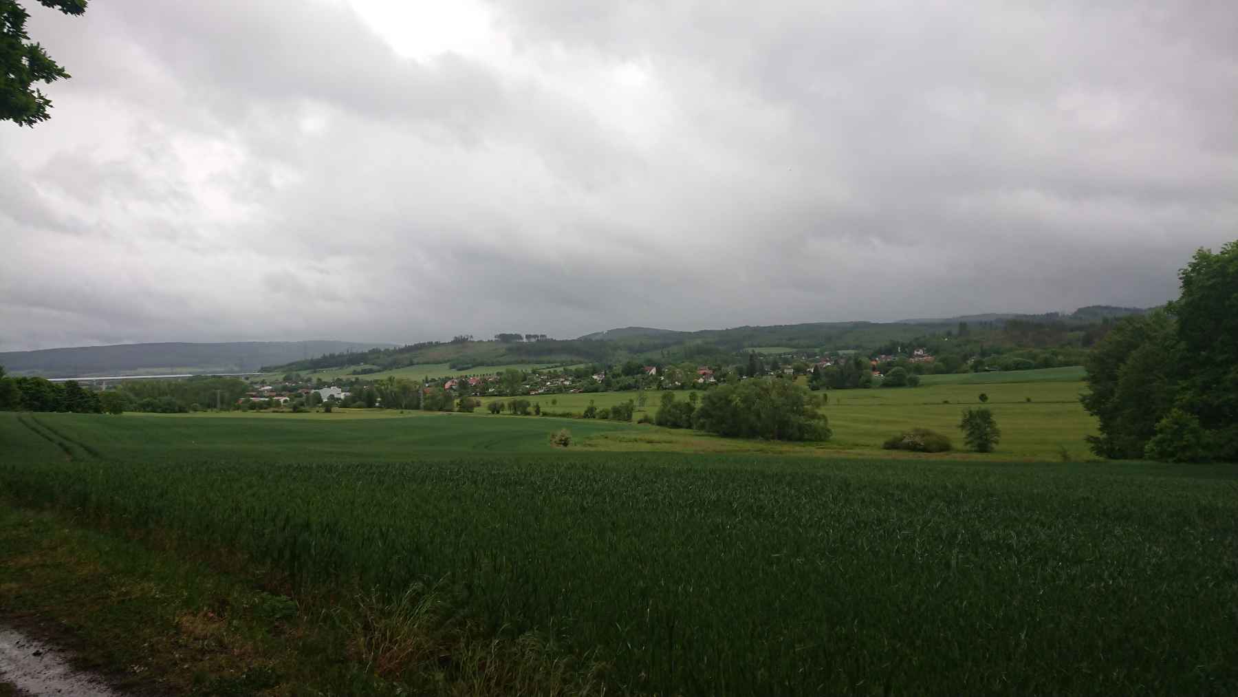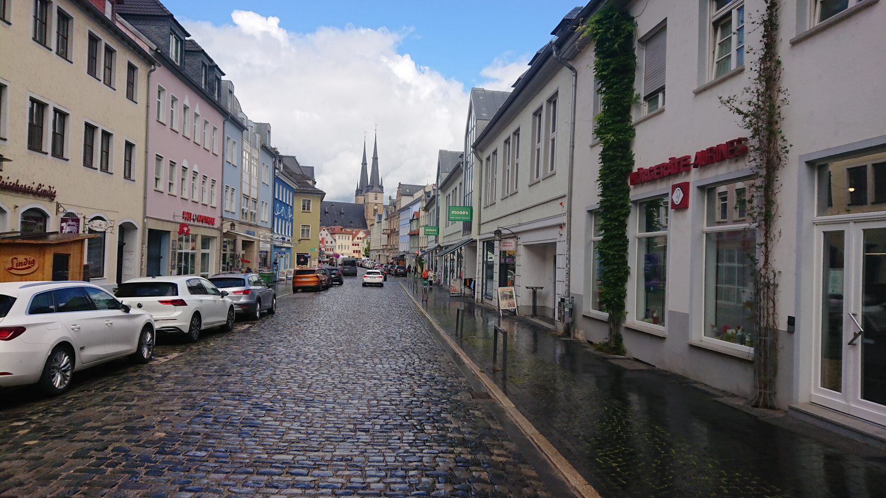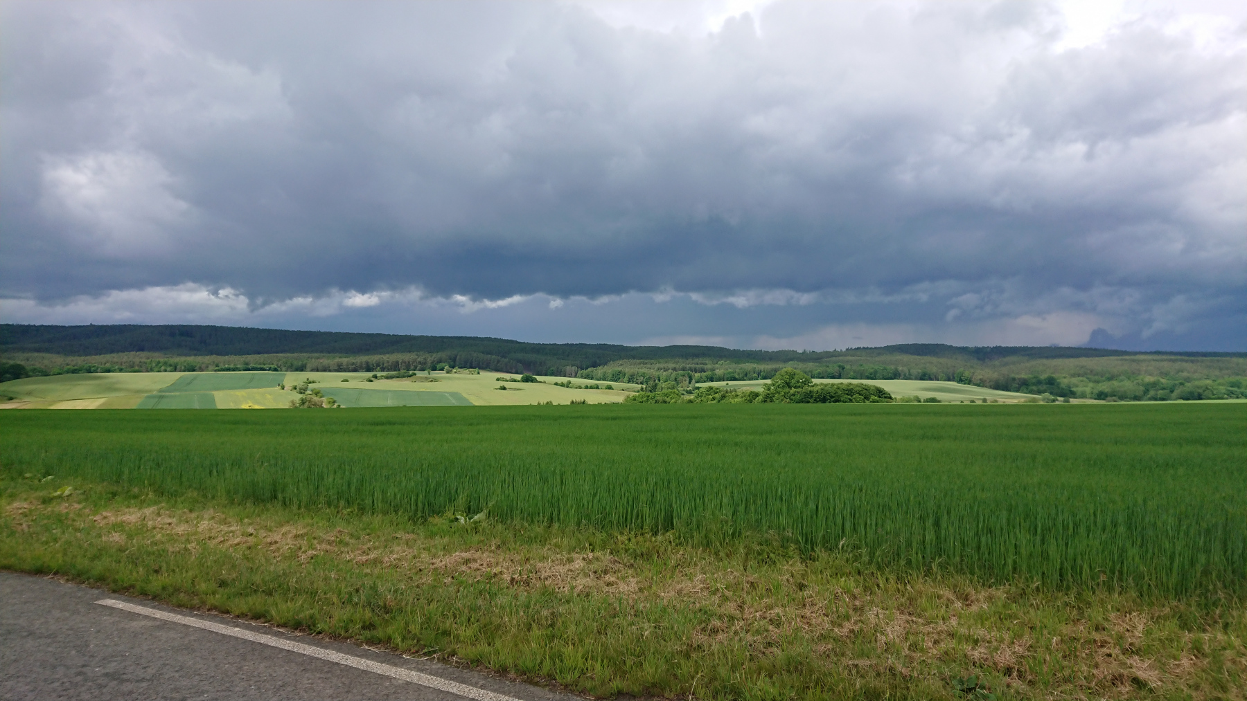 In Pößneck fallen die ersten Tropen, in Neustadt müssen wir uns unterstellen, nun geht es nur mit Regenjacke weiter. Aber die Hosen sind nass. Noch mehrmals müssen wir uns unterstellen, um dann in den Regenpausen weiter zu fahren und vom nächsten Schauer wieder in einen Unterstand gescheucht zu werden – klar, es ist nicht immer sofort eine Möglichkeit zum Unterstellen vorhanden.