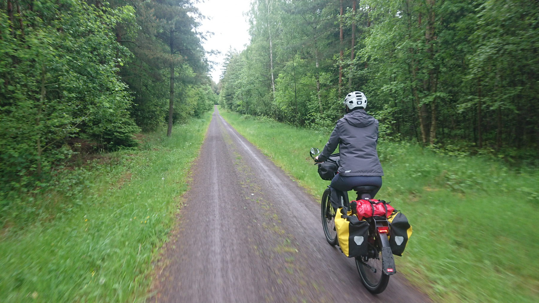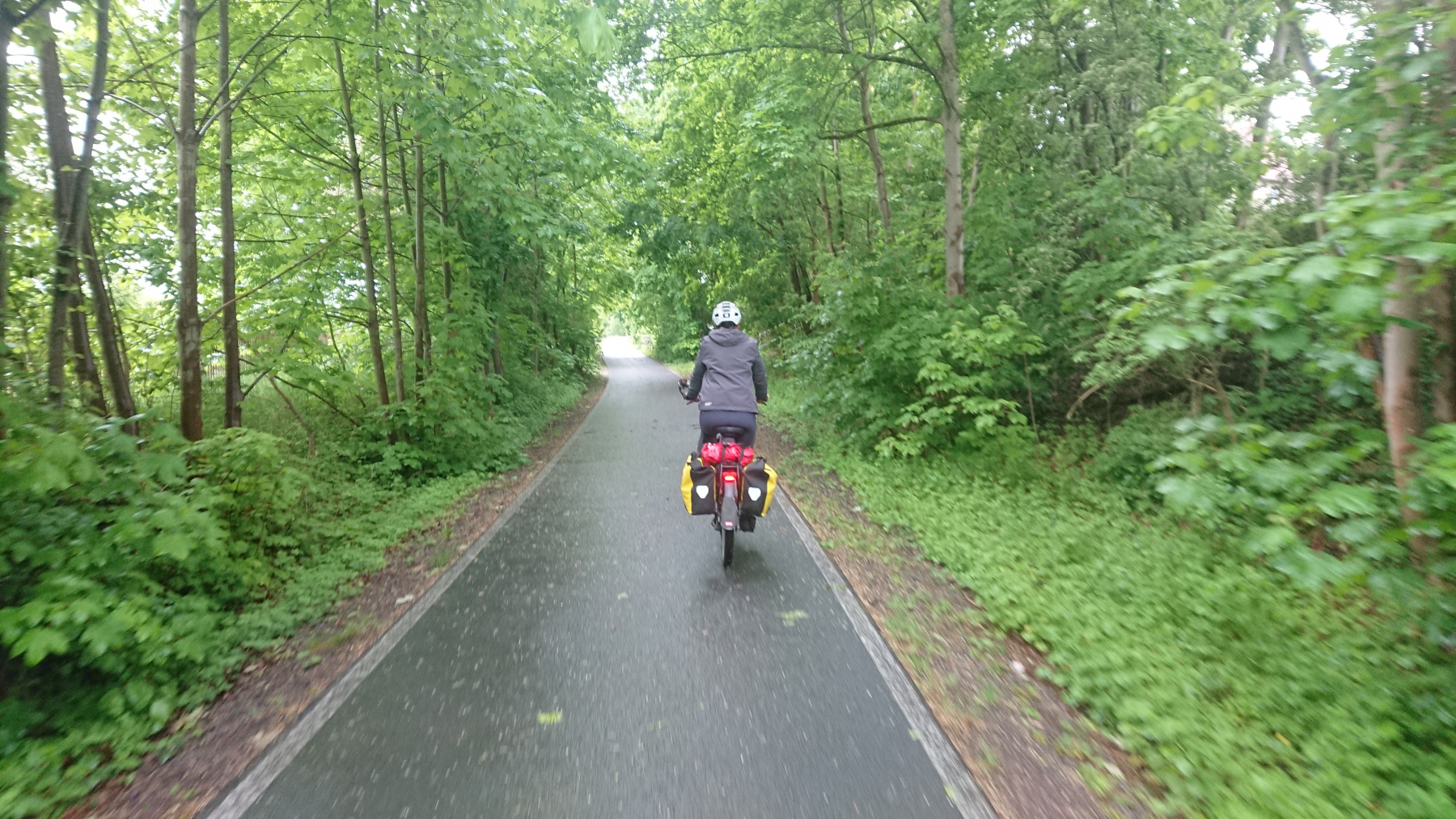 Es ist grau und regnet hin und wieder auch mal leicht. Zu wenig um mit vollem Regenschutz zu fahren, zu viel, um auf ihn verzichten zu können.