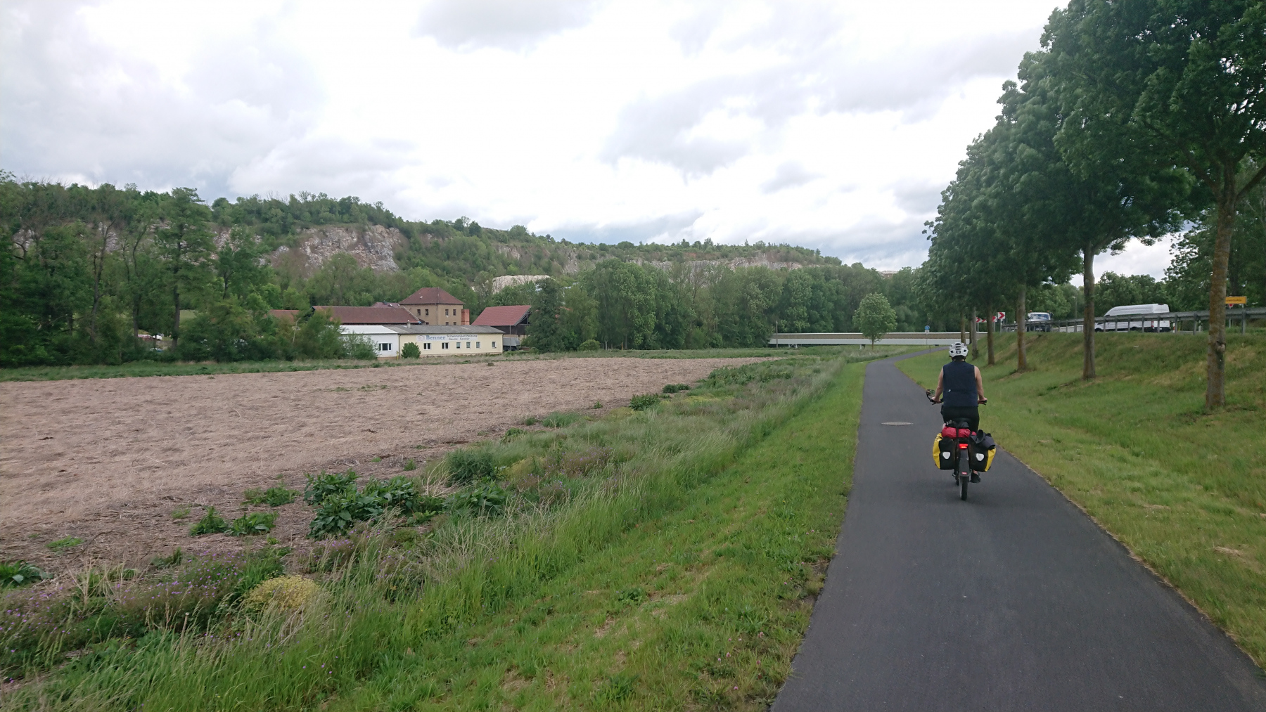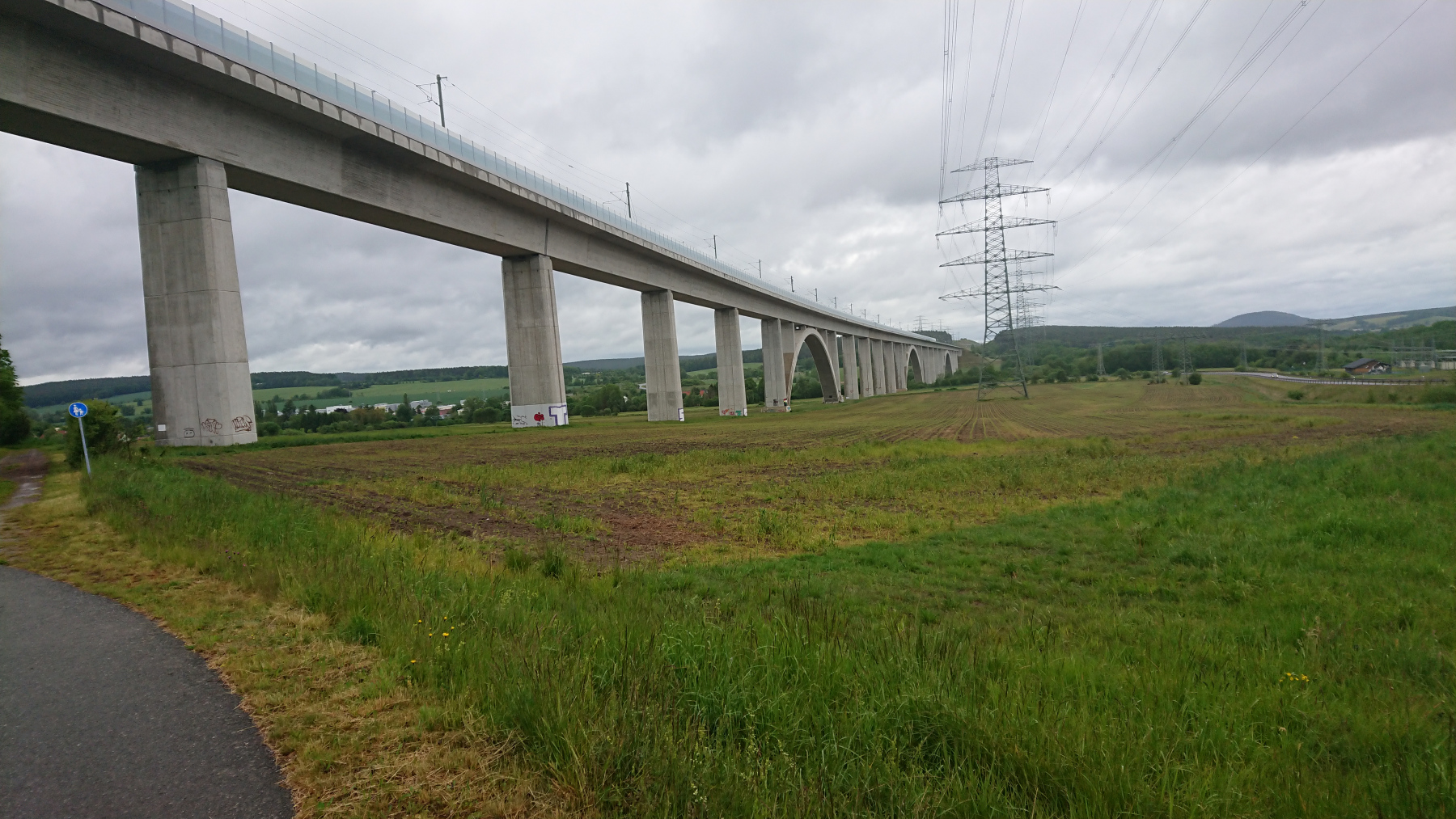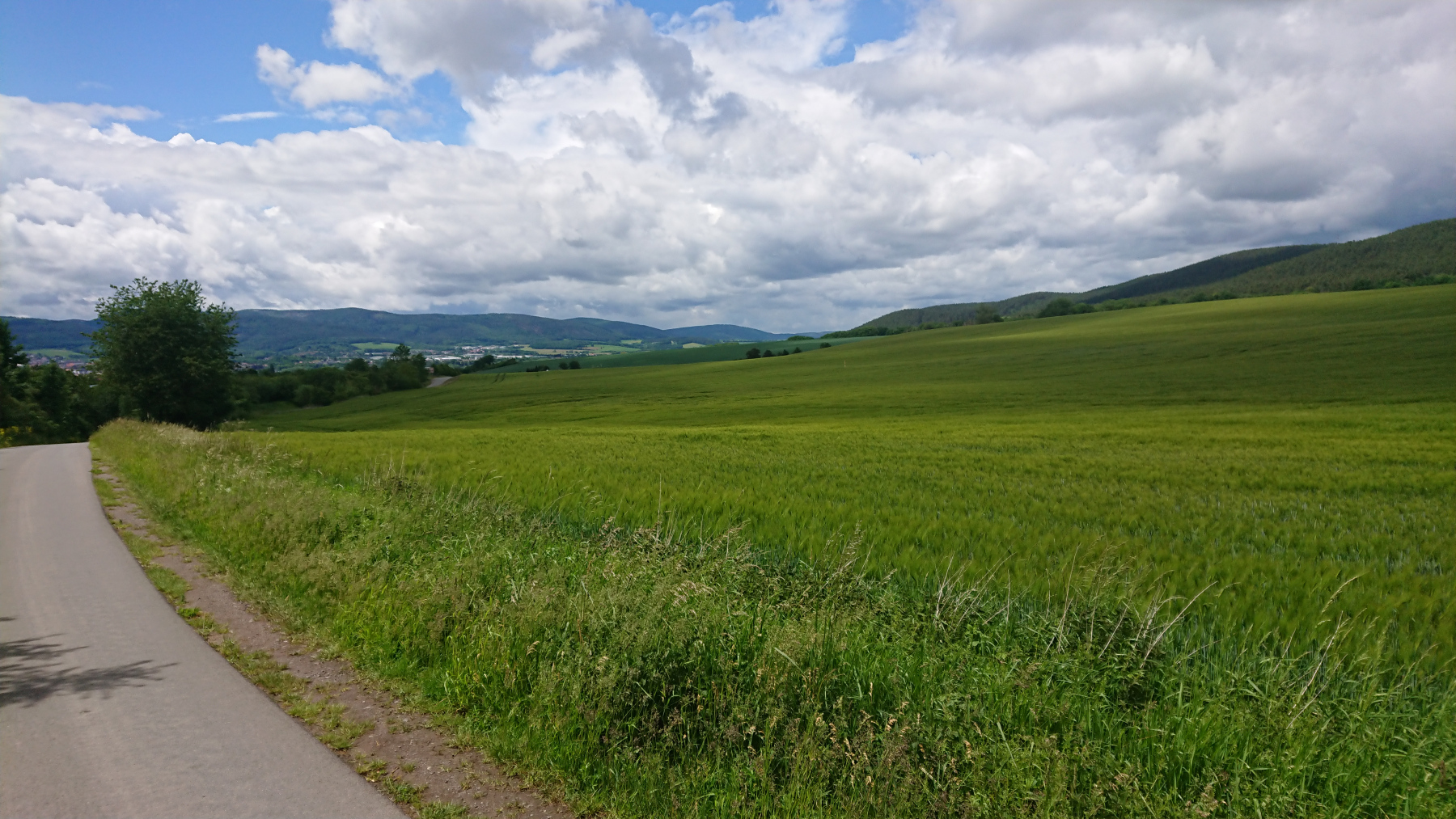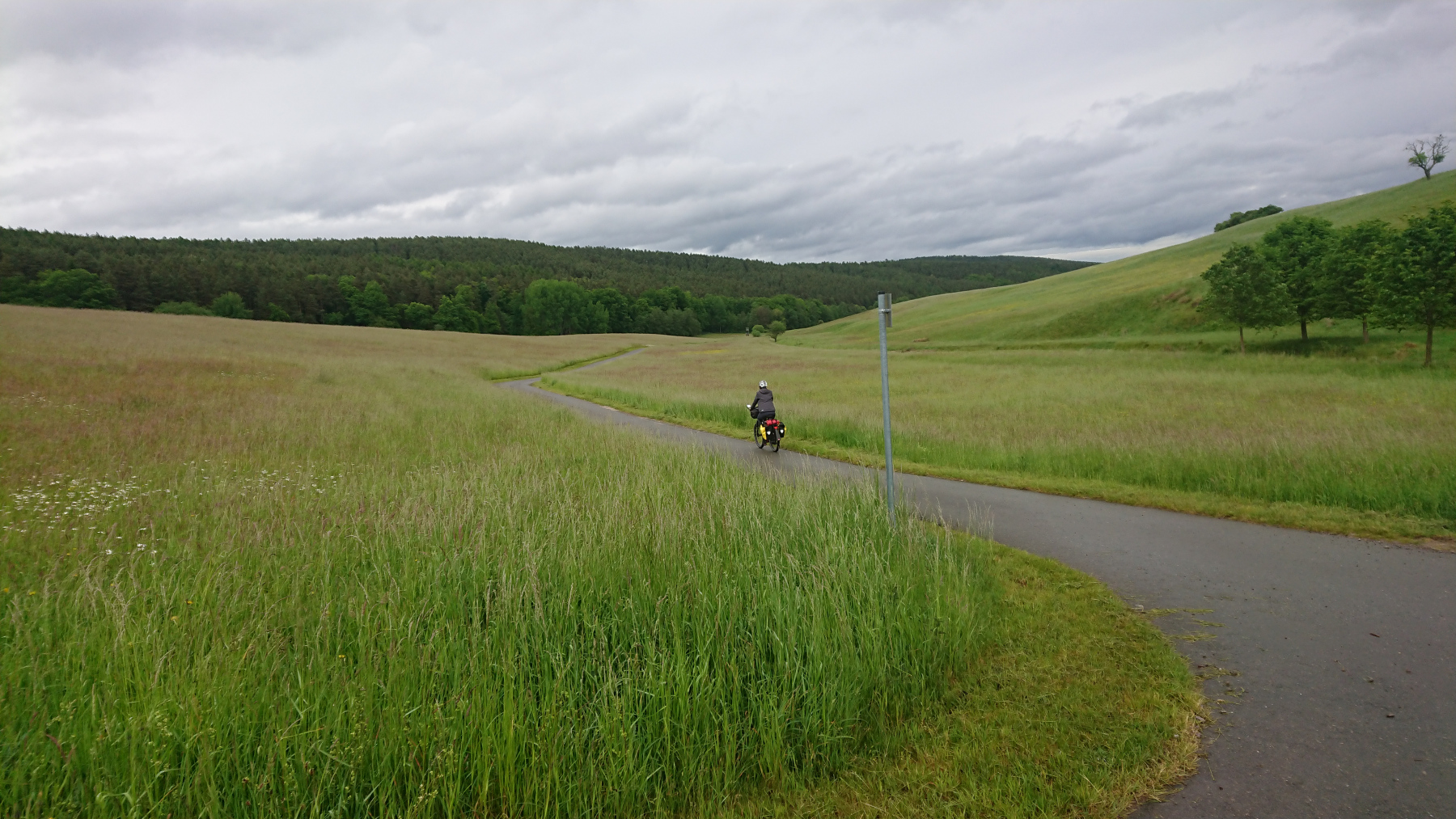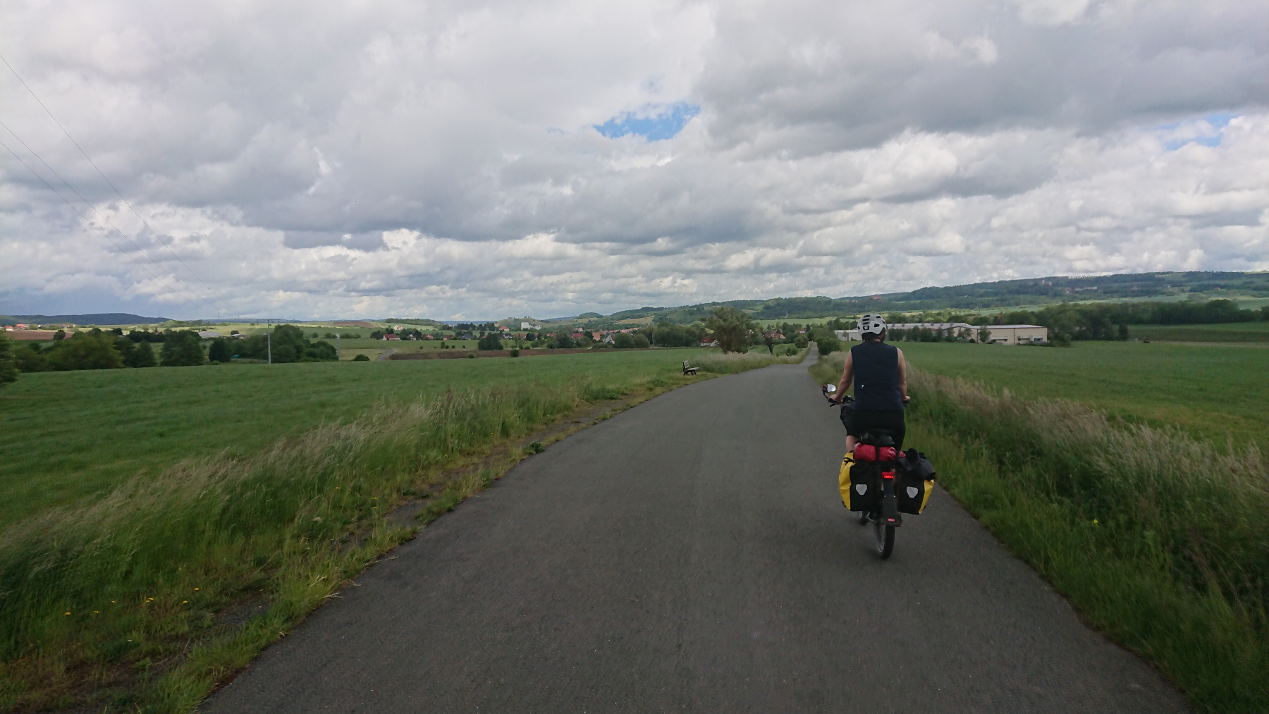 Die Waldrandroute verläuft zunächst auf einem alten Bahndamm – sehr angenehm zu fahren – oder auf kleinen Nebenstraßen ohne viel Verkehr. Und überwiegend geht es bis Saalfeld bergab von 500 runter auf etwa 200 m NN.