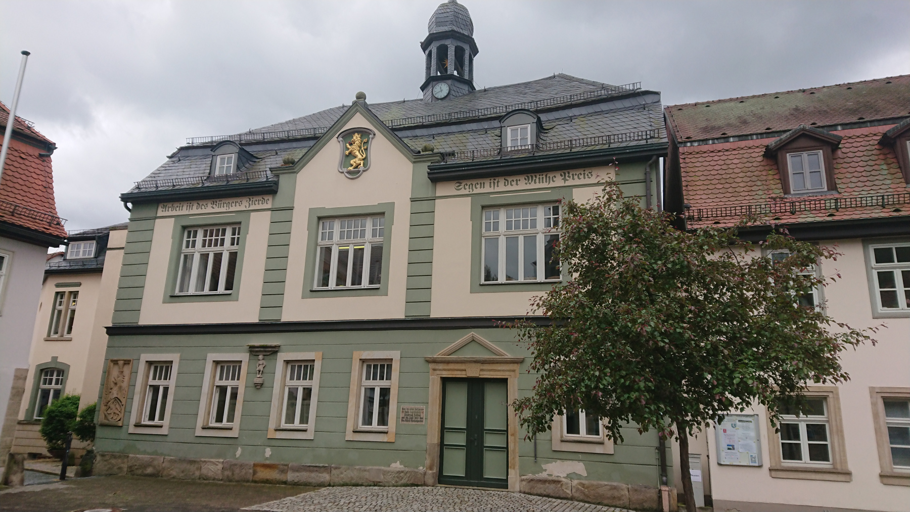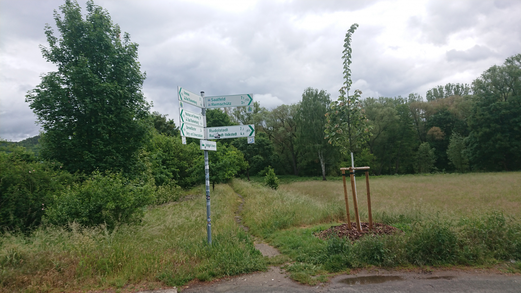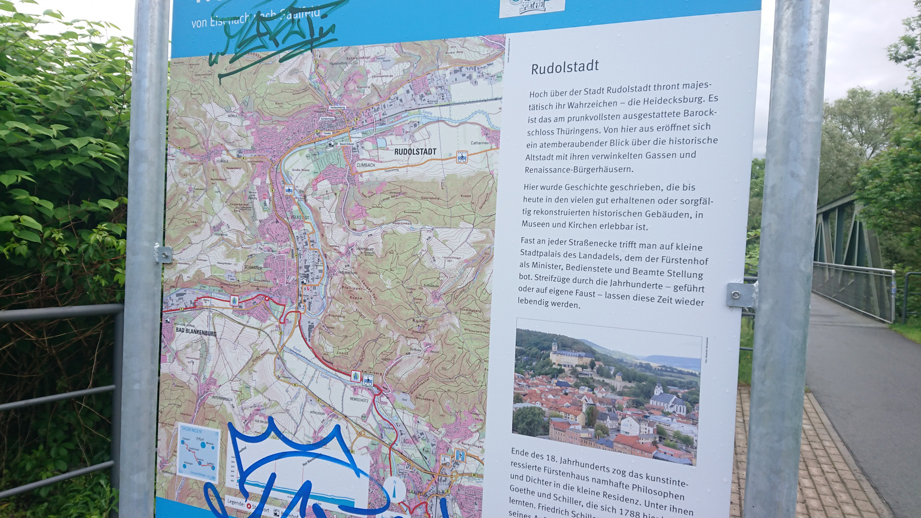 In Bad Blankenburg dann der erste Stop. Banane essen, damit es bis zum Mittagessen in Saalfeld reicht.