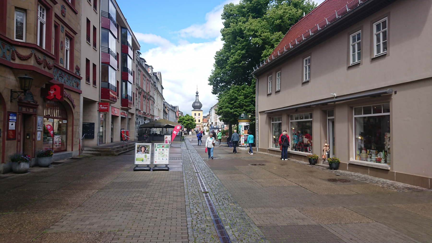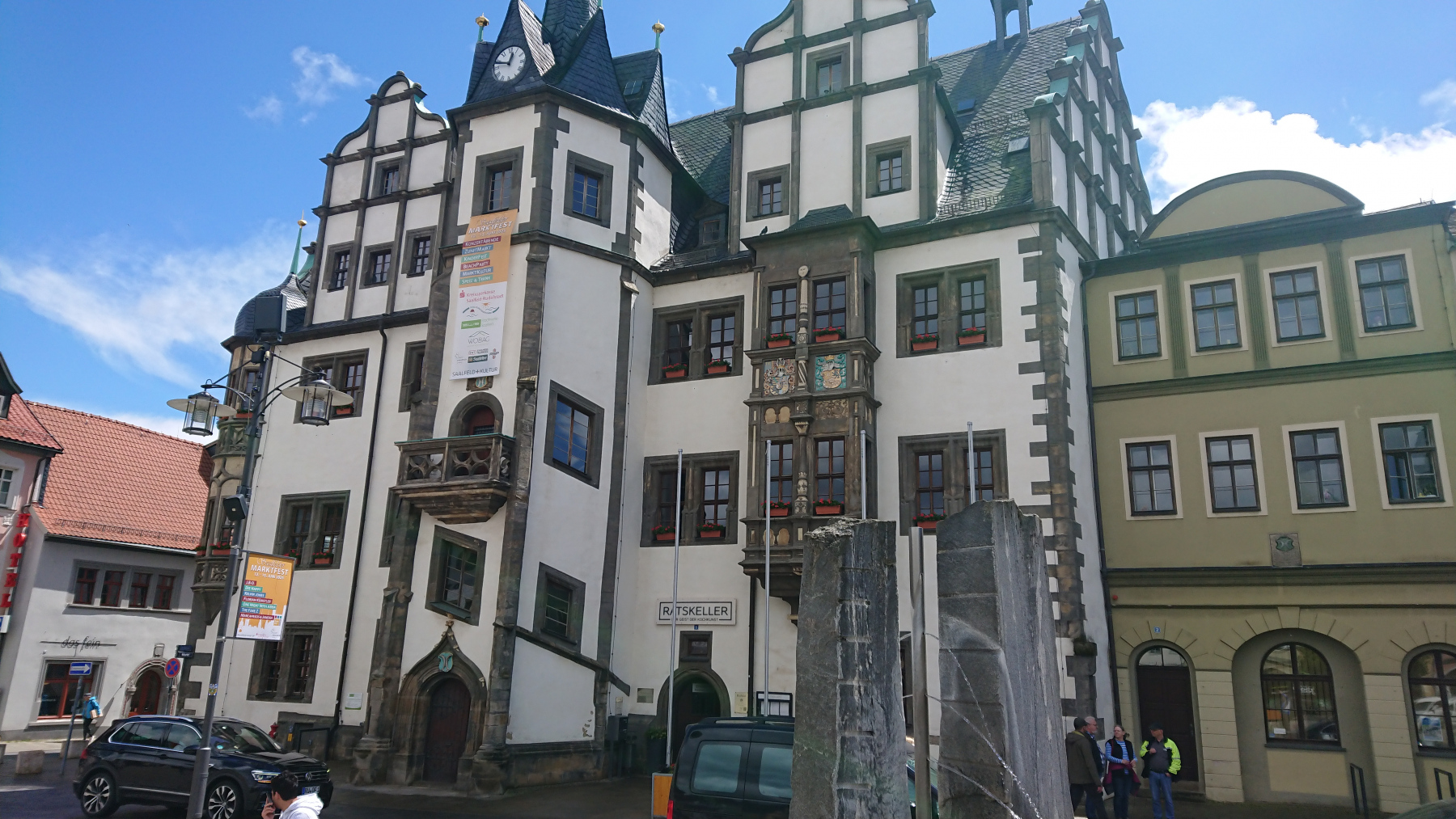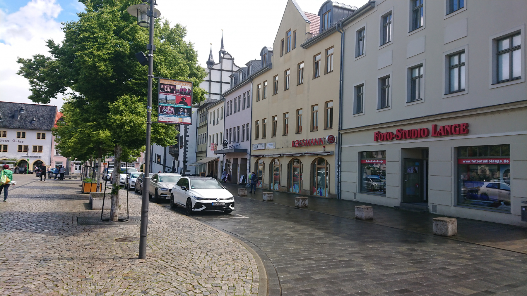 Und in Saalfeld kommt dann auch endlich die Sonne raus und es wird richtig schön. Mittagessen in einer Schlachterei am Markt, aber viele Gerichte sind schon um kurz nach 12:00 Uhr ausverkauft.