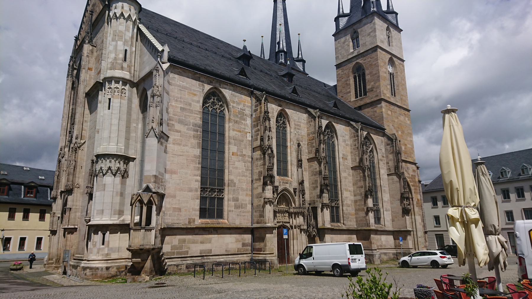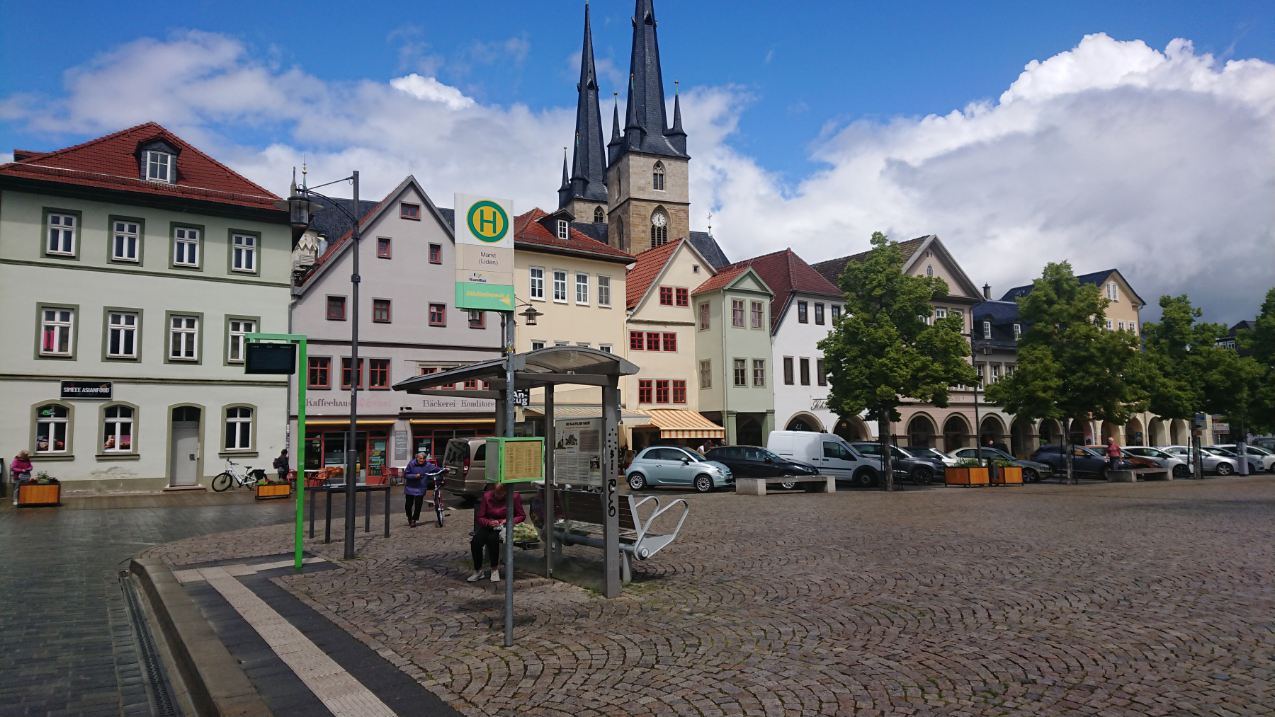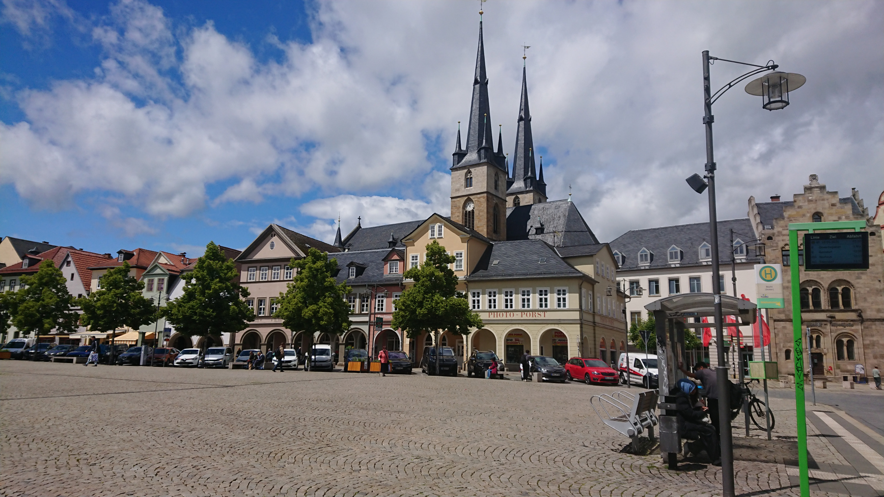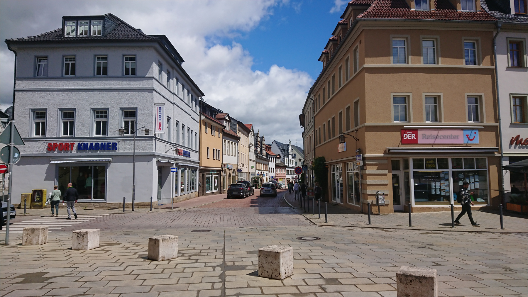 Und in Saalfeld kommt dann auch endlich die Sonne raus und es wird richtig schön. Mittagessen in einer Schlachterei am Markt, aber viele Gerichte sind schon um kurz nach 12:00 Uhr ausverkauft.