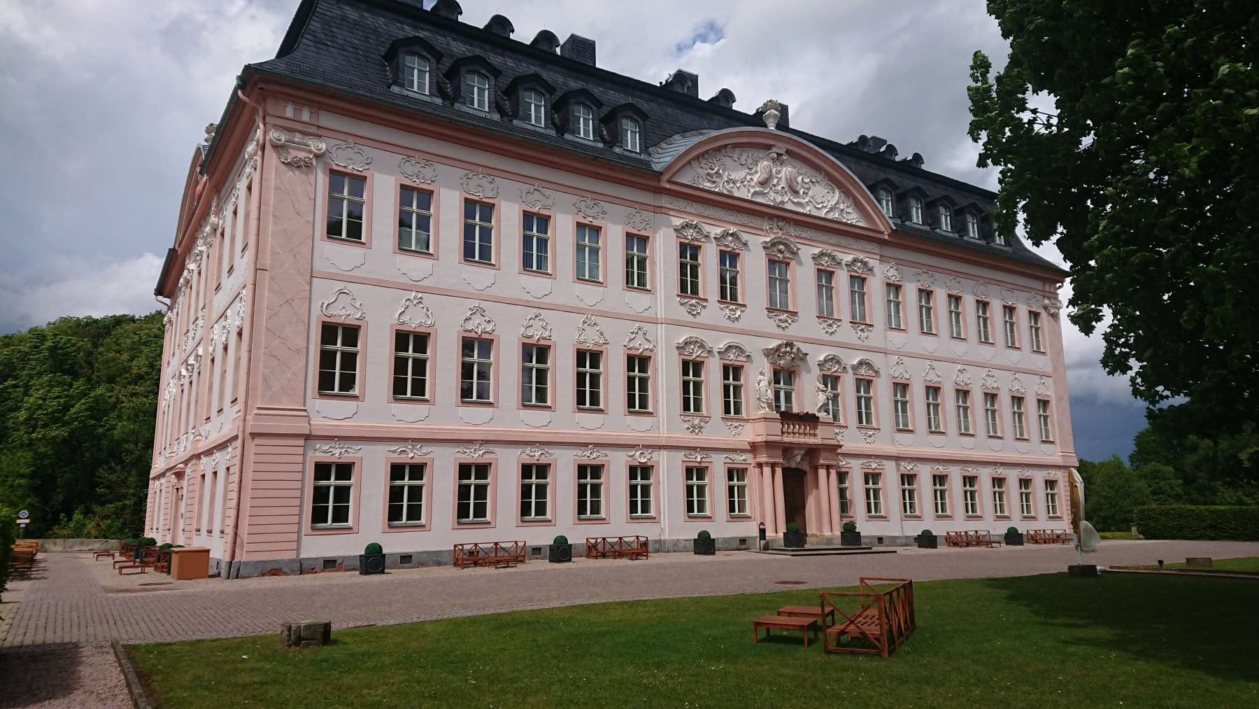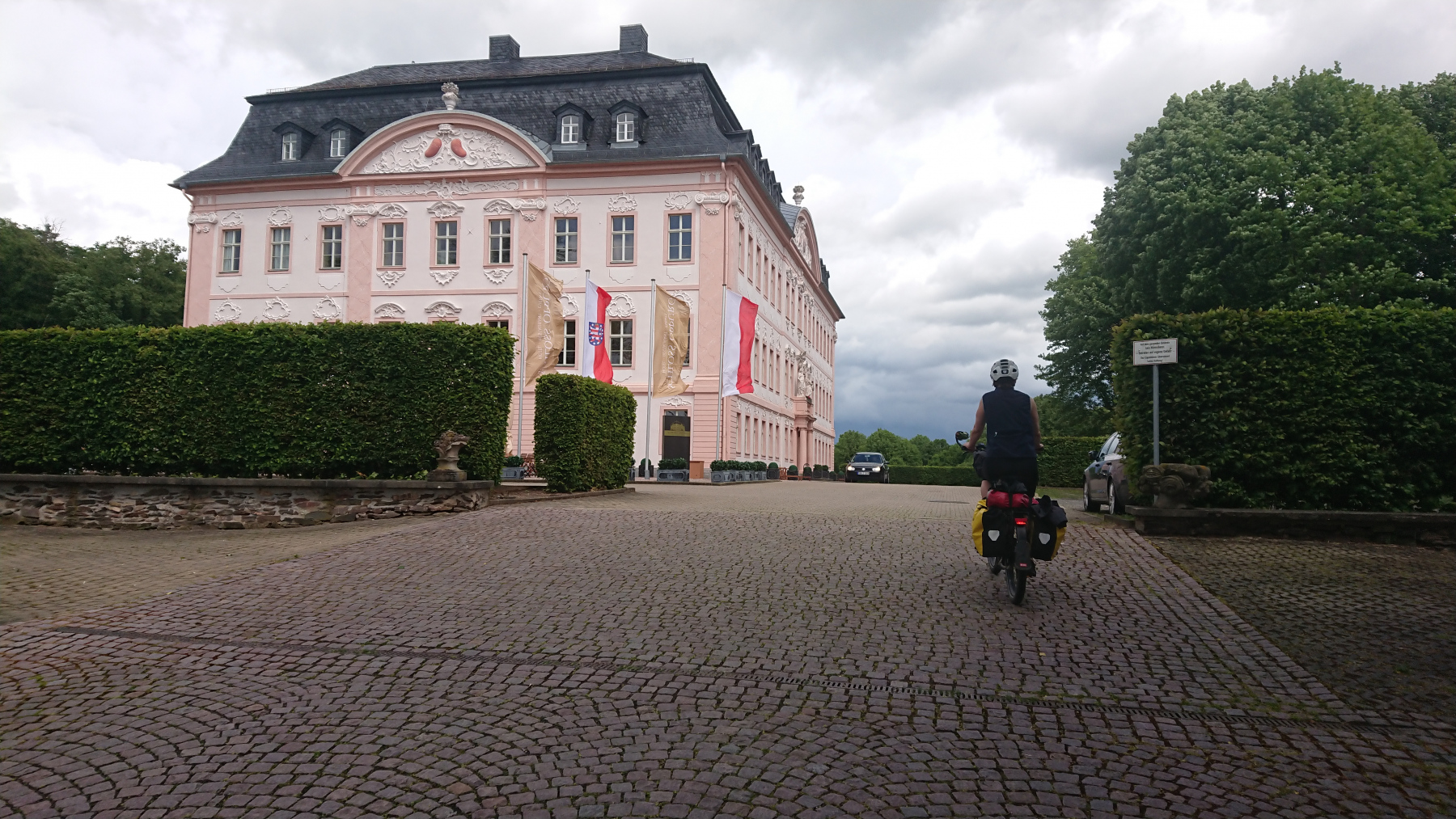 In Oppurg machen wir einen kleinen Abstecher zum Schloss, noch hält sich das Wetter, aber das soll nicht mehr lange so bleiben. Im Westen ziehen schon die ersten dunklen Regenwolken auf.